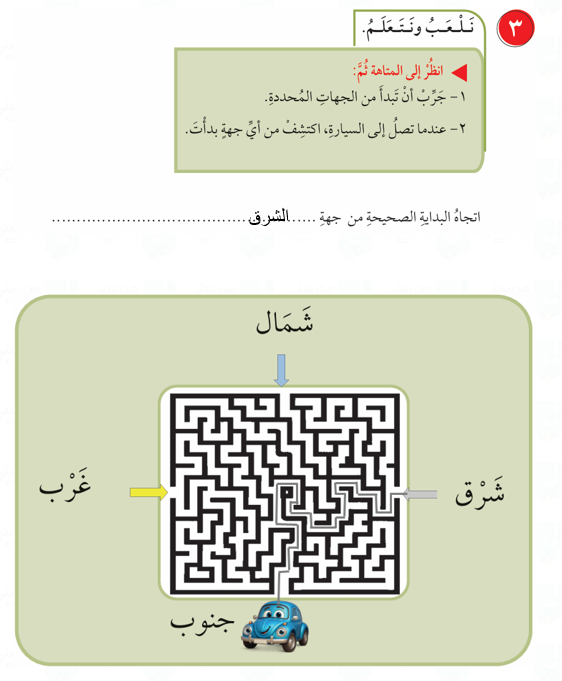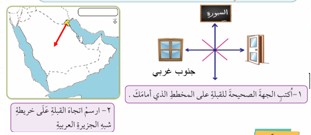طبق ما تَعَلَّمْتَهُ في درس الجهات الأصلية والفرعية في حياتك اليومية.