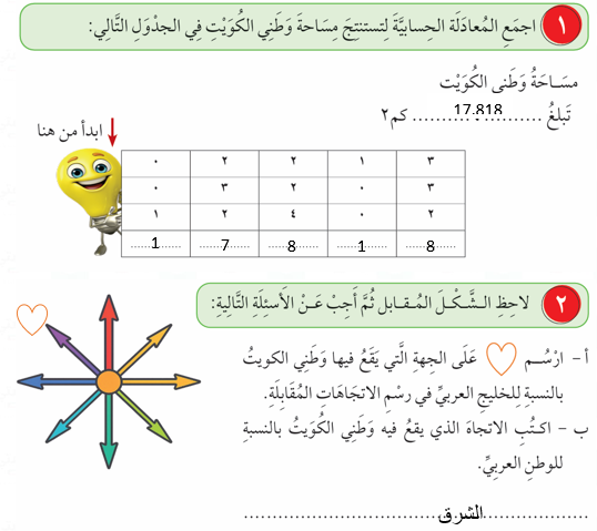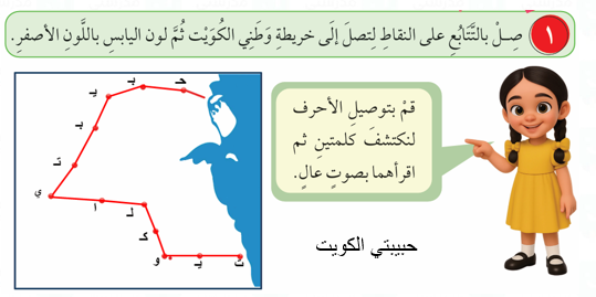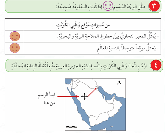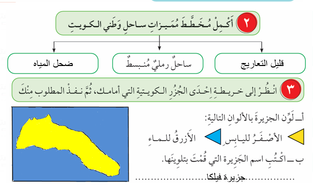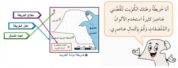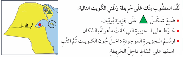2- وظف ما تَعَلَّمْتَهُ في درس خريطة وطني الكويت التالية.