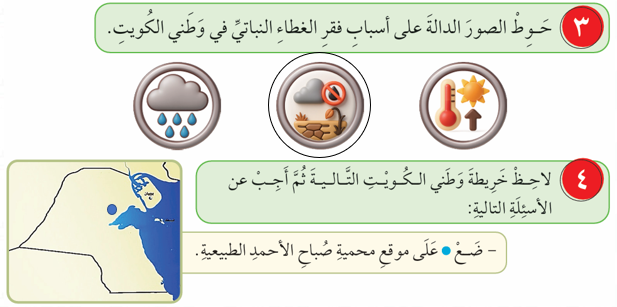 2- اذكر اسم ما تم تحديده على خريطةِ وَطني الكويت .