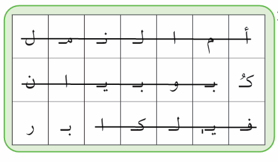 ب ــ يتبقى بعد الشطب ثَلاثَةُ أحرف، تَدلُّ على جزيرة كويتية اسمها جزيرة .كبر.
