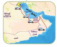 لاحظ خريطة خط سير رحلتِكَ من وطني الكويتِ المُتجهة إلى سلطنة عُمانَ، ثُمَّ أَجِبْ عَمَّا يلي :