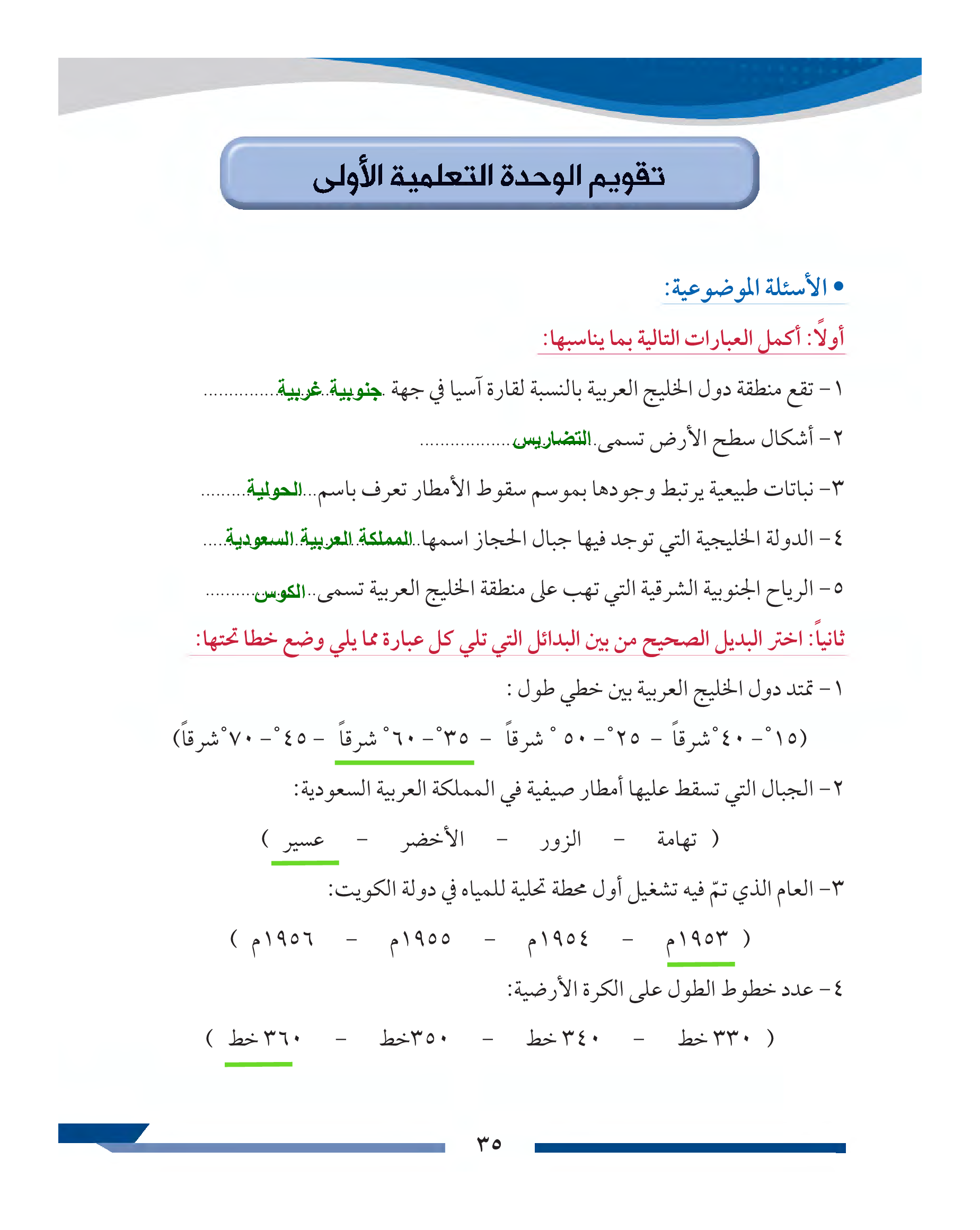 تقويم الوحدة الأولى
