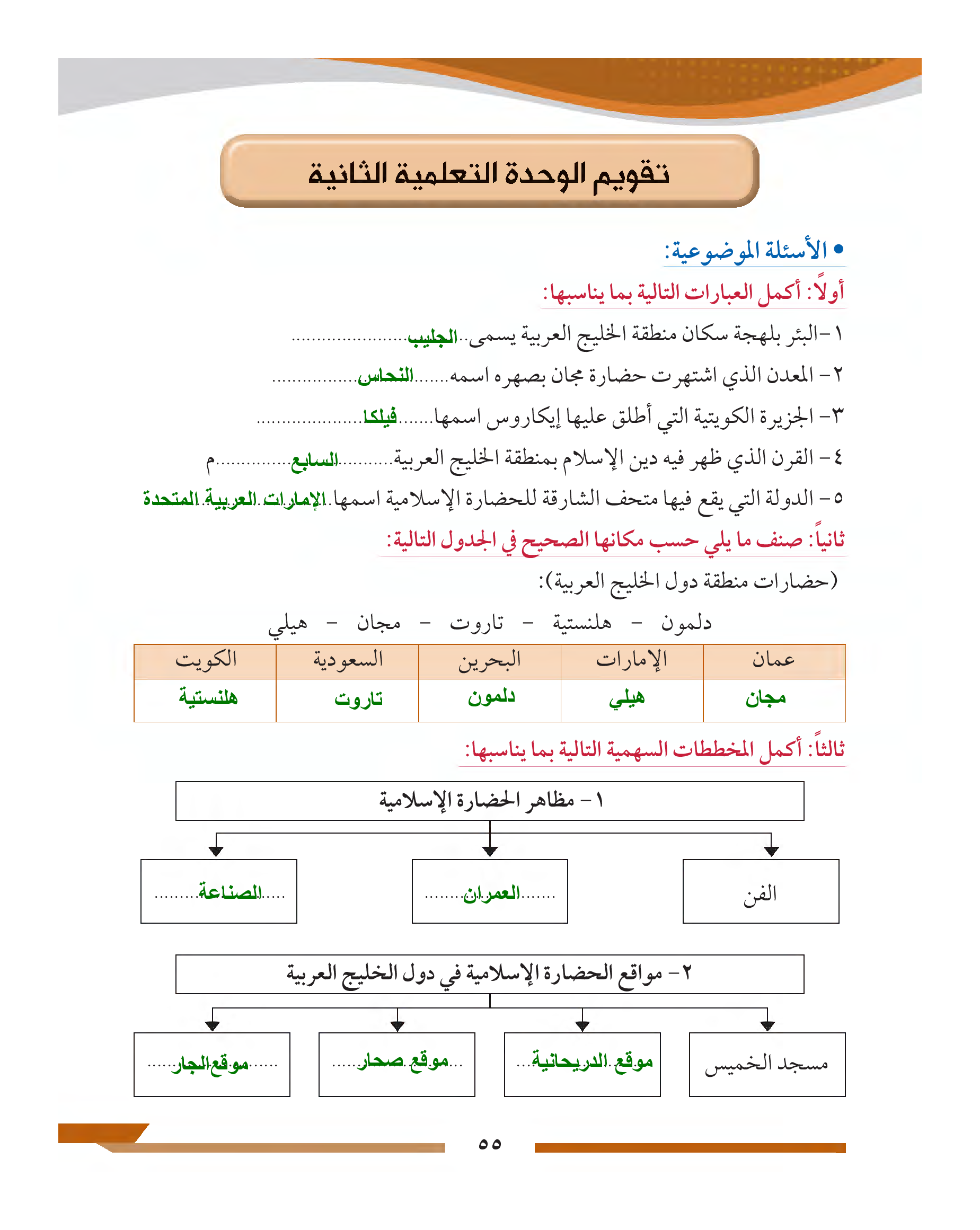 تقويم الوحدة الثانية