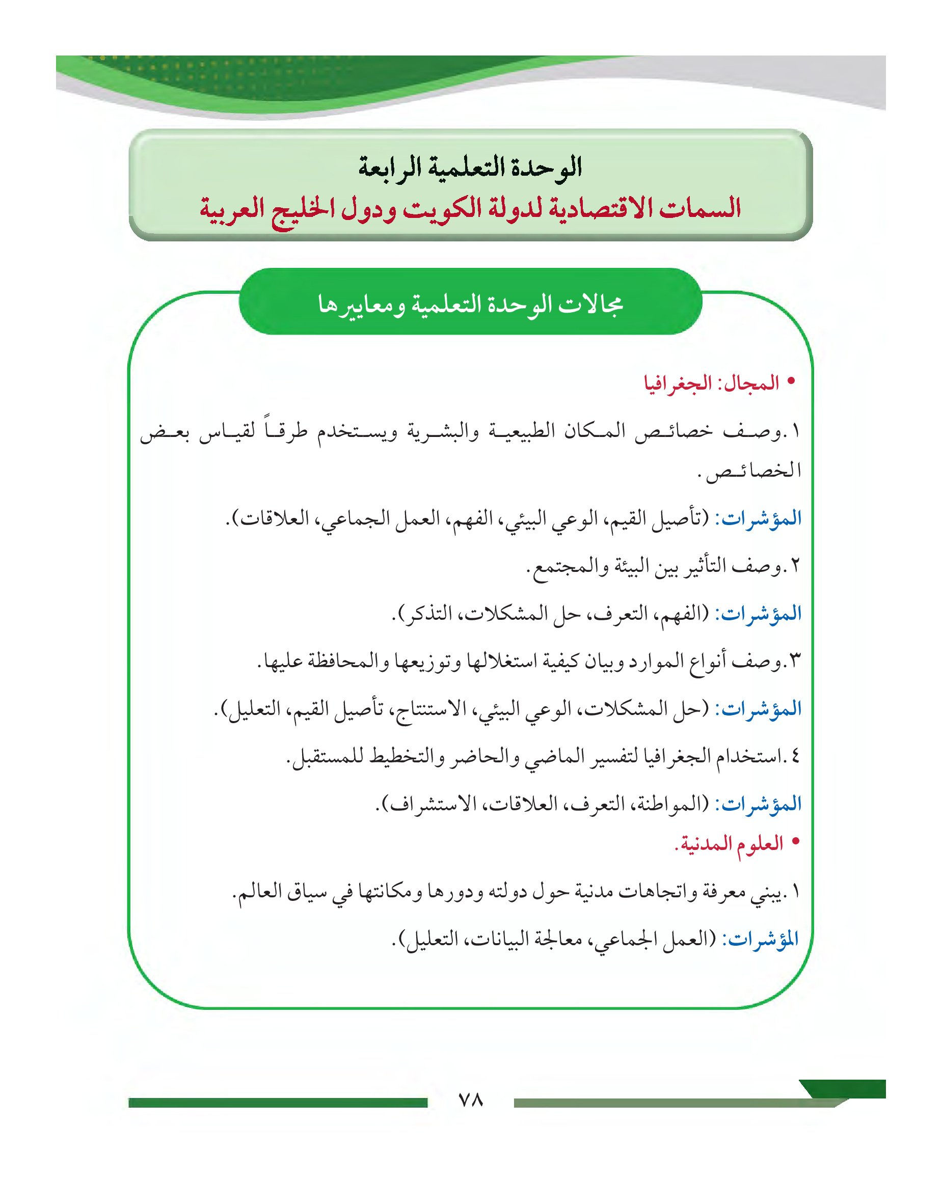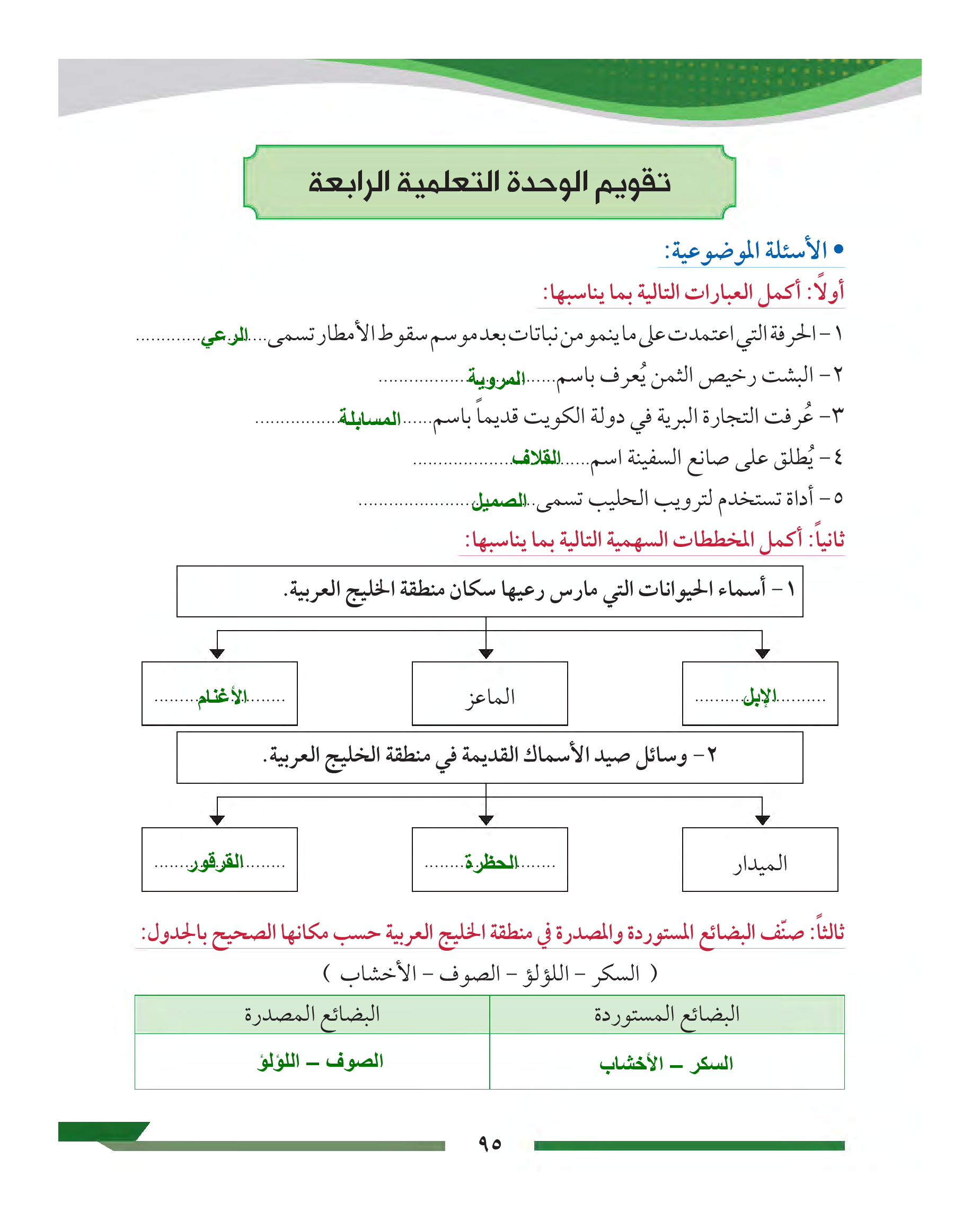 تقويم الوحدة الرابعة
