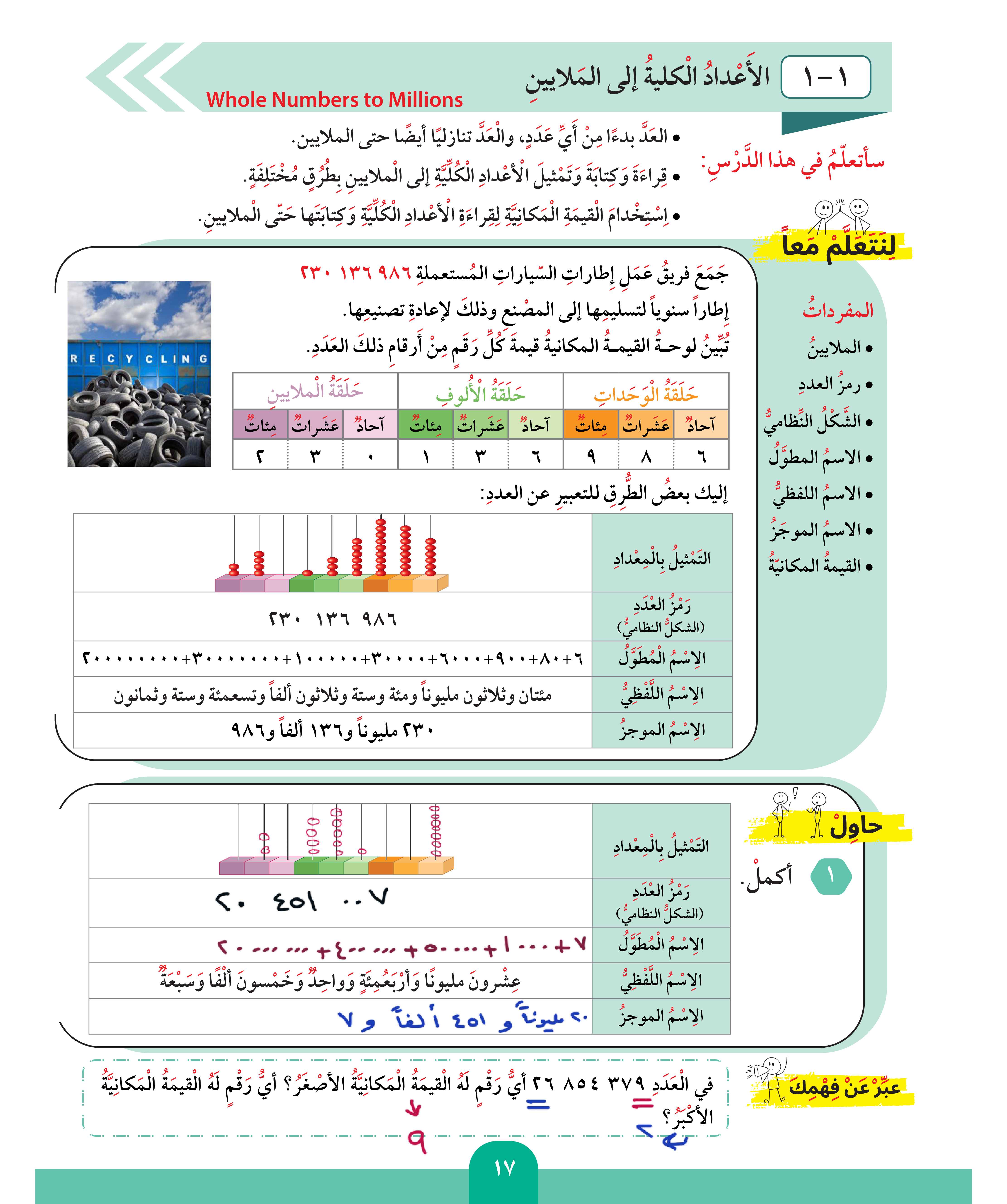 الأعداد الكلية إلى الملايين