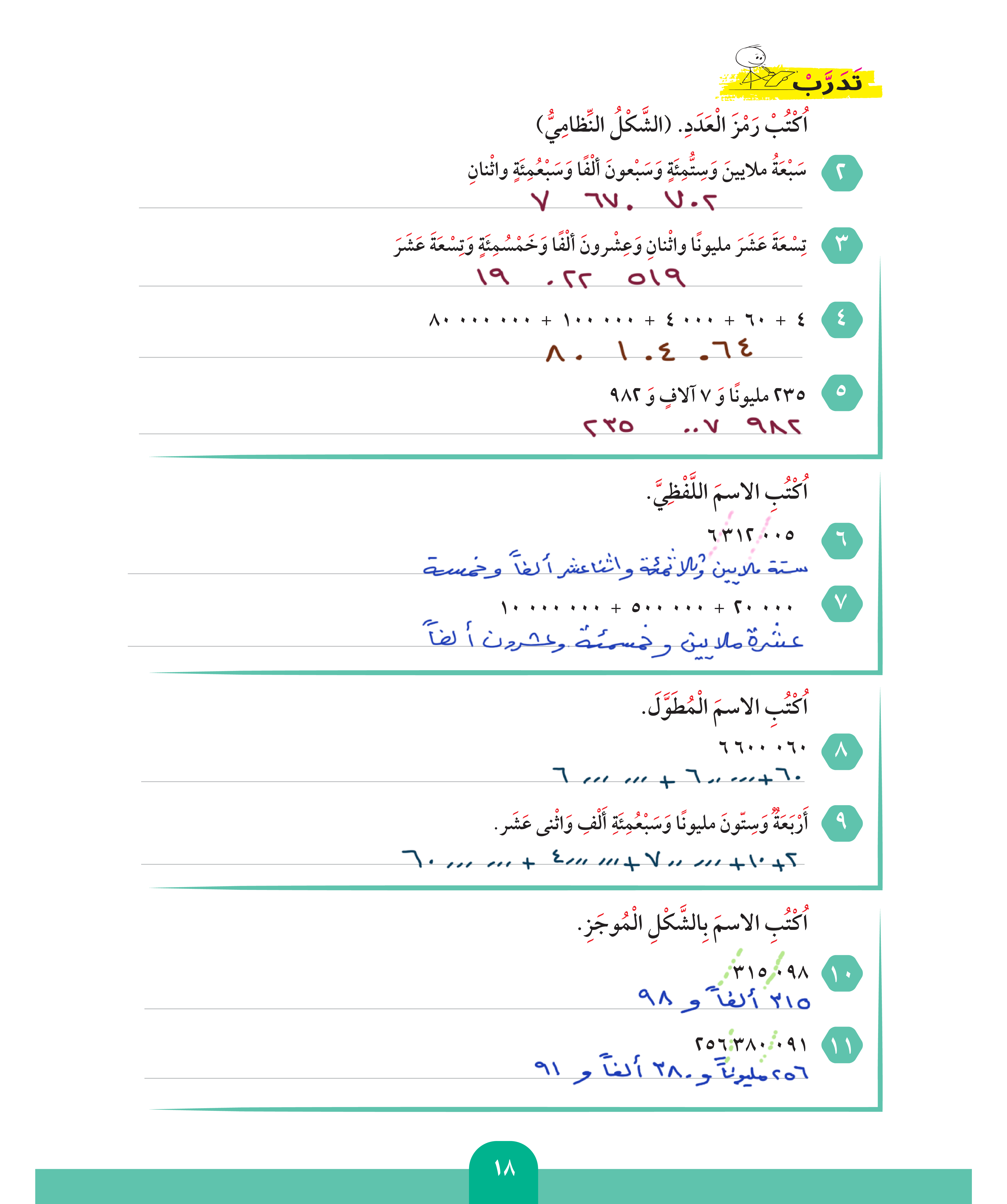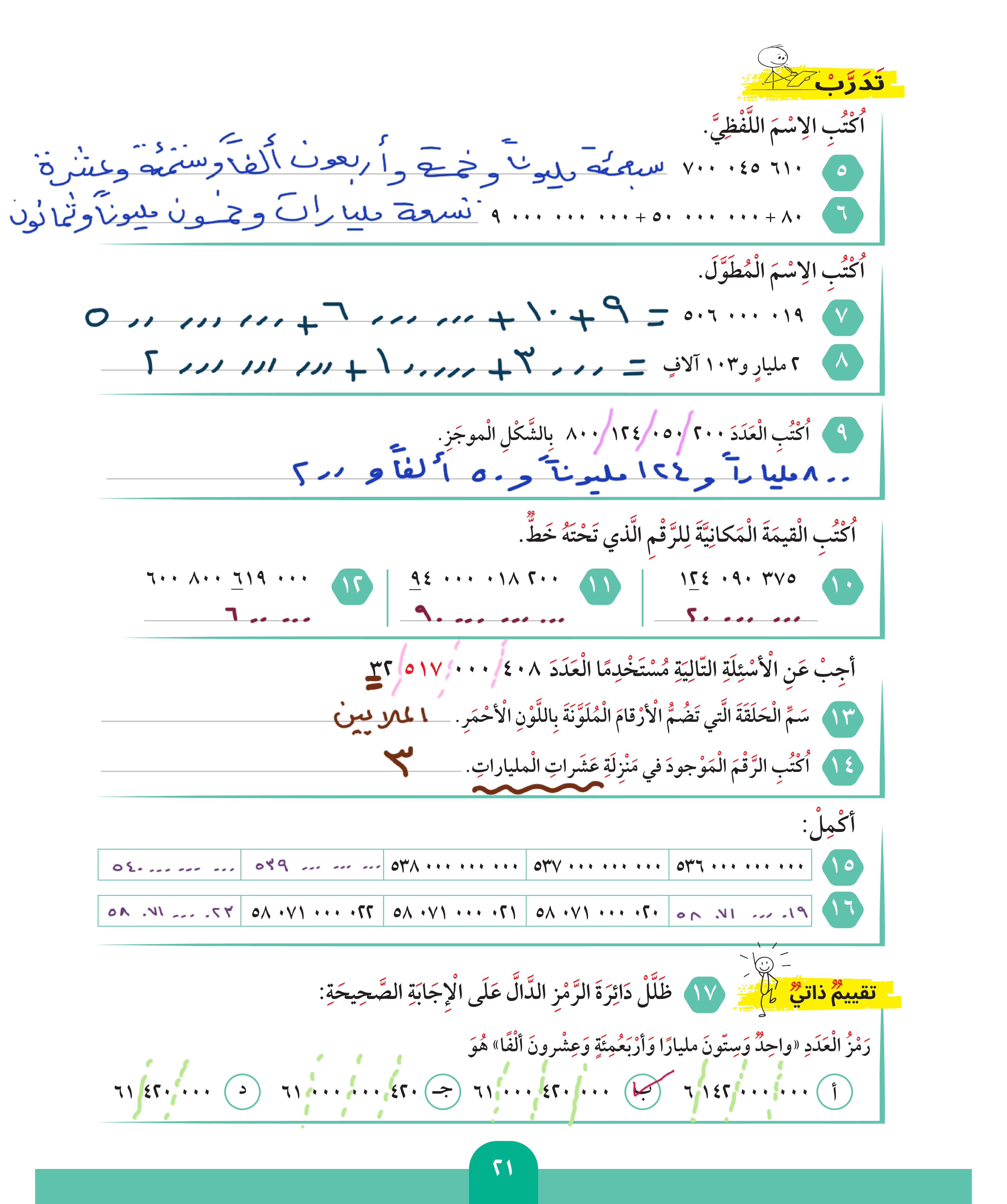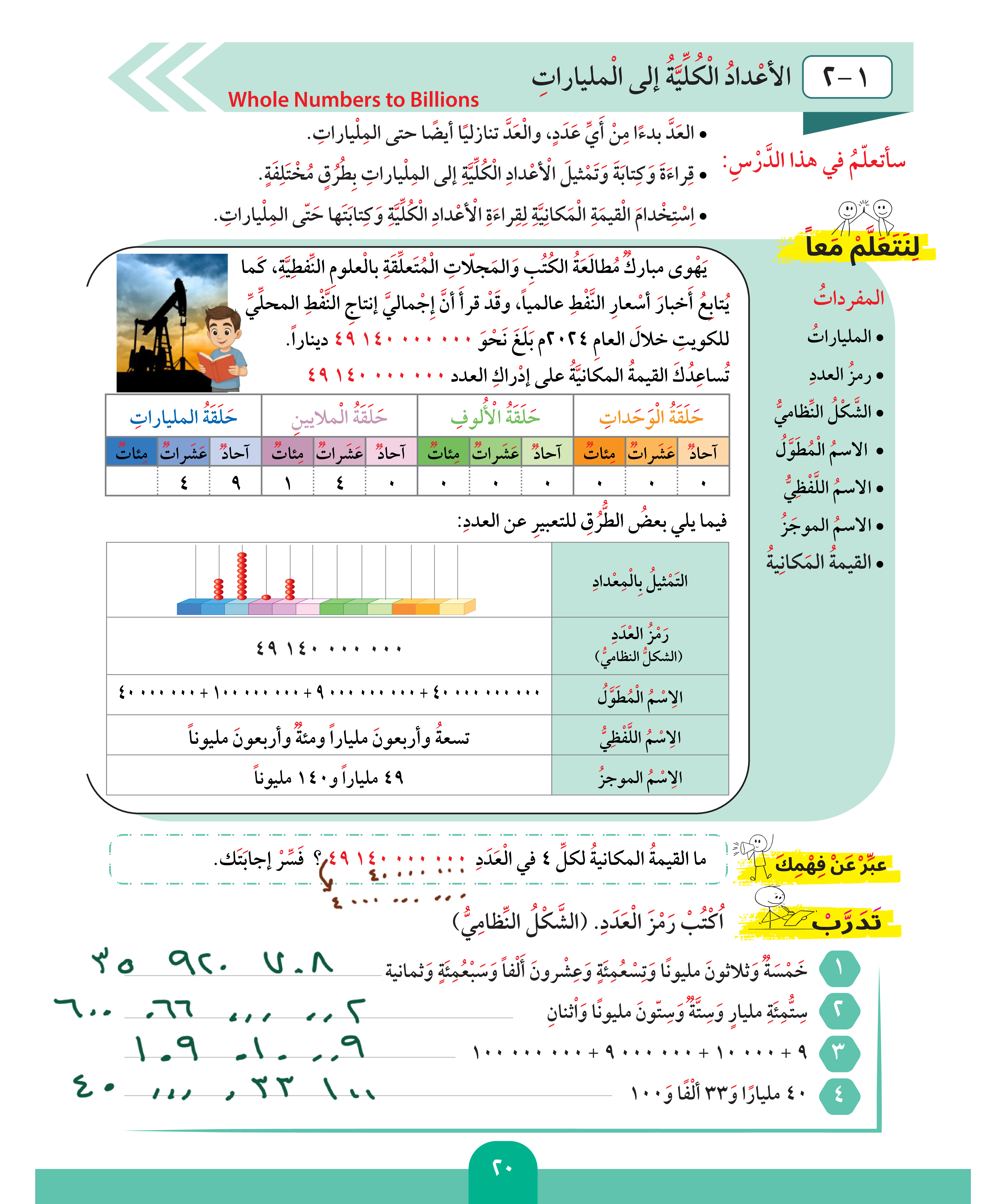 الأعداد الكلية إلى المليارات
