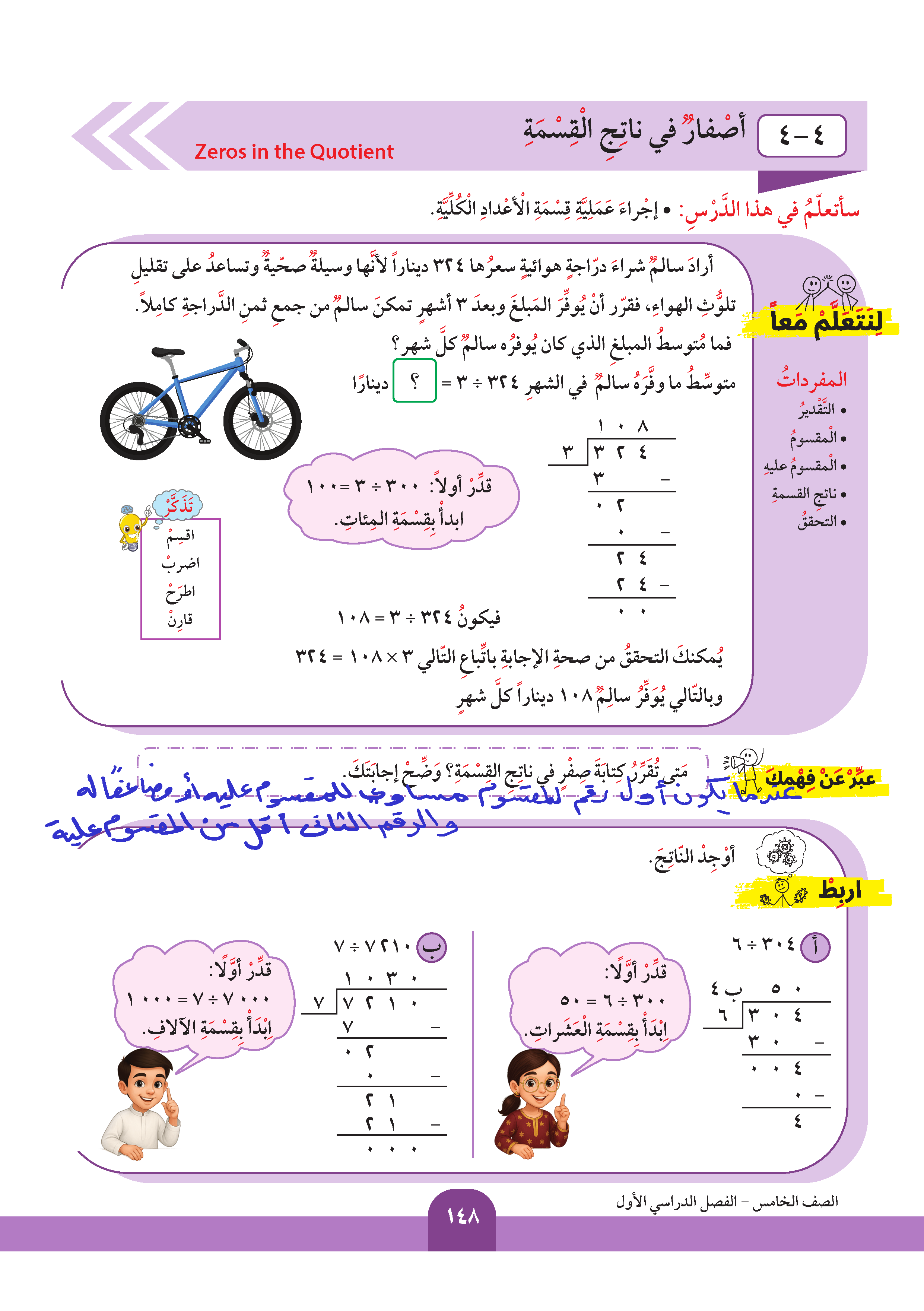 أصفار في ناتج القسمة