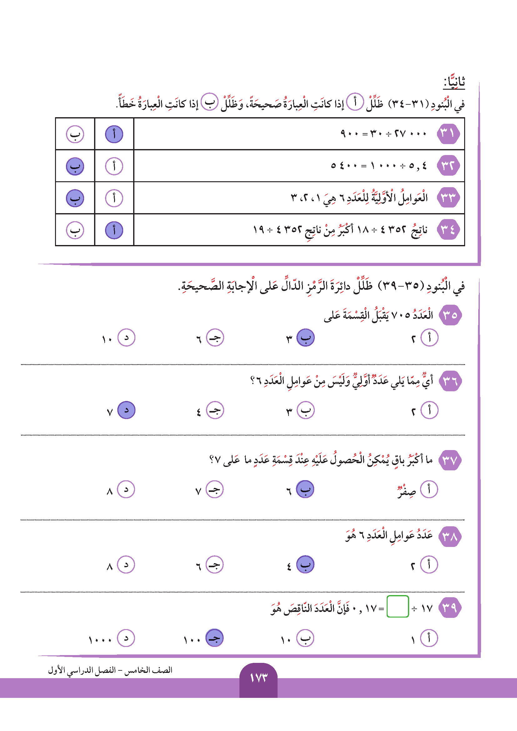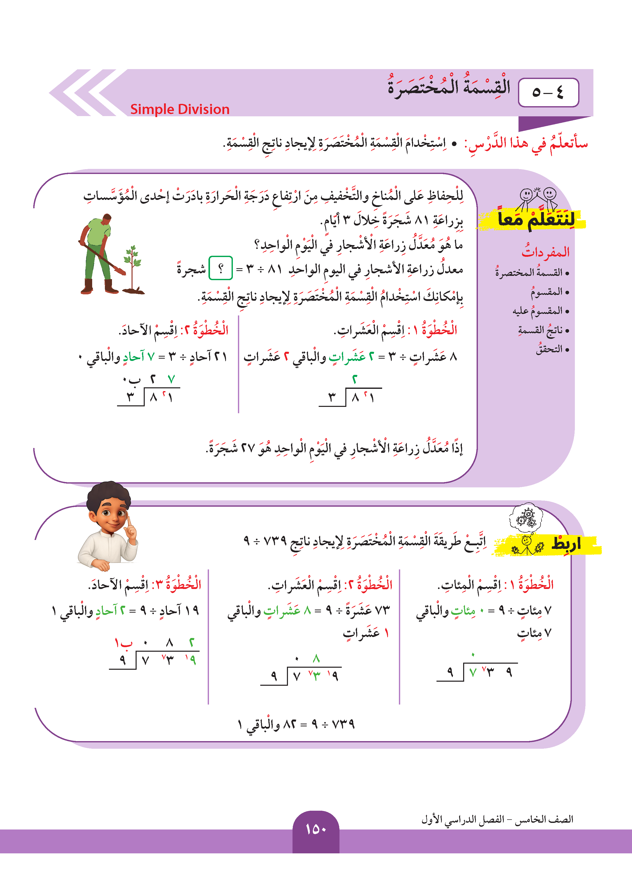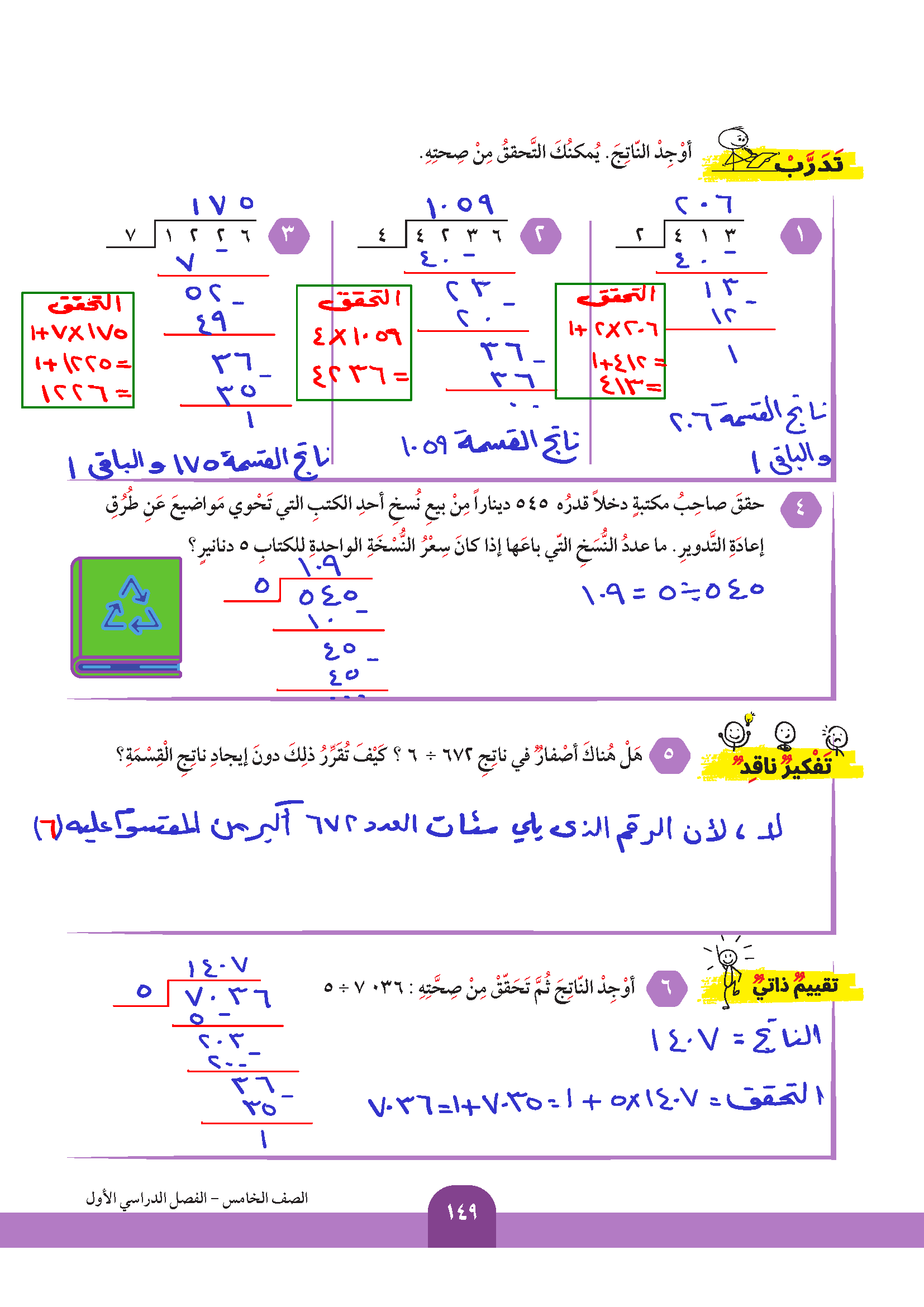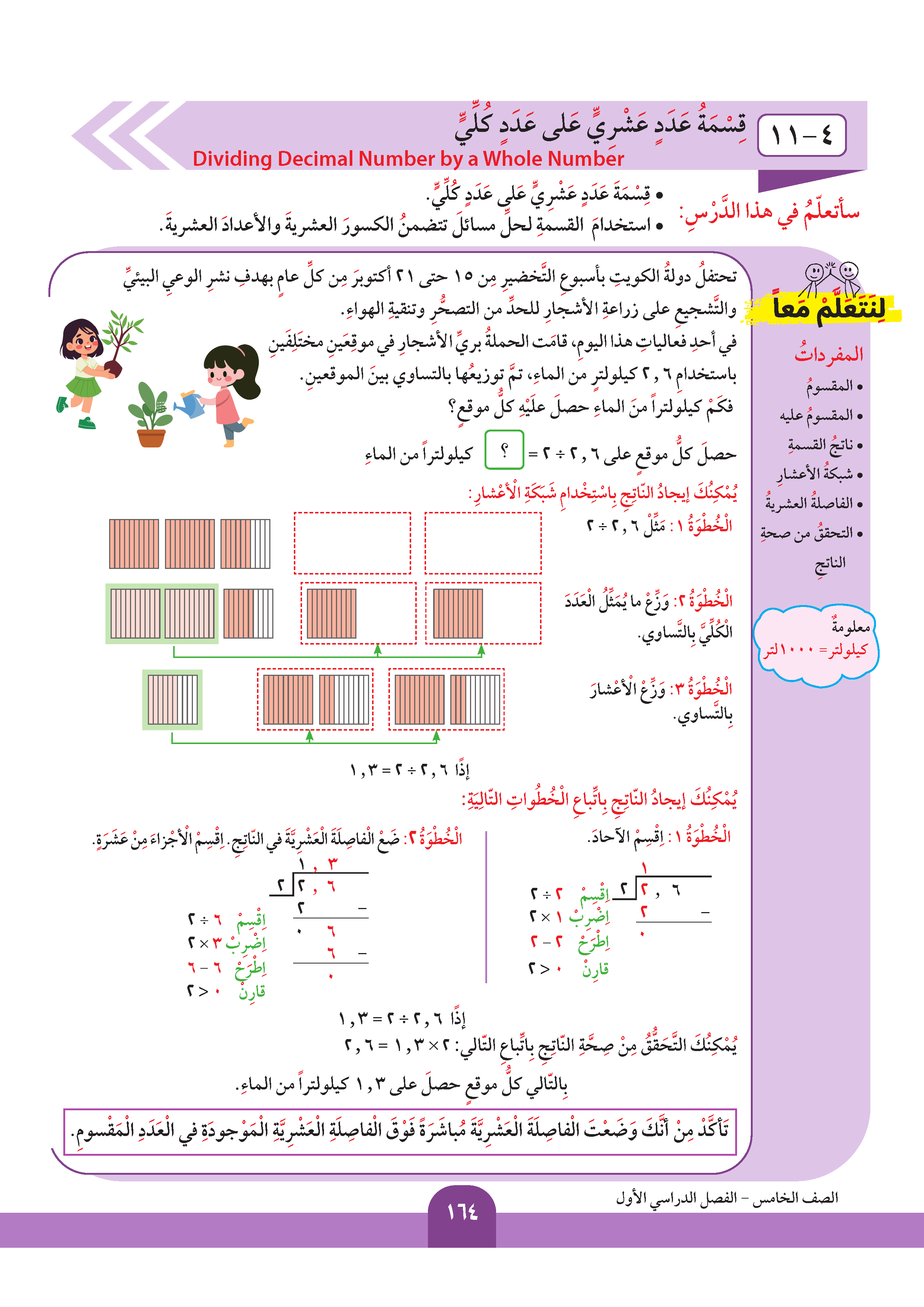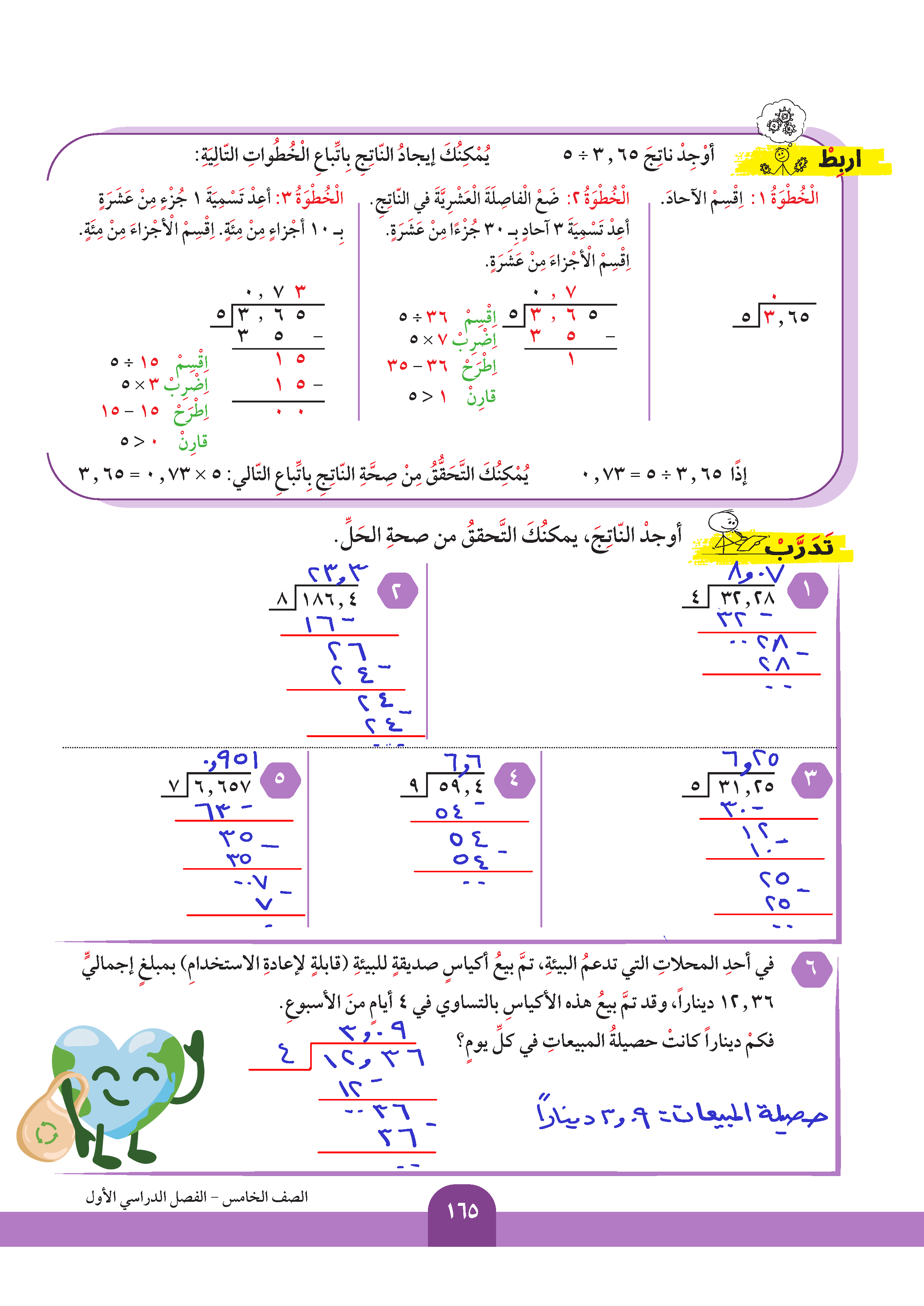 قسمة عدد عشري على عدد كلي