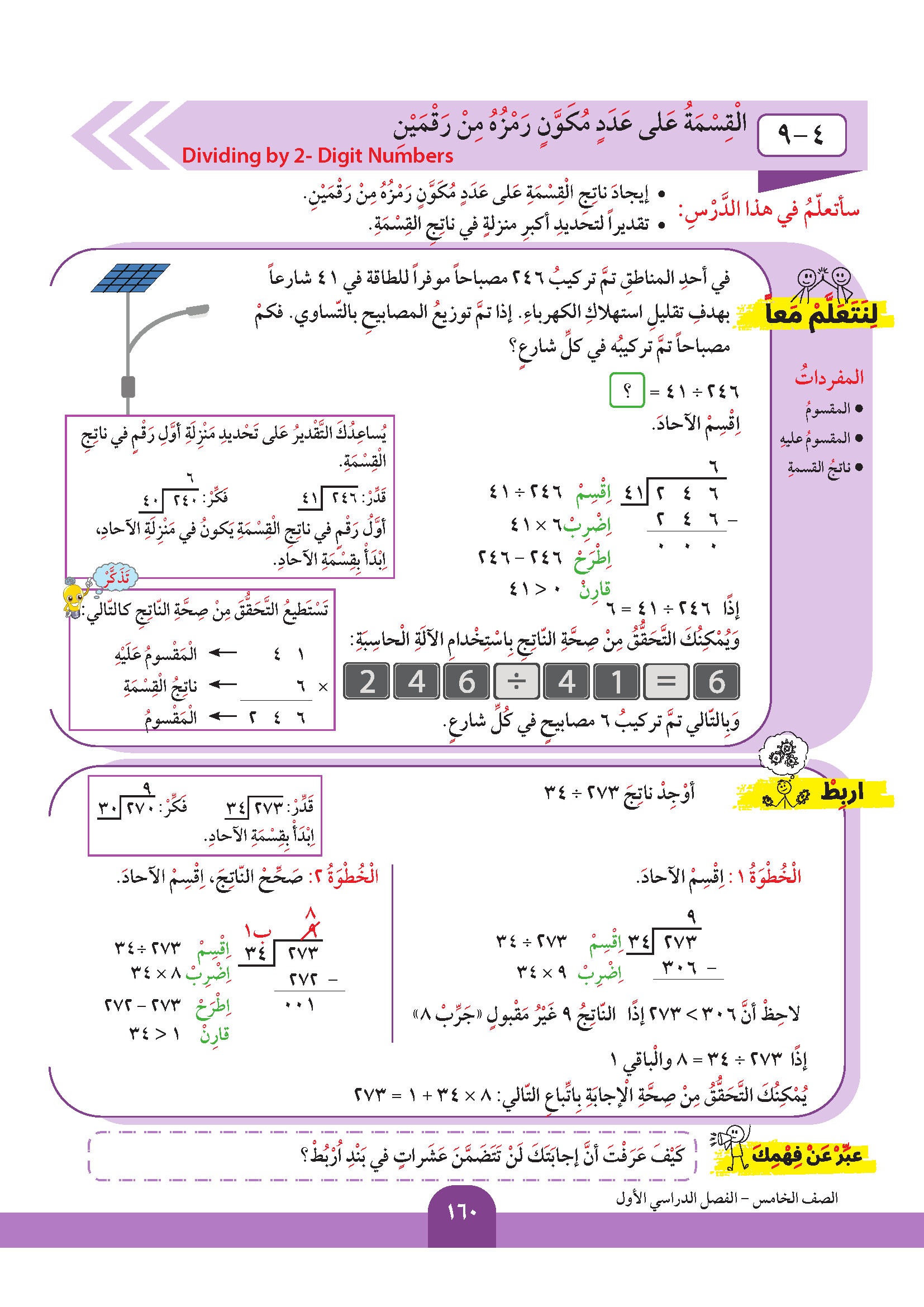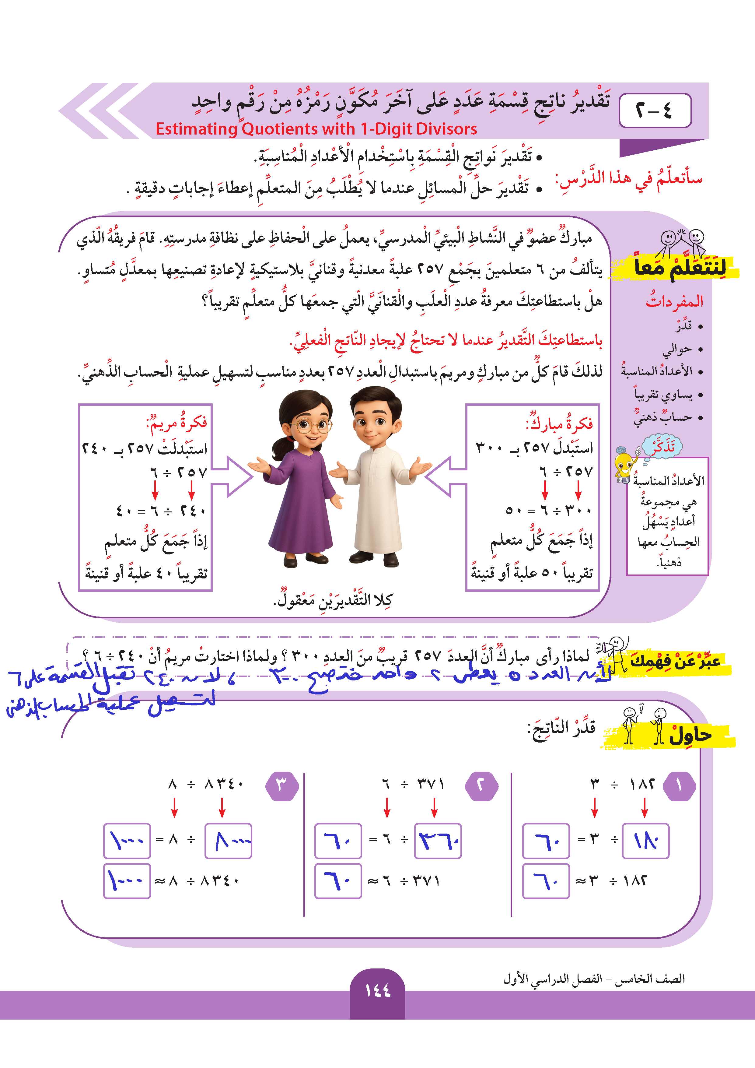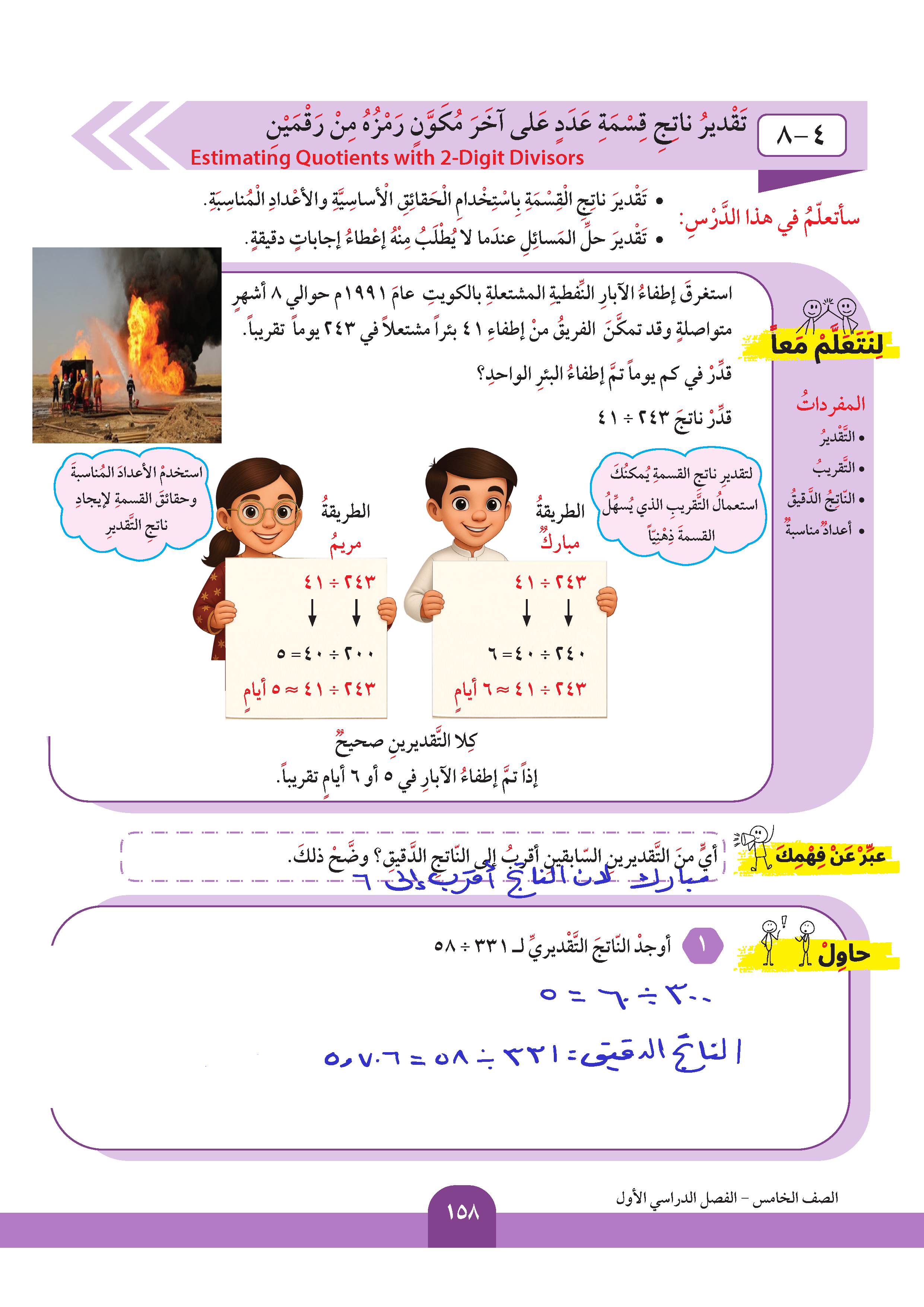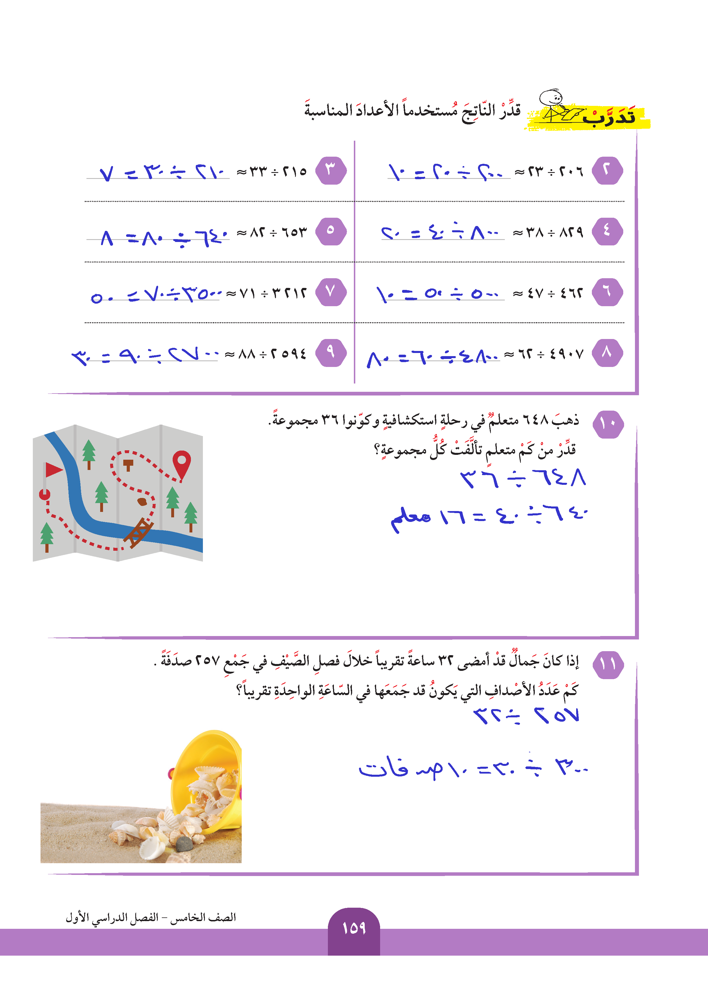 تقدير ناتج قسمة عدد على آخر مكون رمزه من رقمين