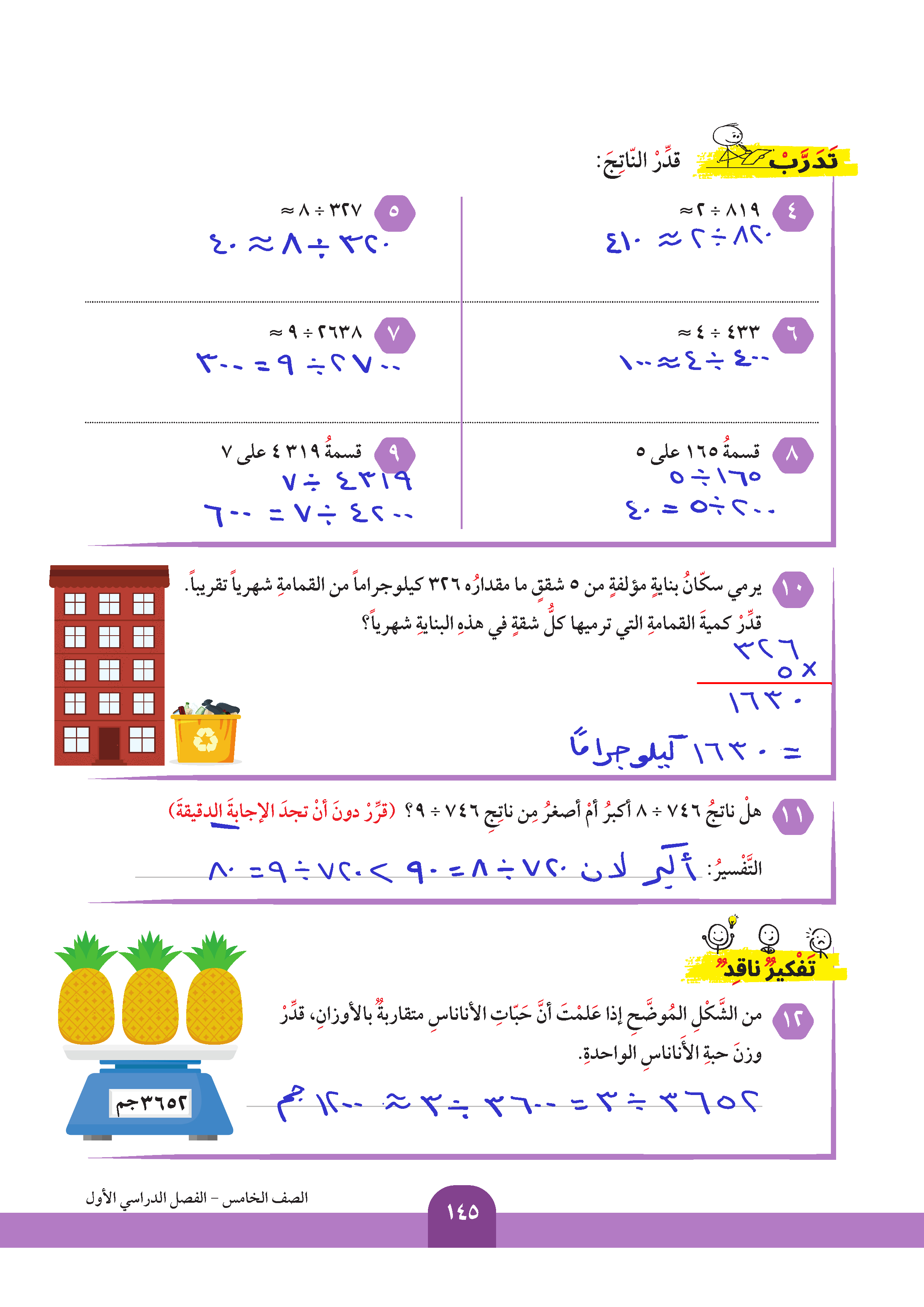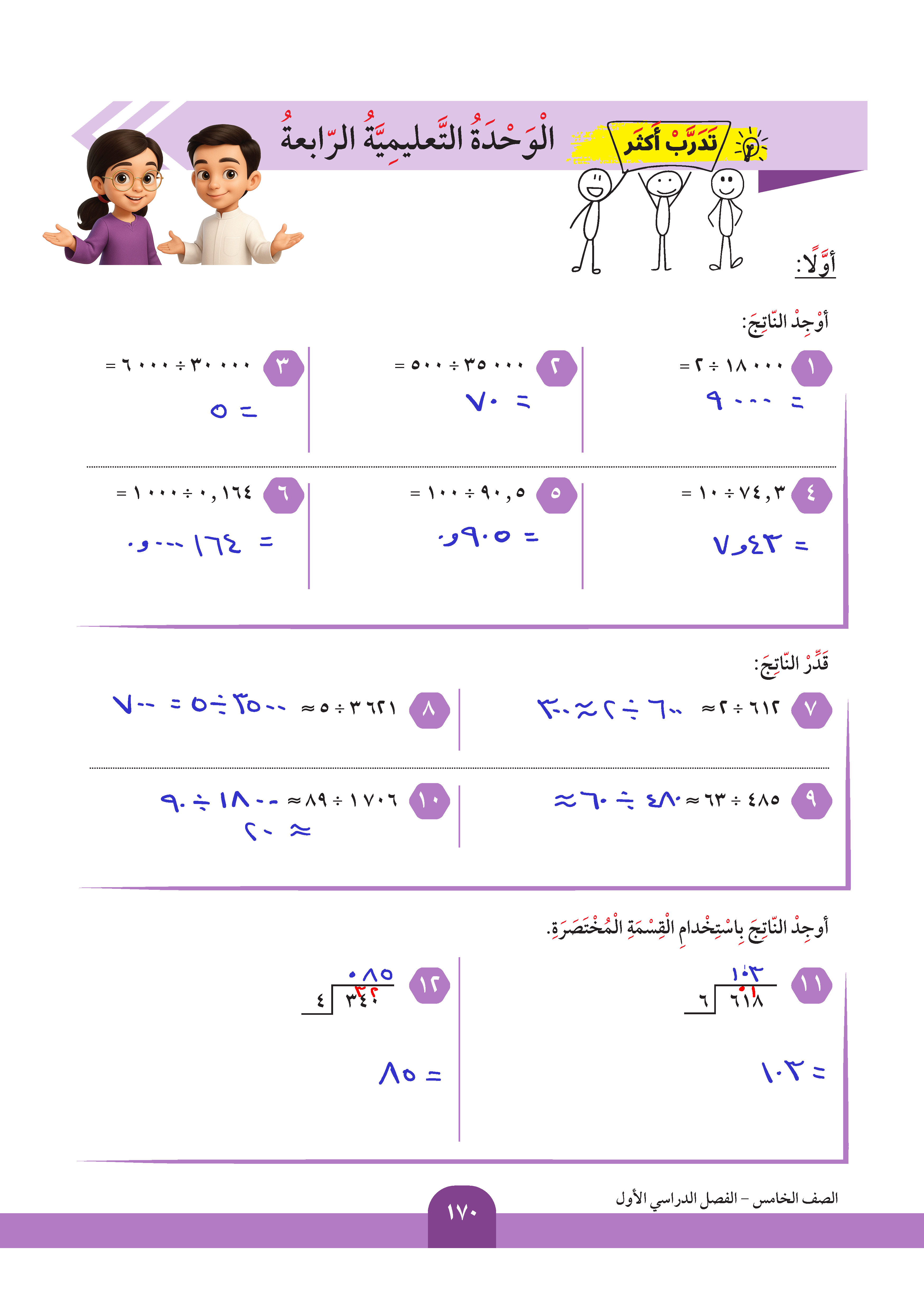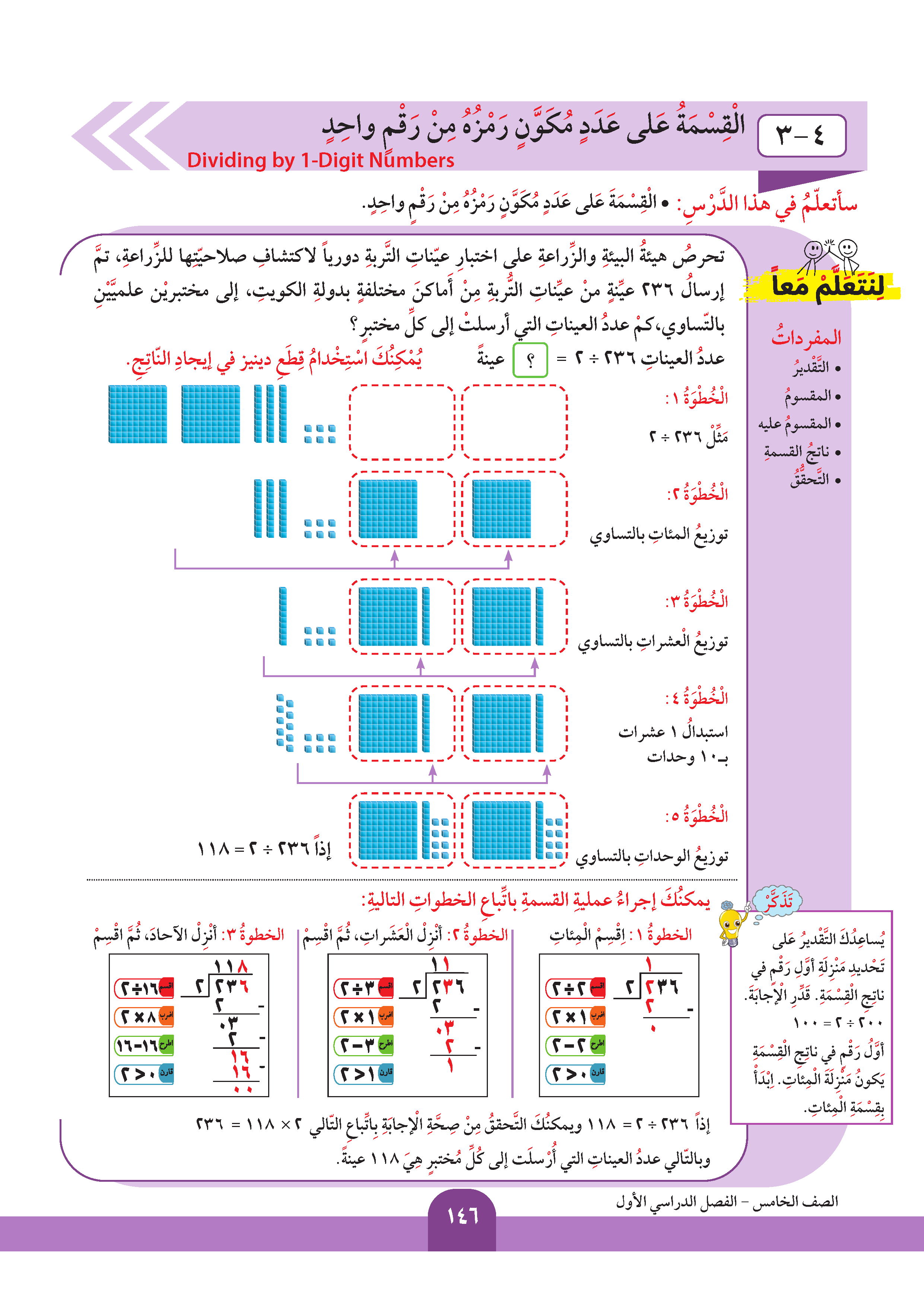 تقدير ناتج قسمة عدد على آخر مكون رمزه من رقم واحد