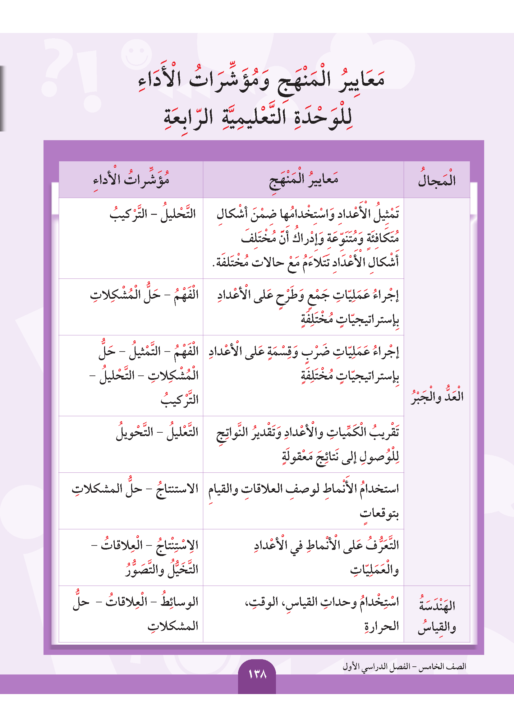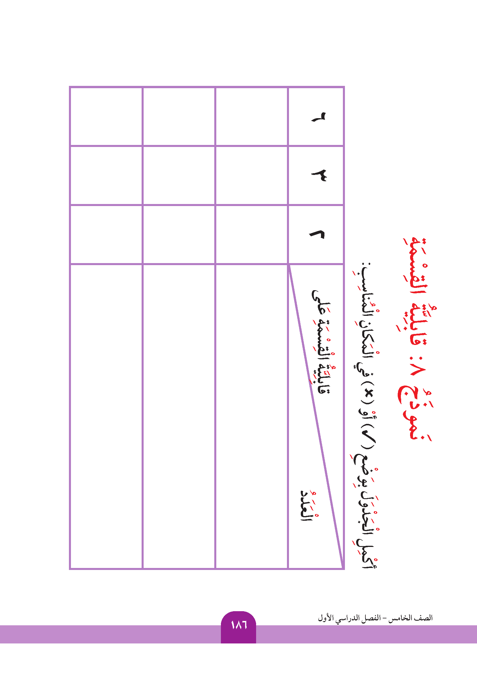 تقويم الوحدة الرابعة