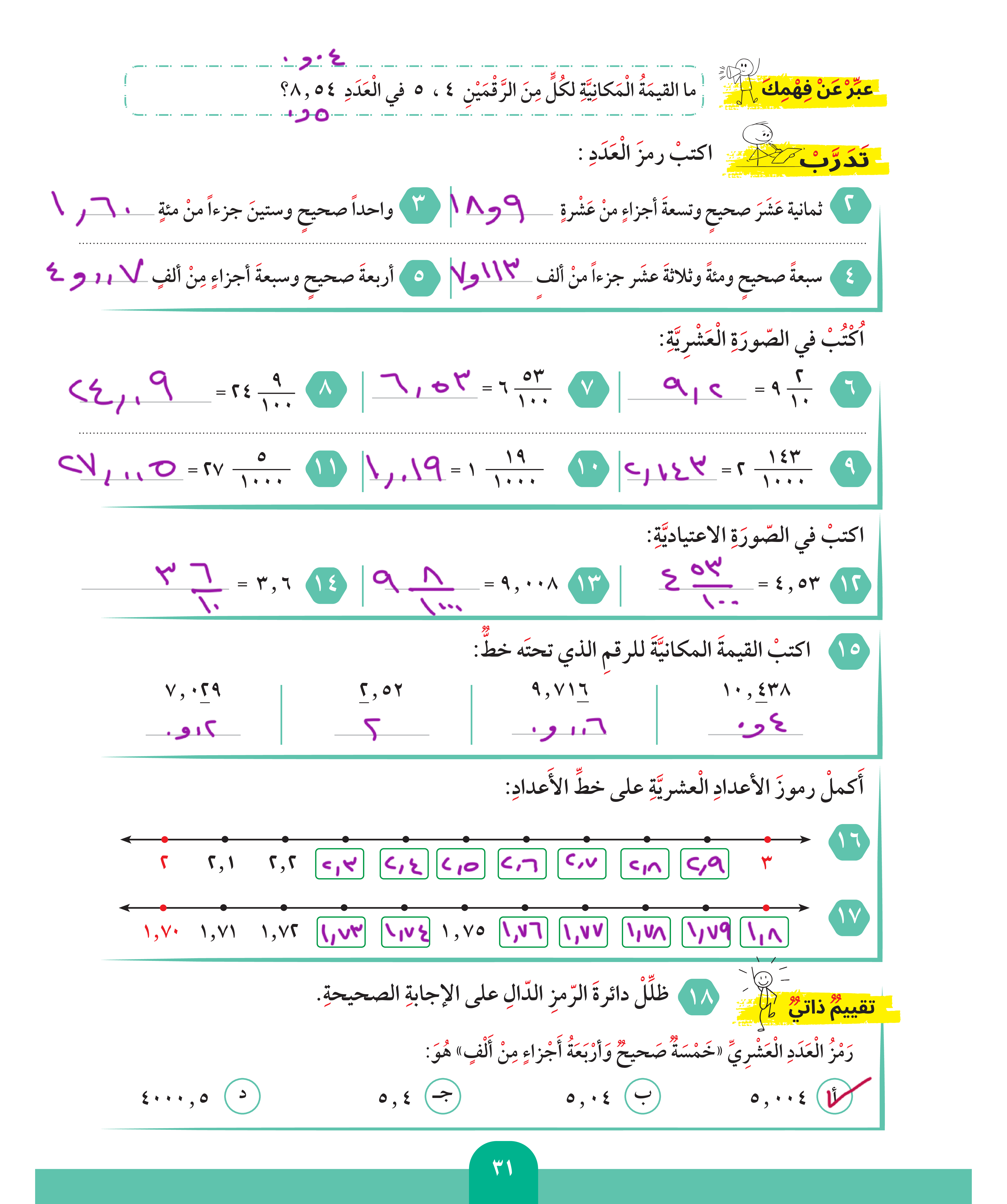 الأعداد العشرية