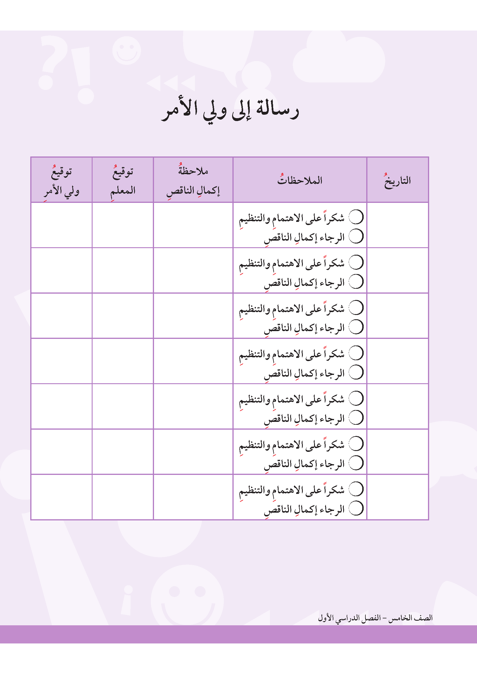 تقويم الوحدة الأولى