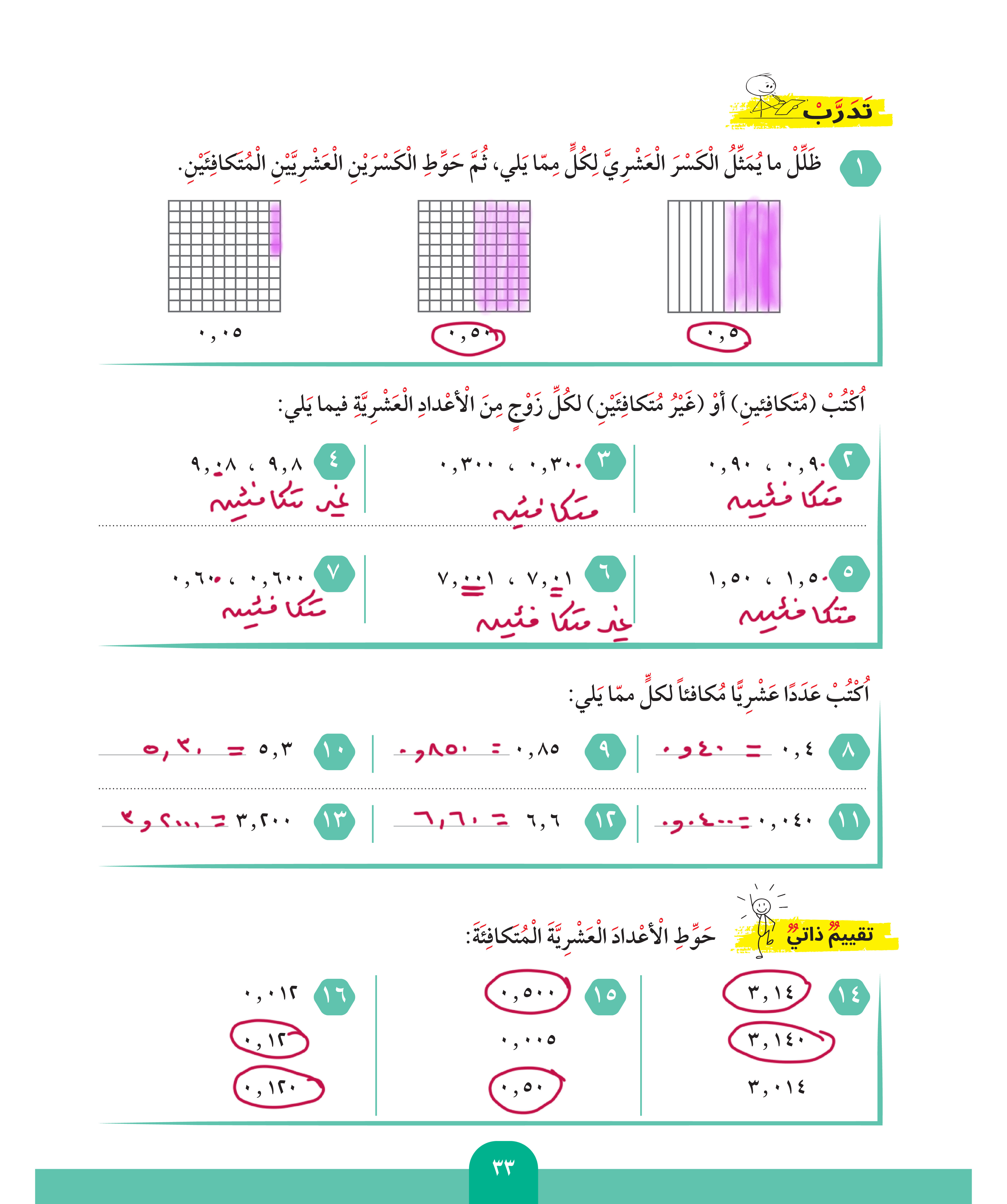 الأعداد العشرية المتكافئة