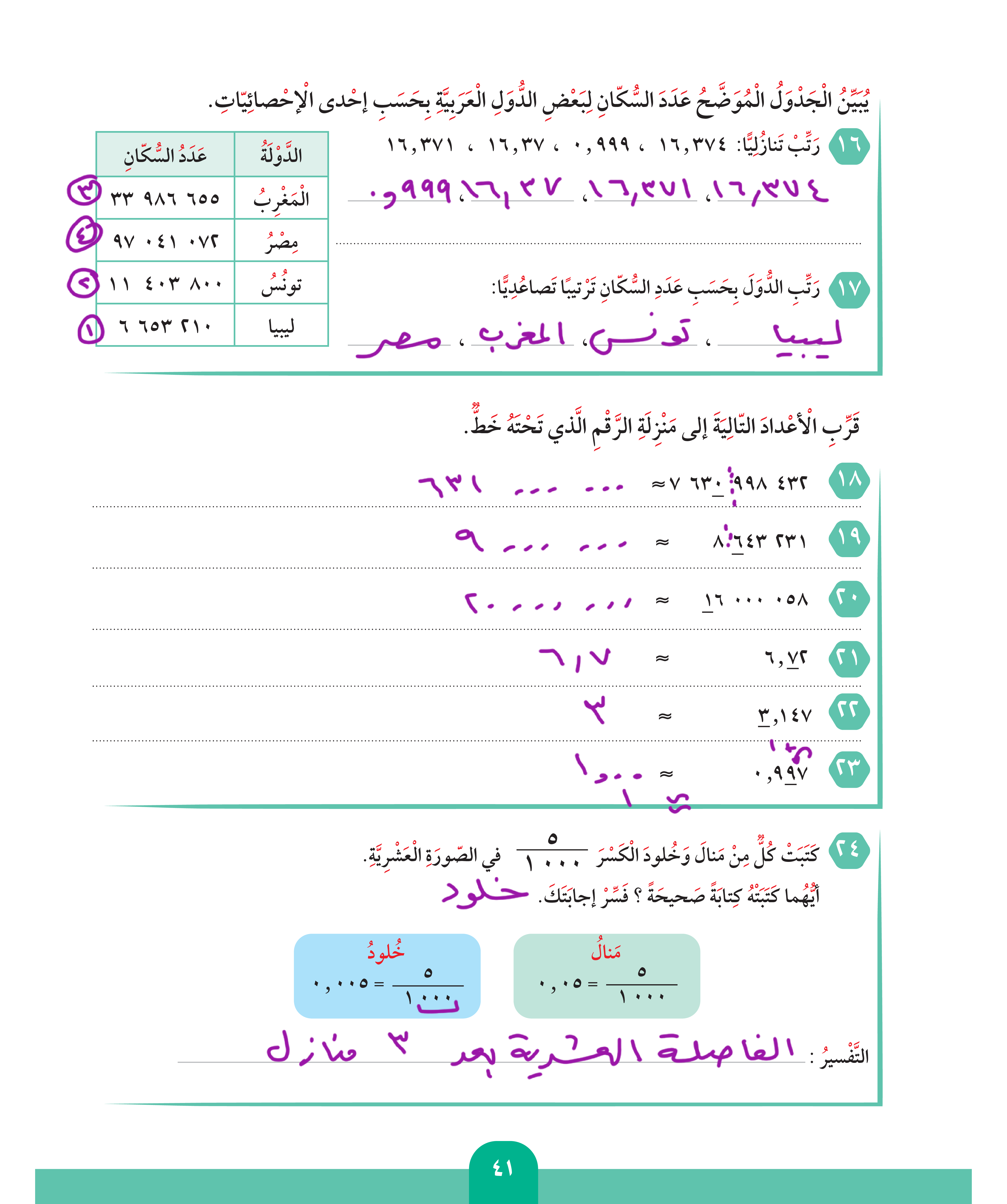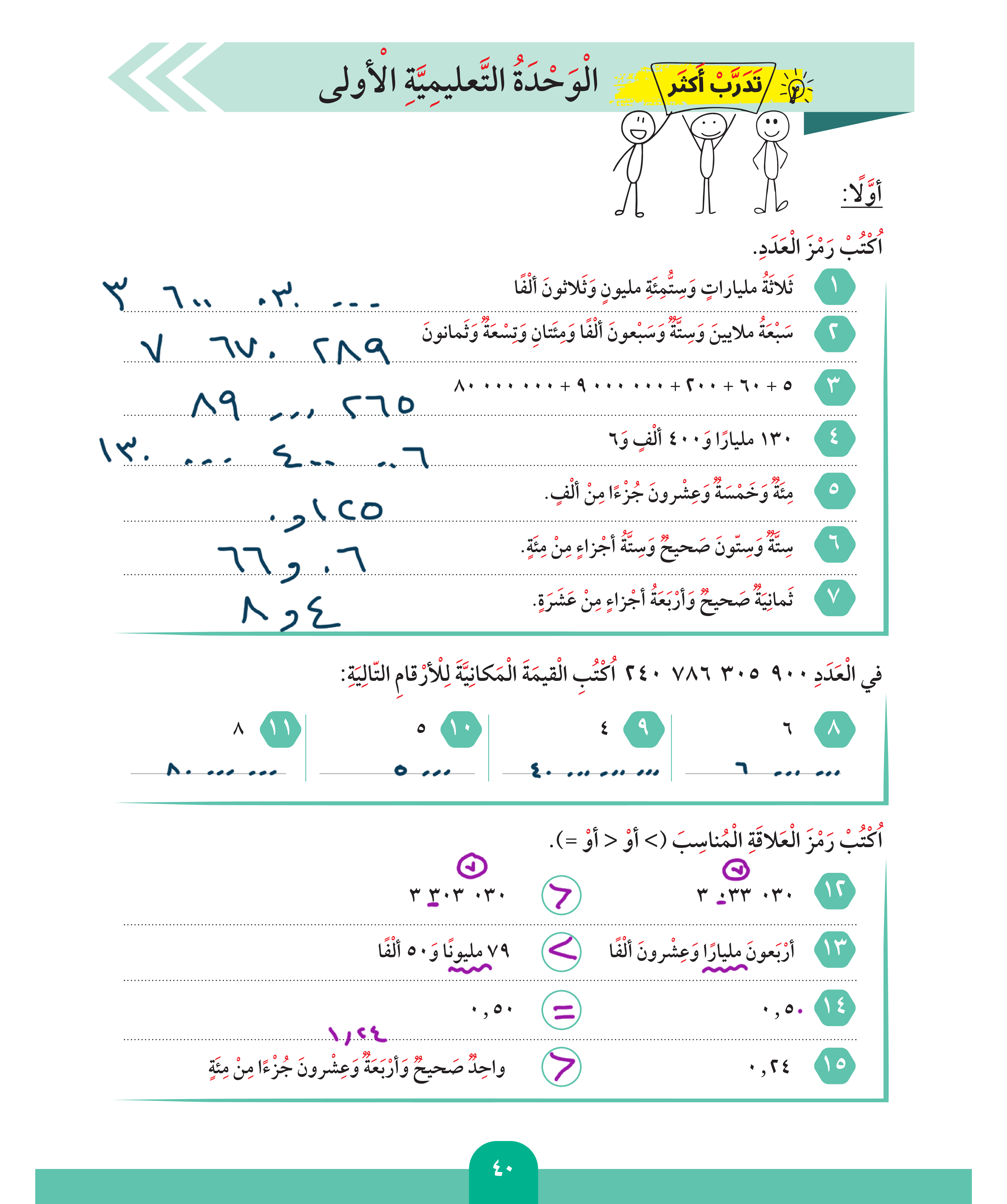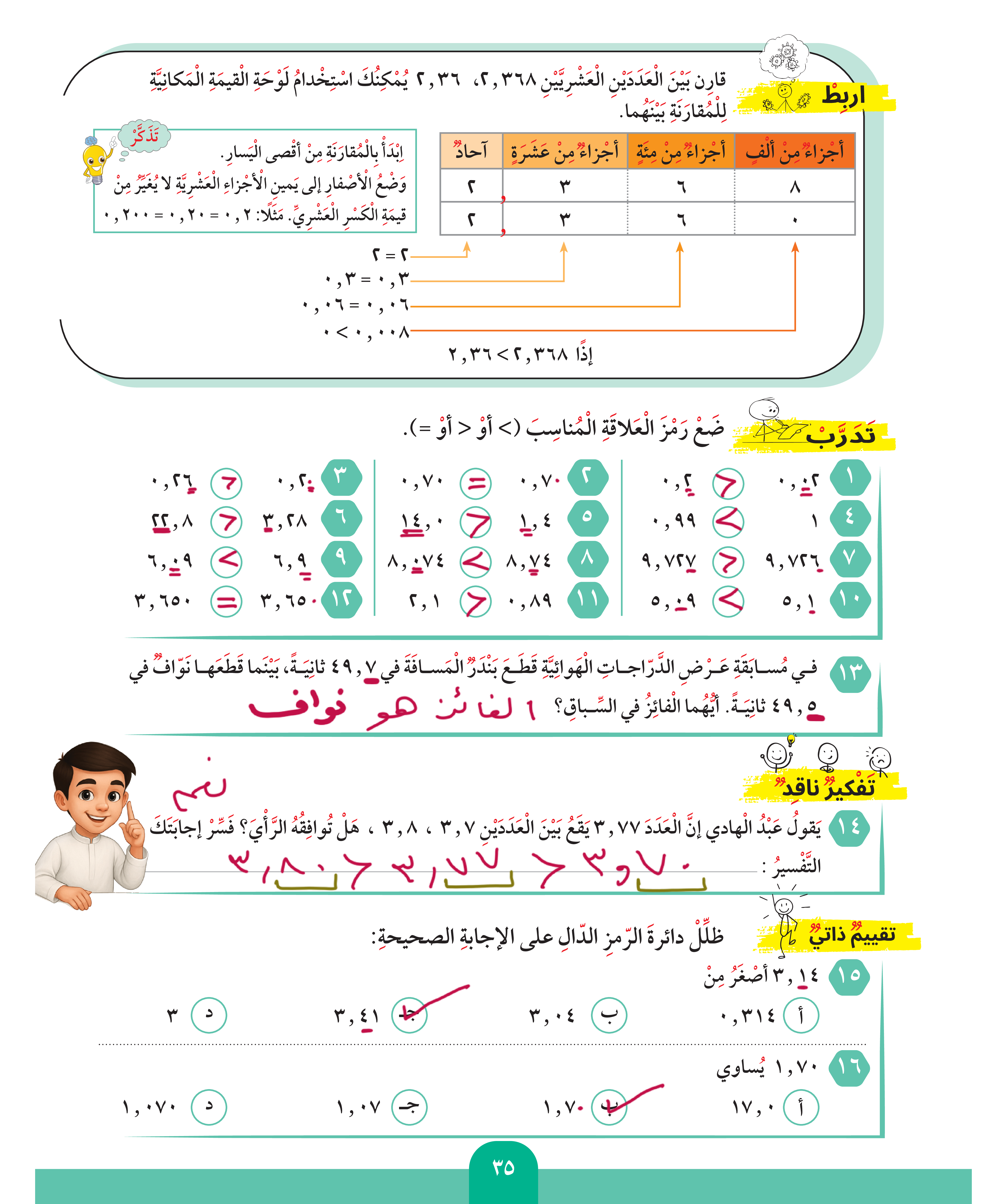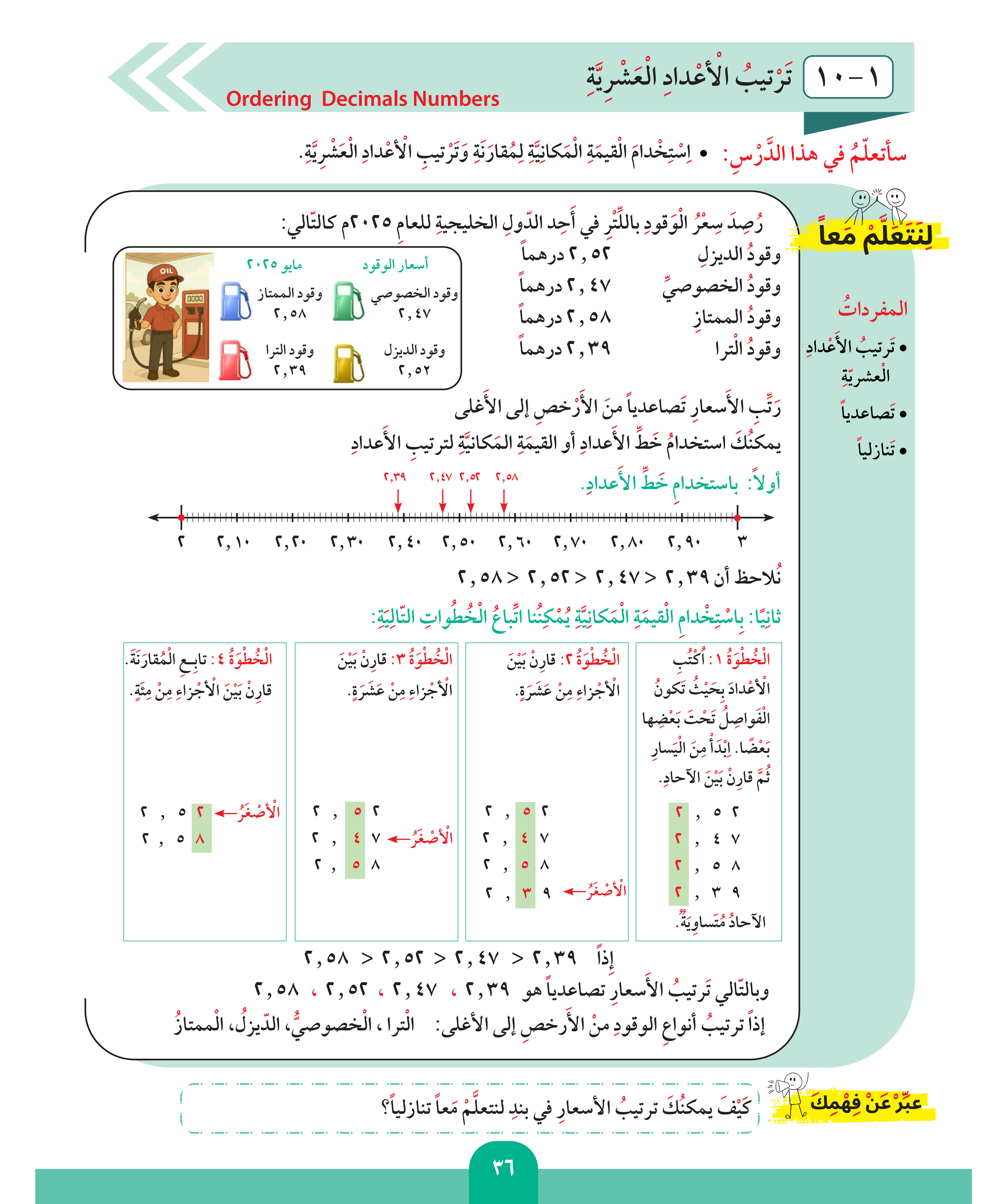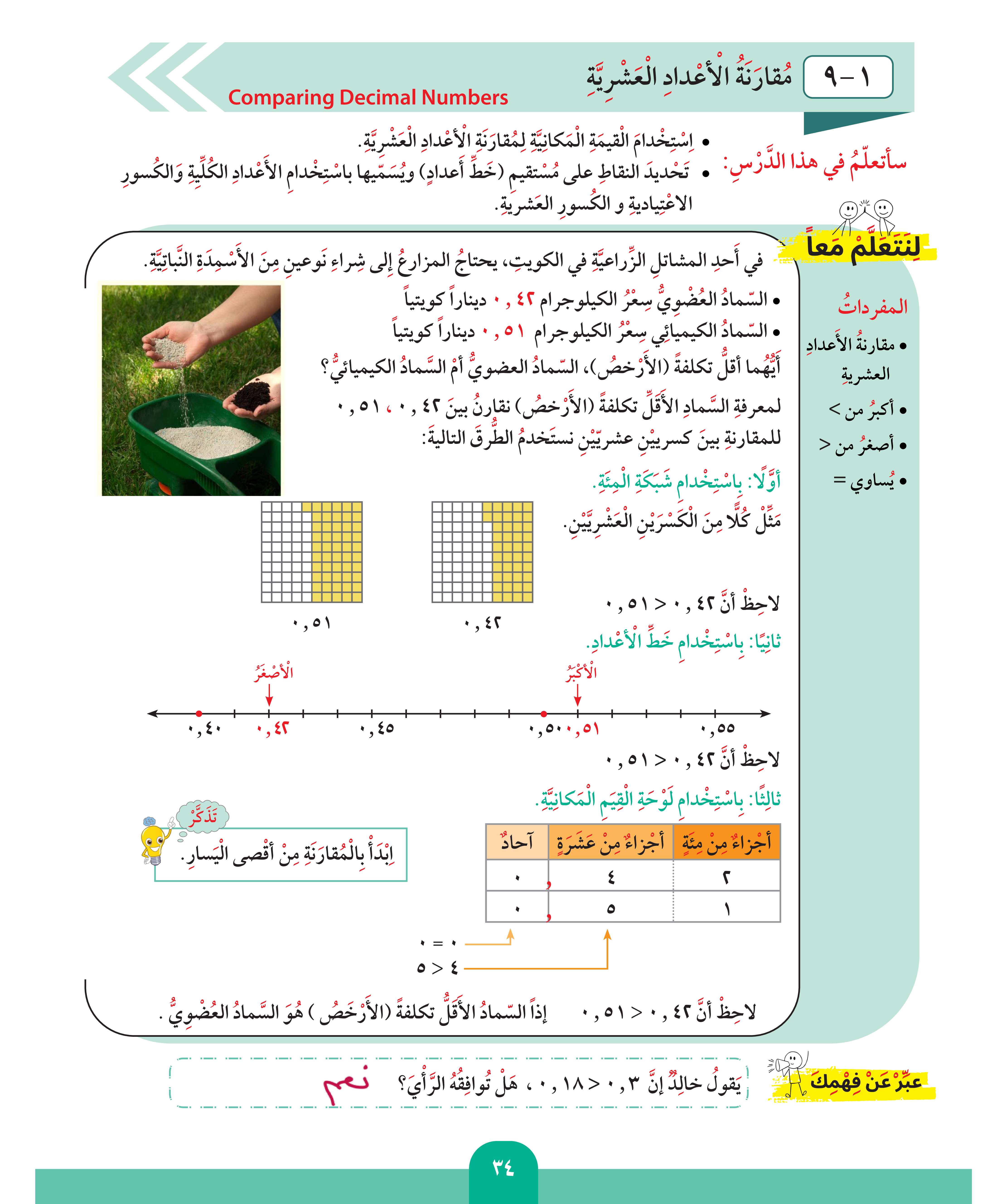 مقارنة الأعداد العشرية