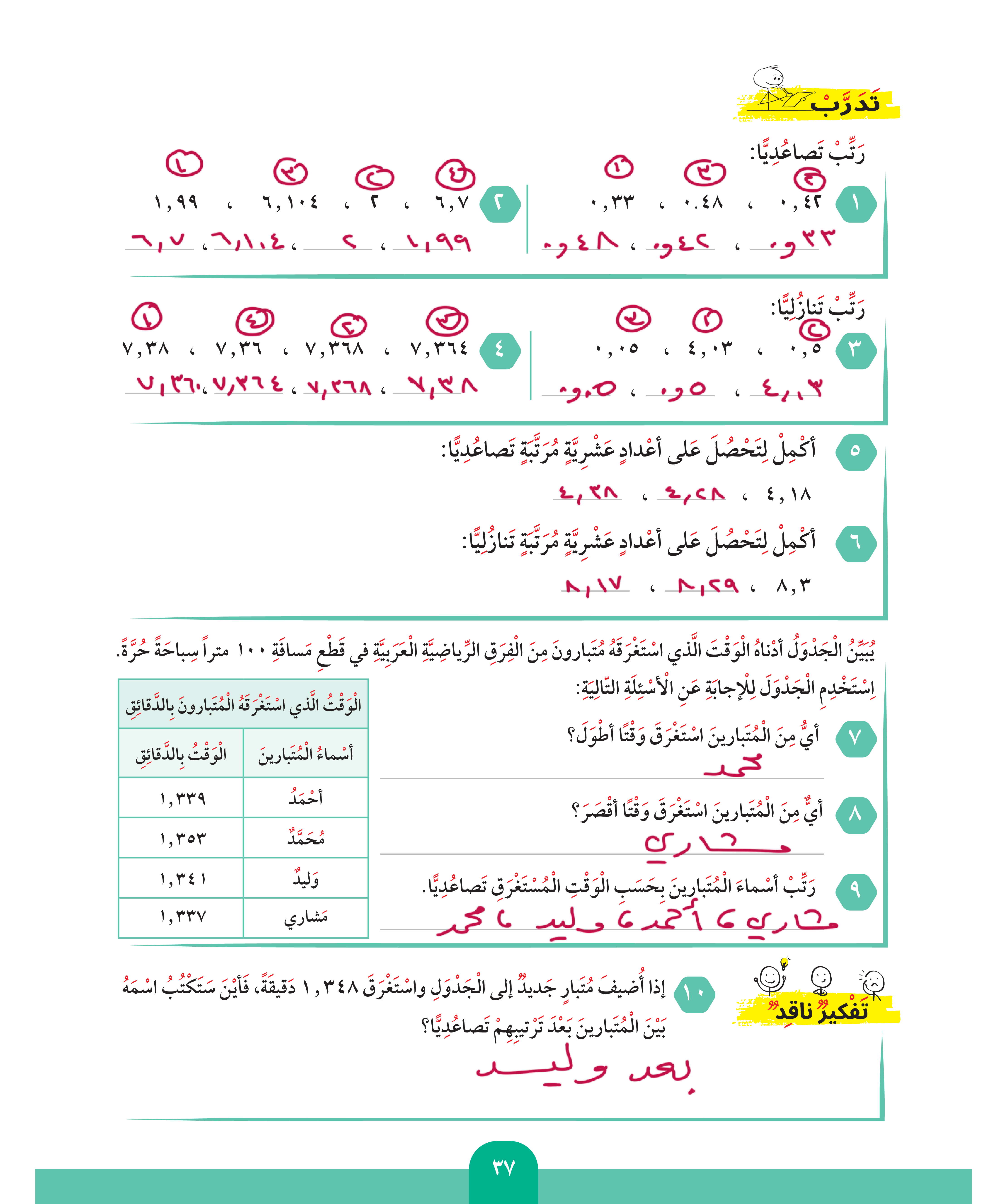 ترتيب الأعداد العشرية