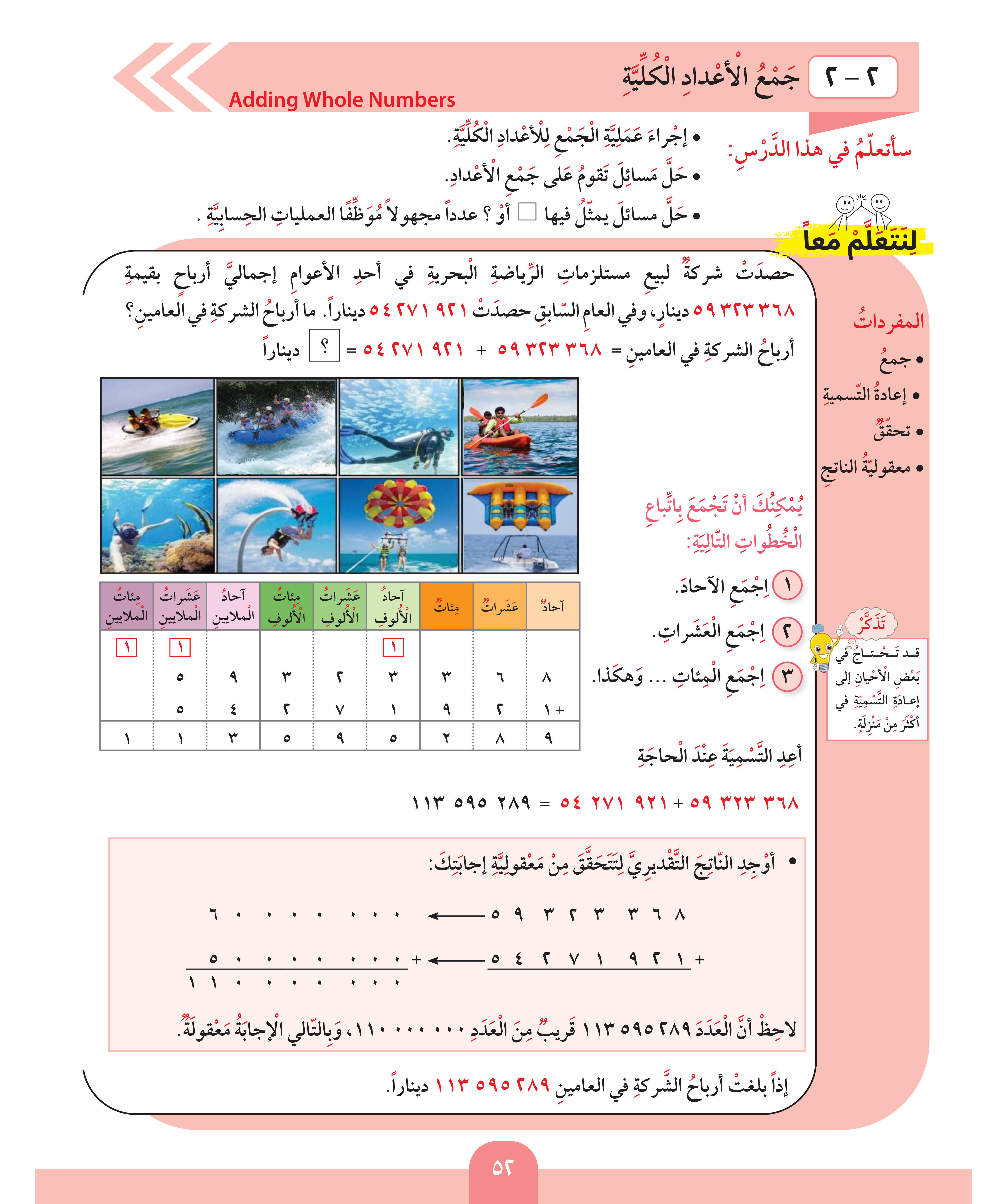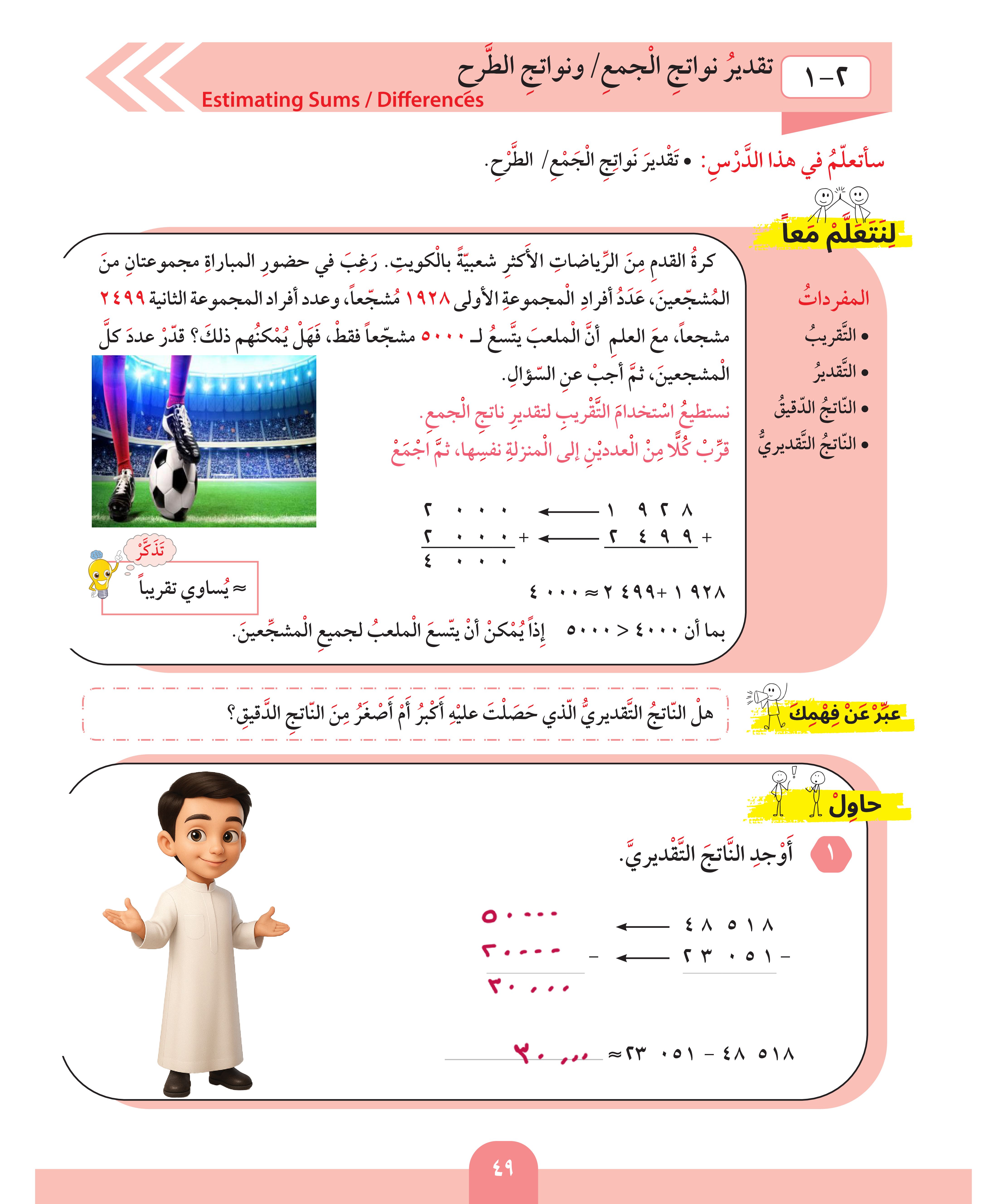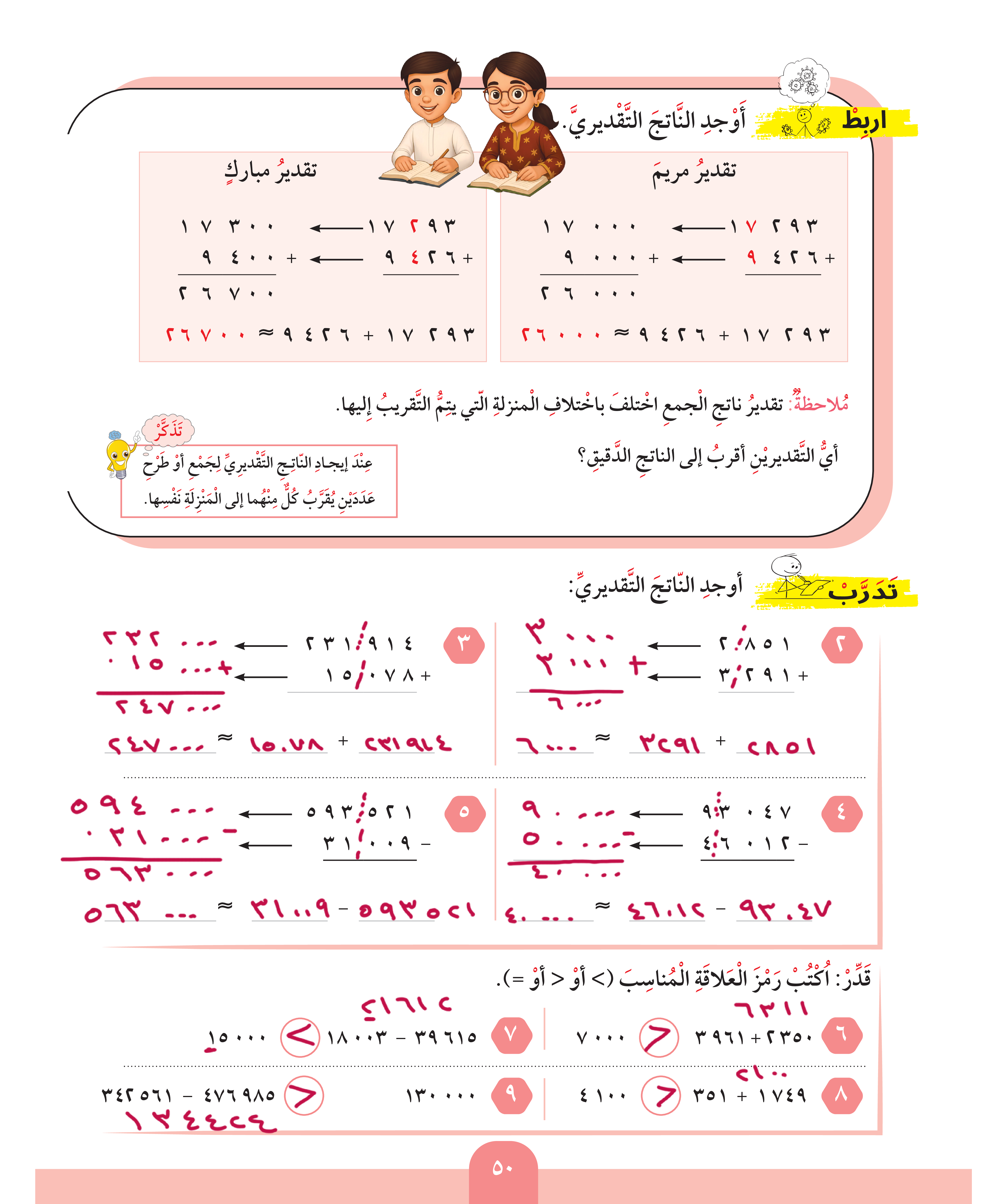 تقدير نواتج الجمع / ونواتج الطرح