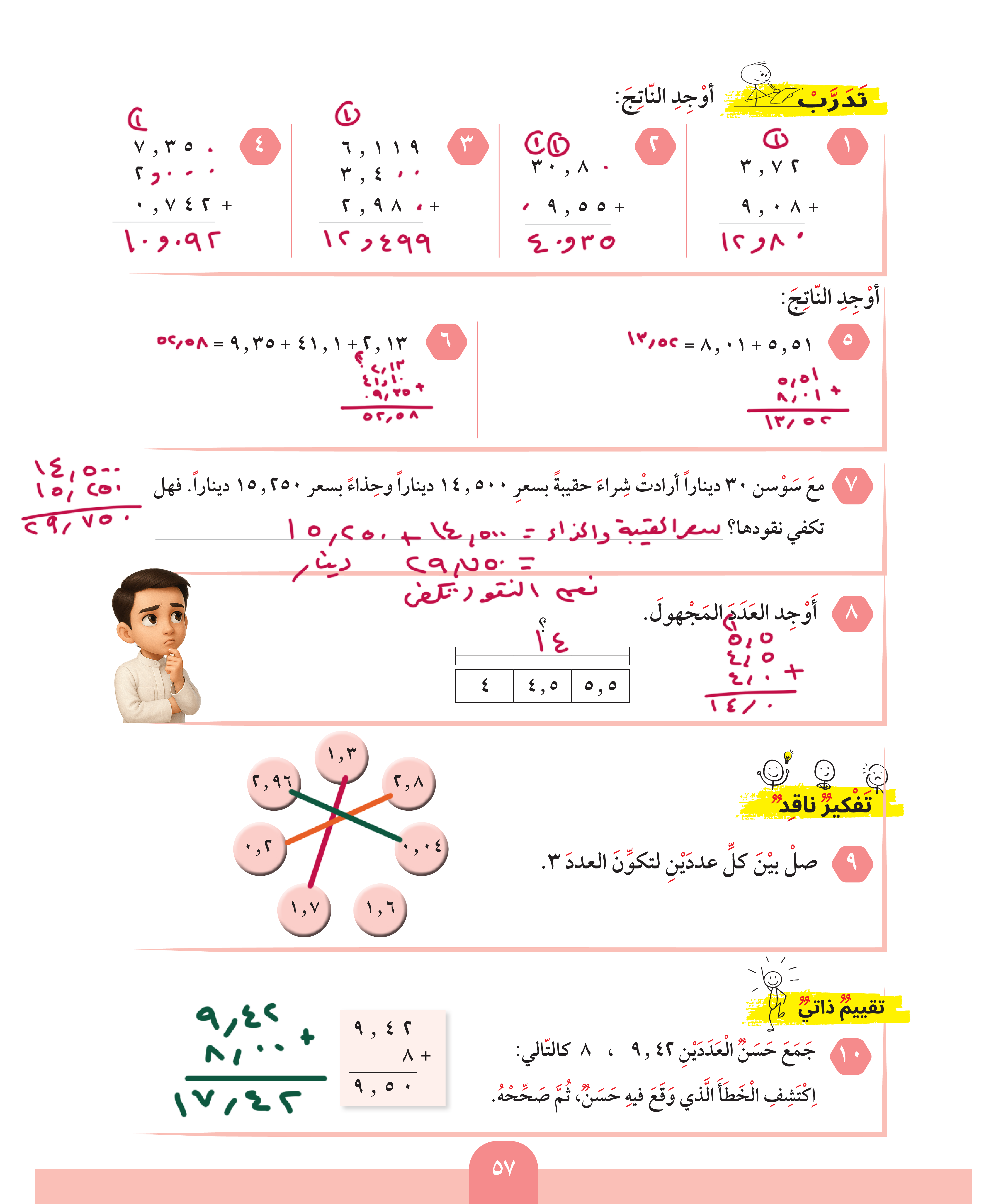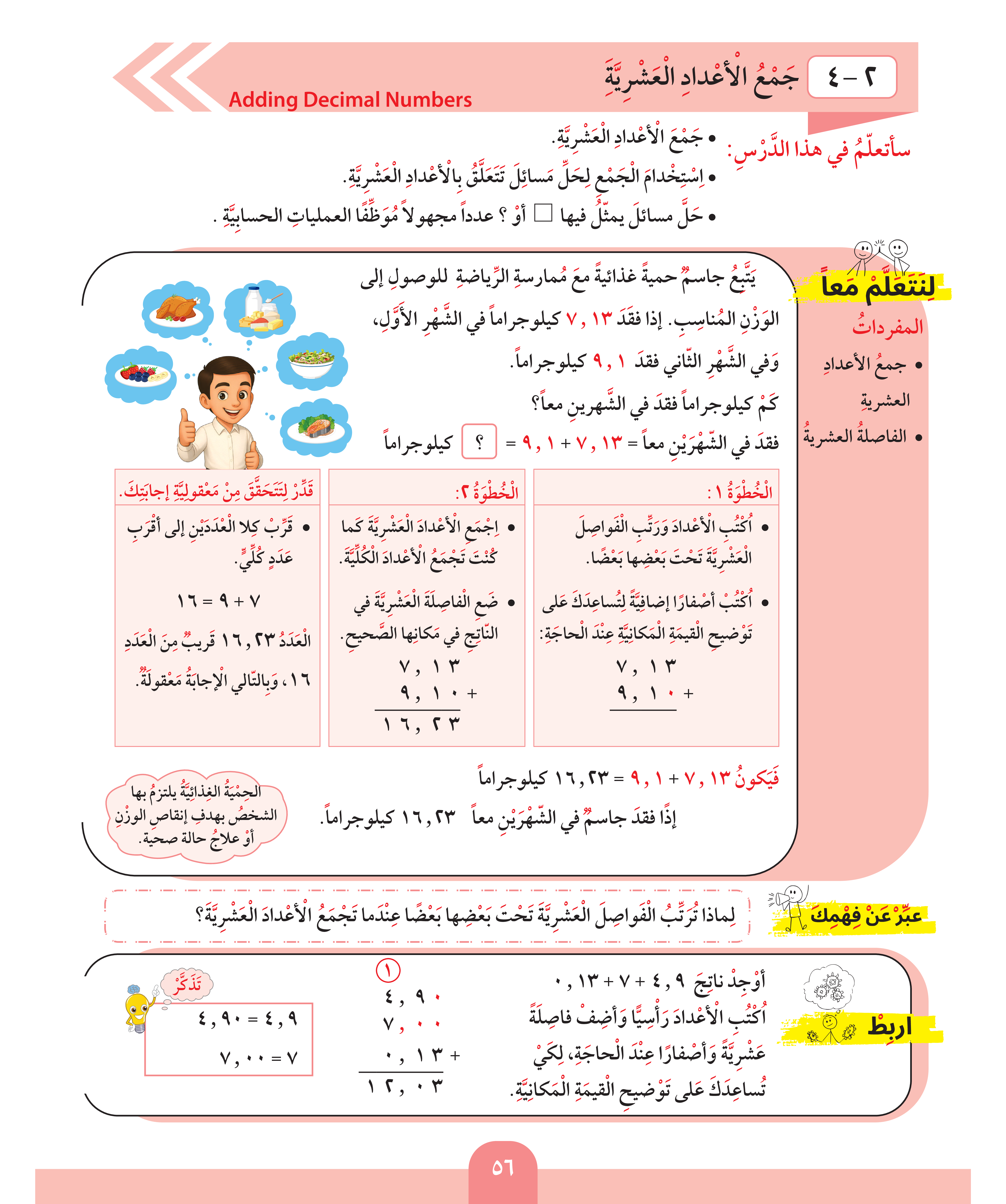 جمع الأعداد العشرية