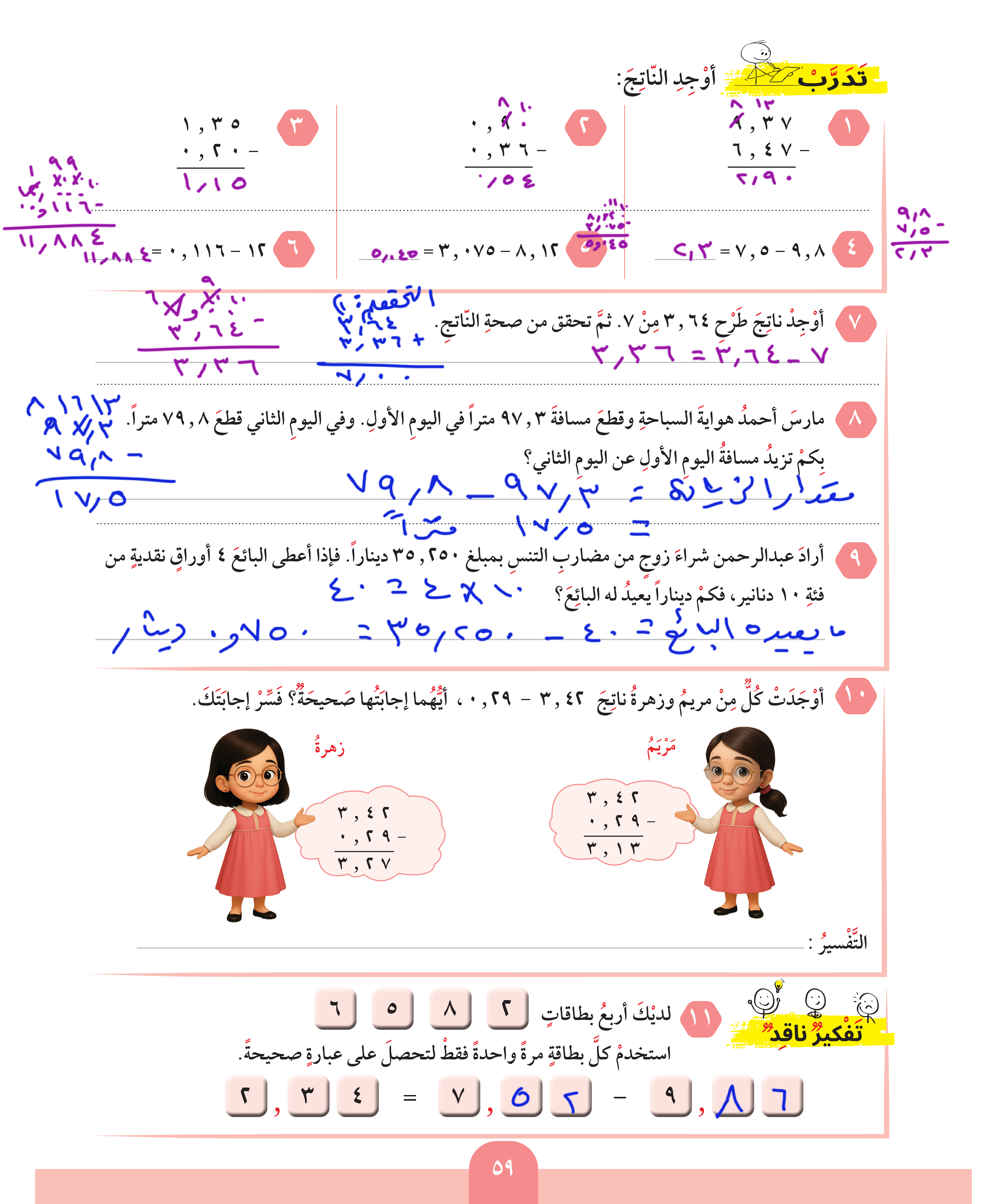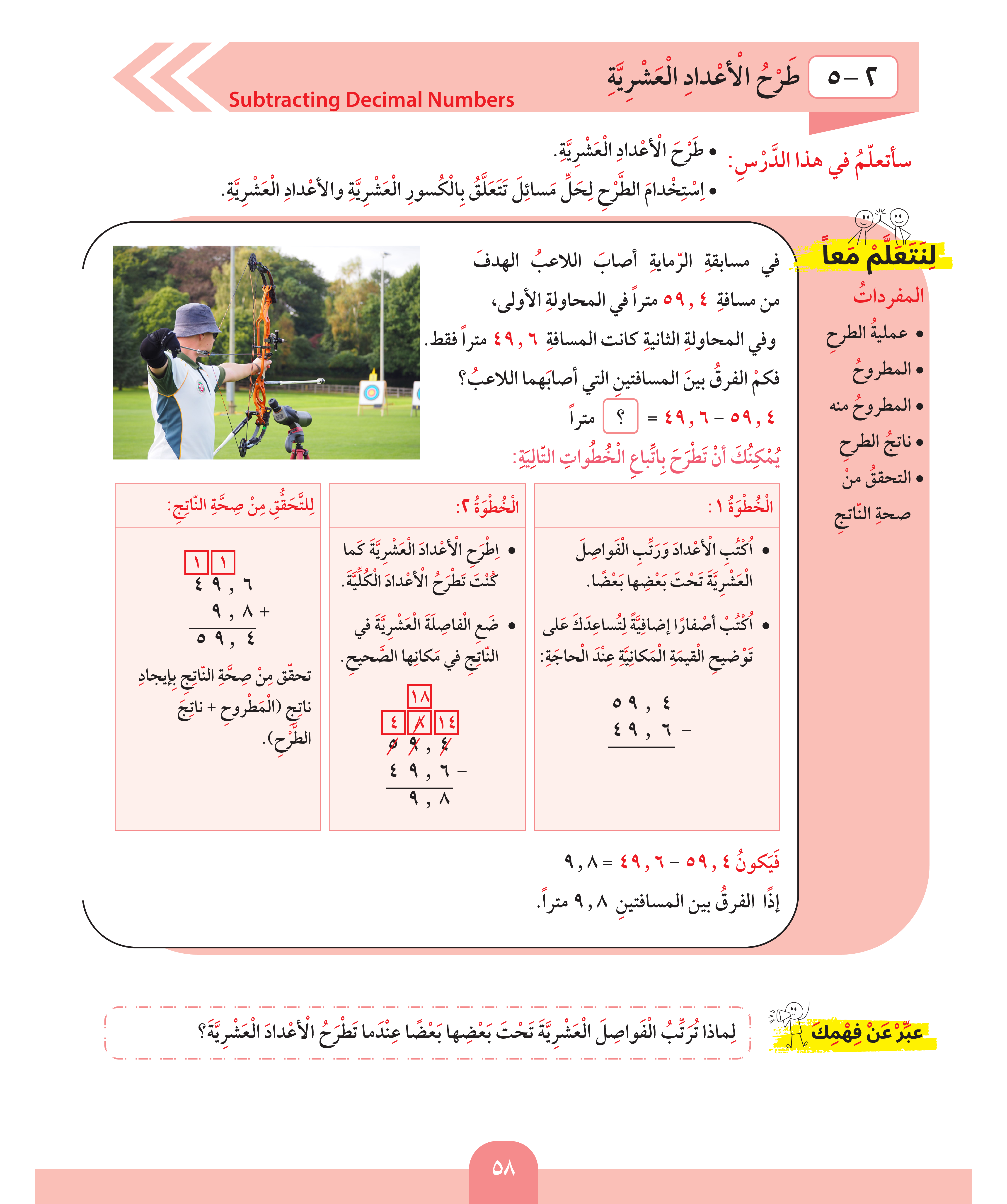 طرح الأعداد العشرية