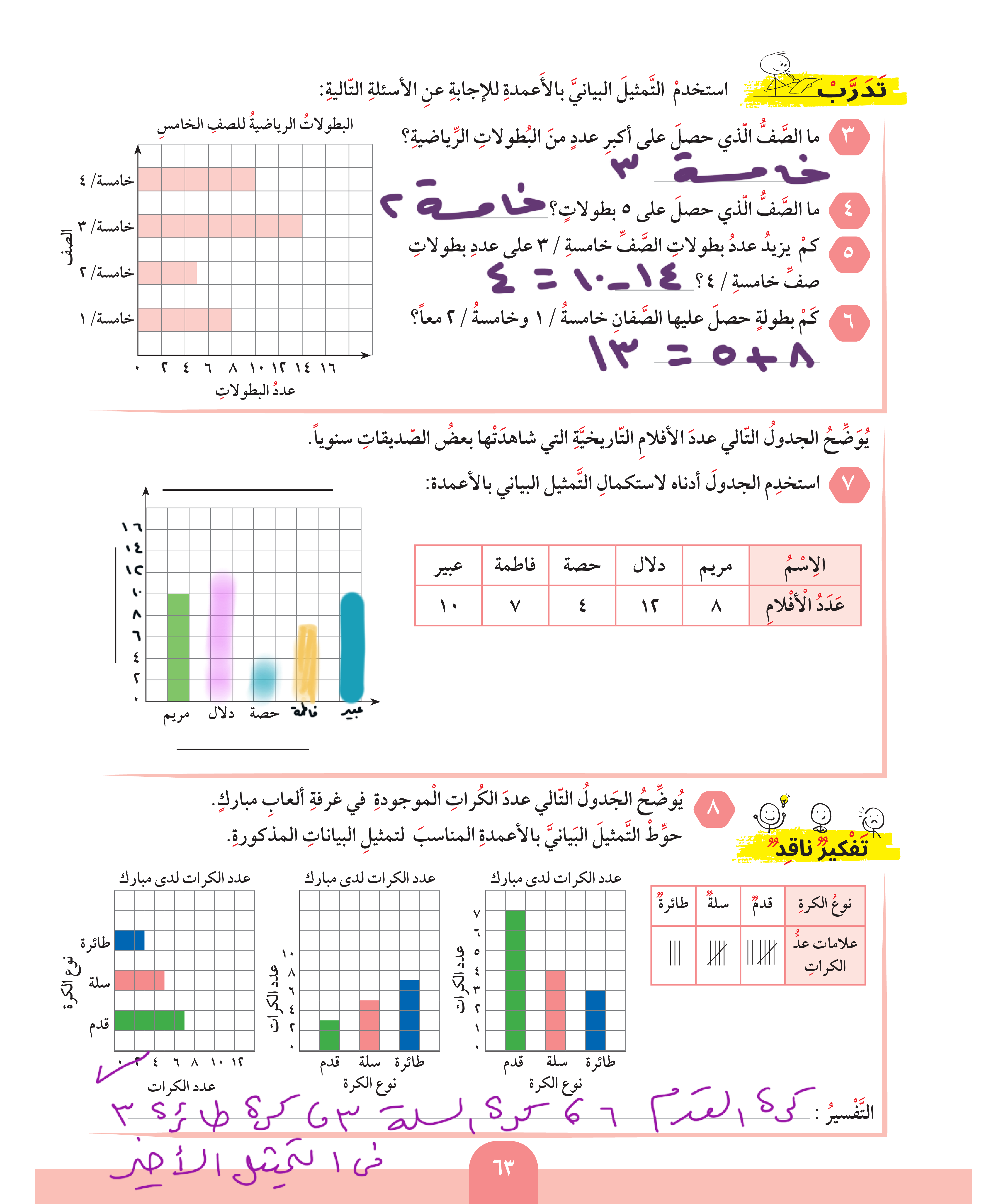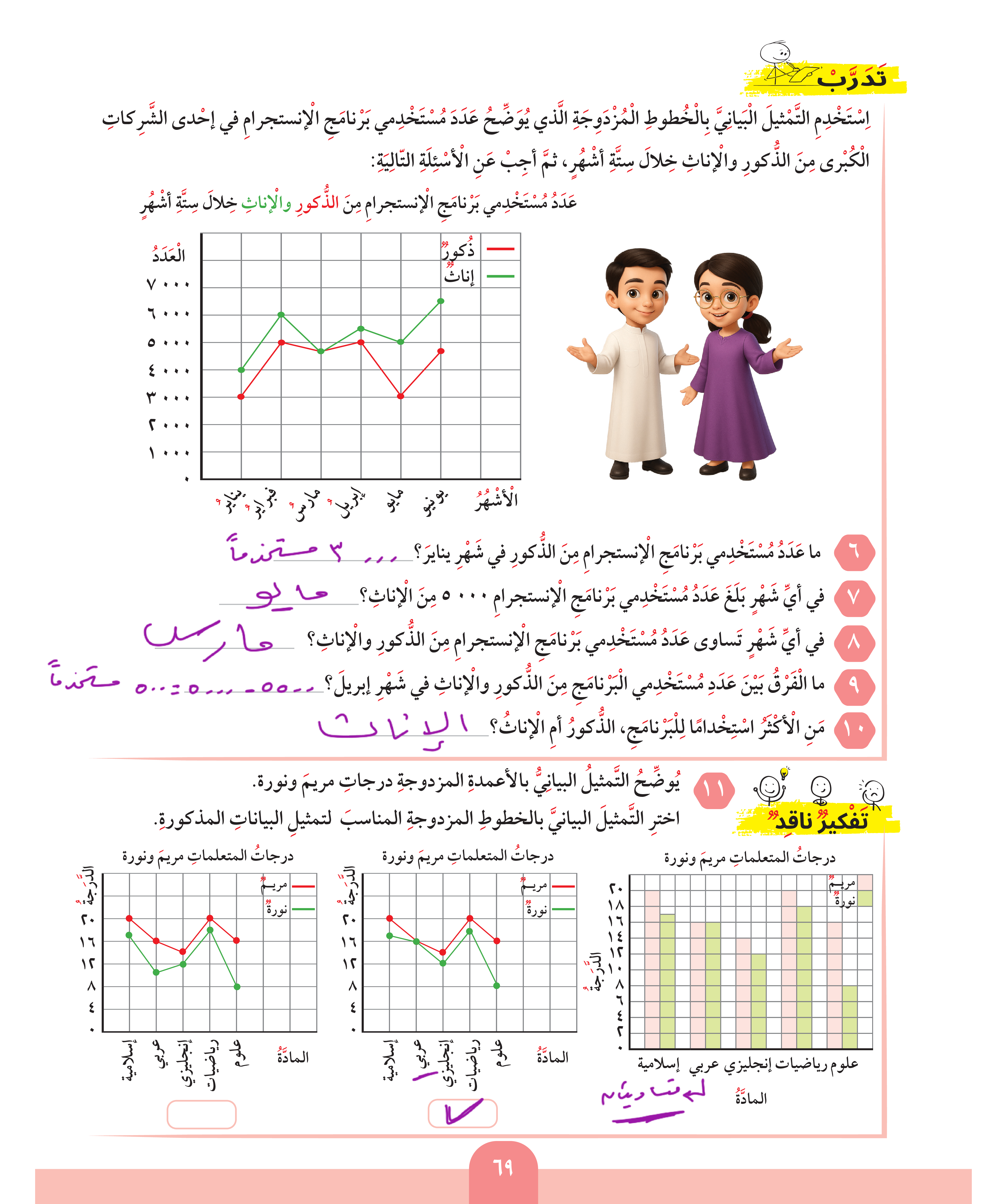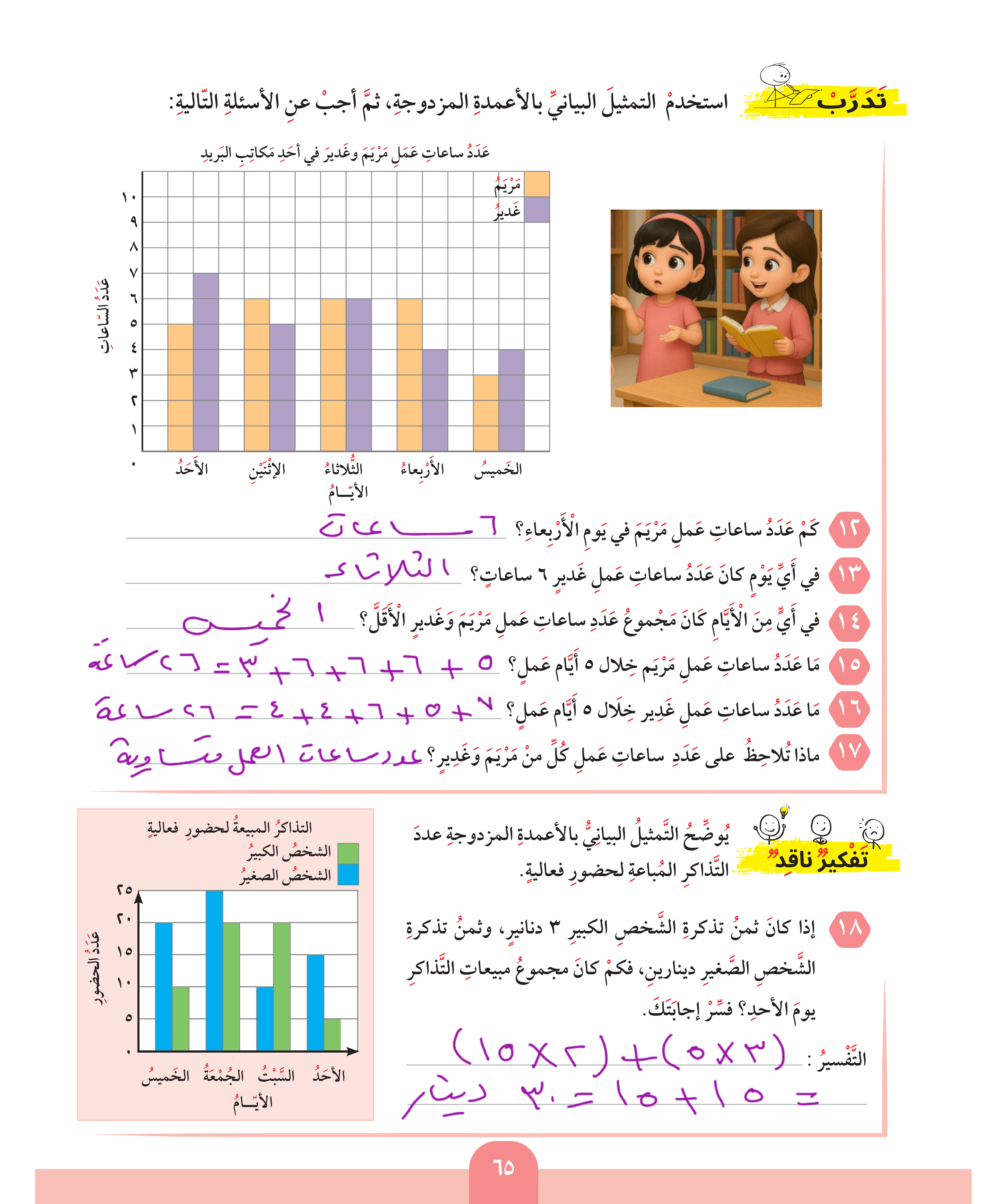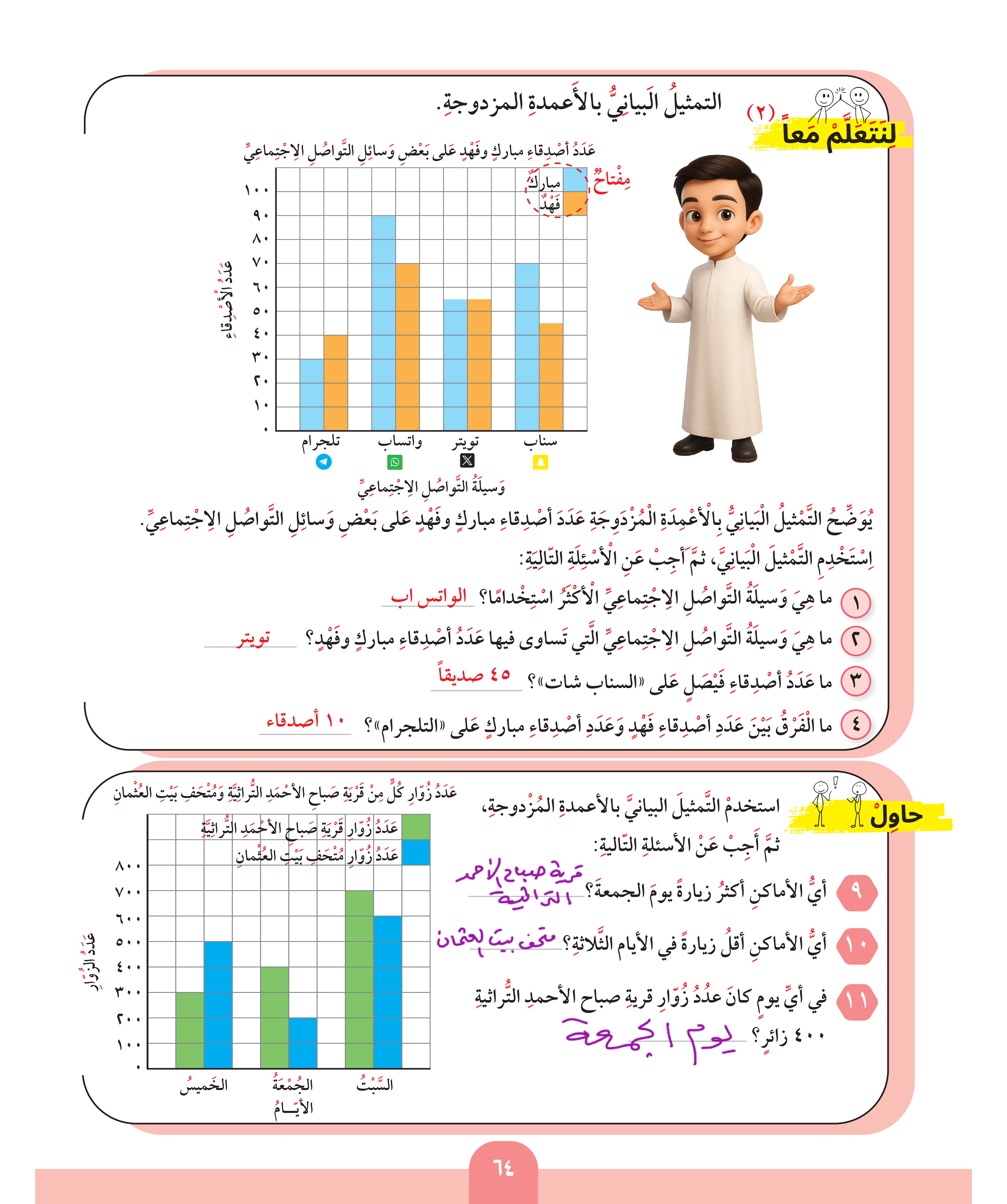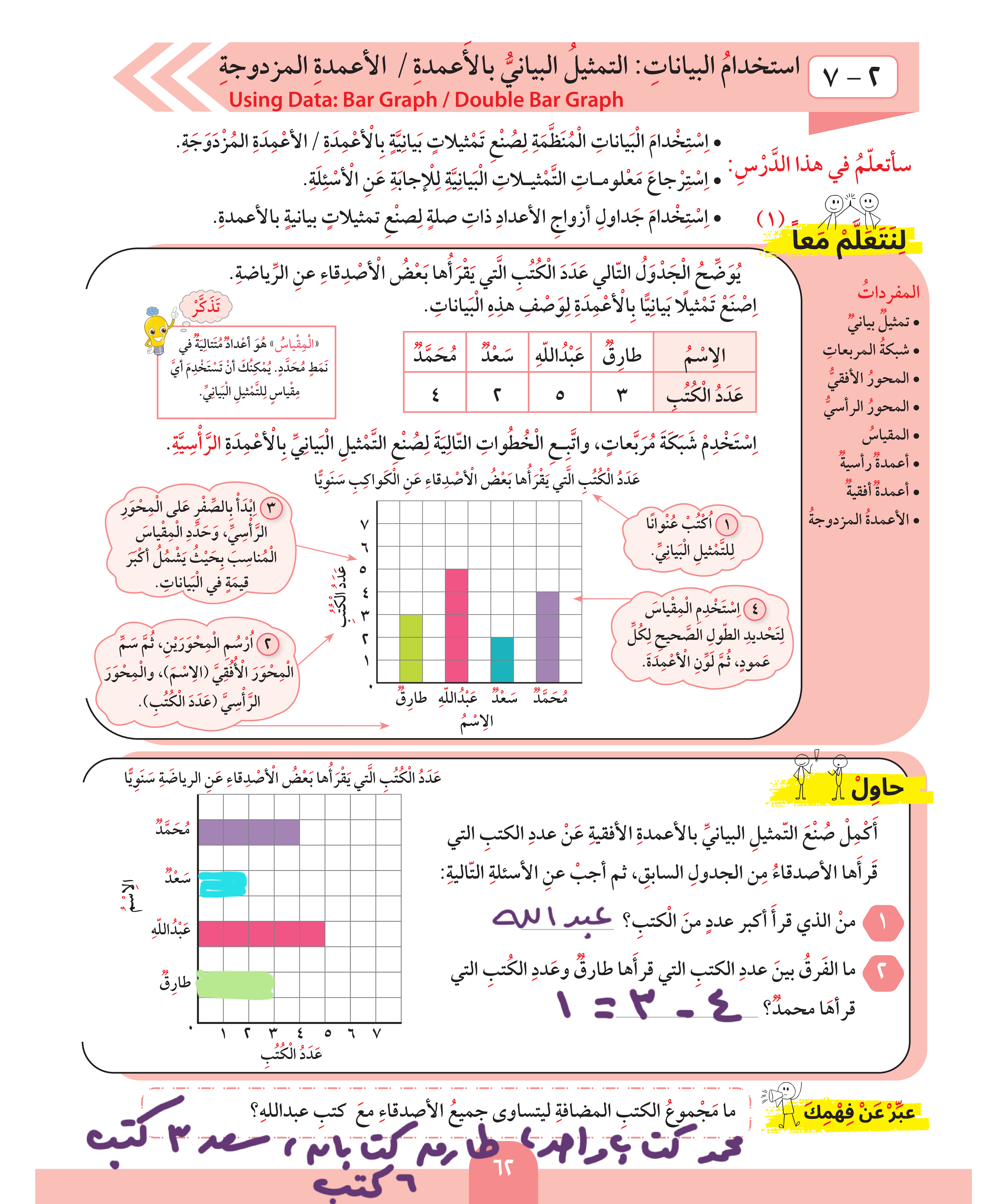 استخدام البيانات: التمثيل البياني بالأعمدة / الأعمدة المزدوجة
