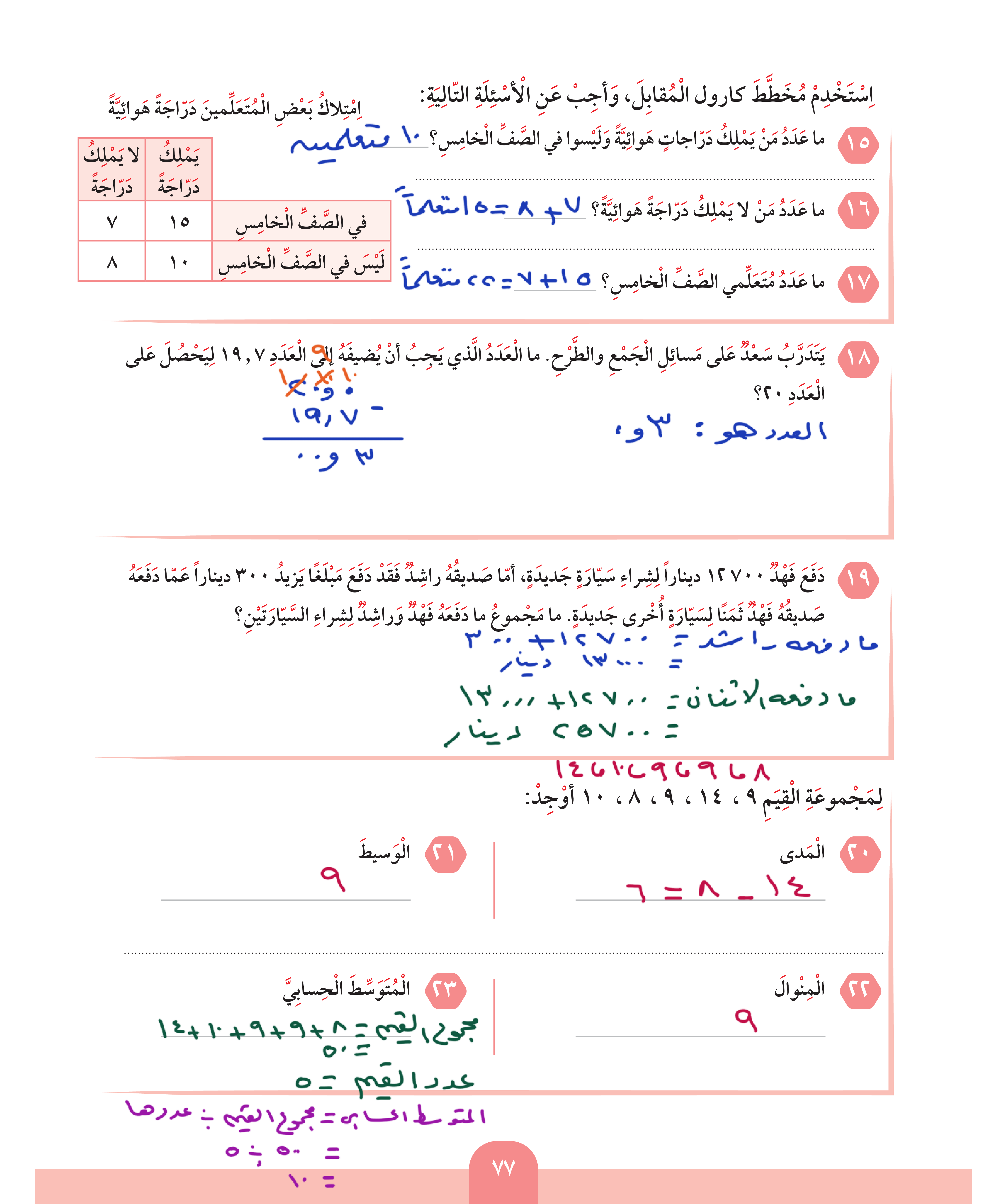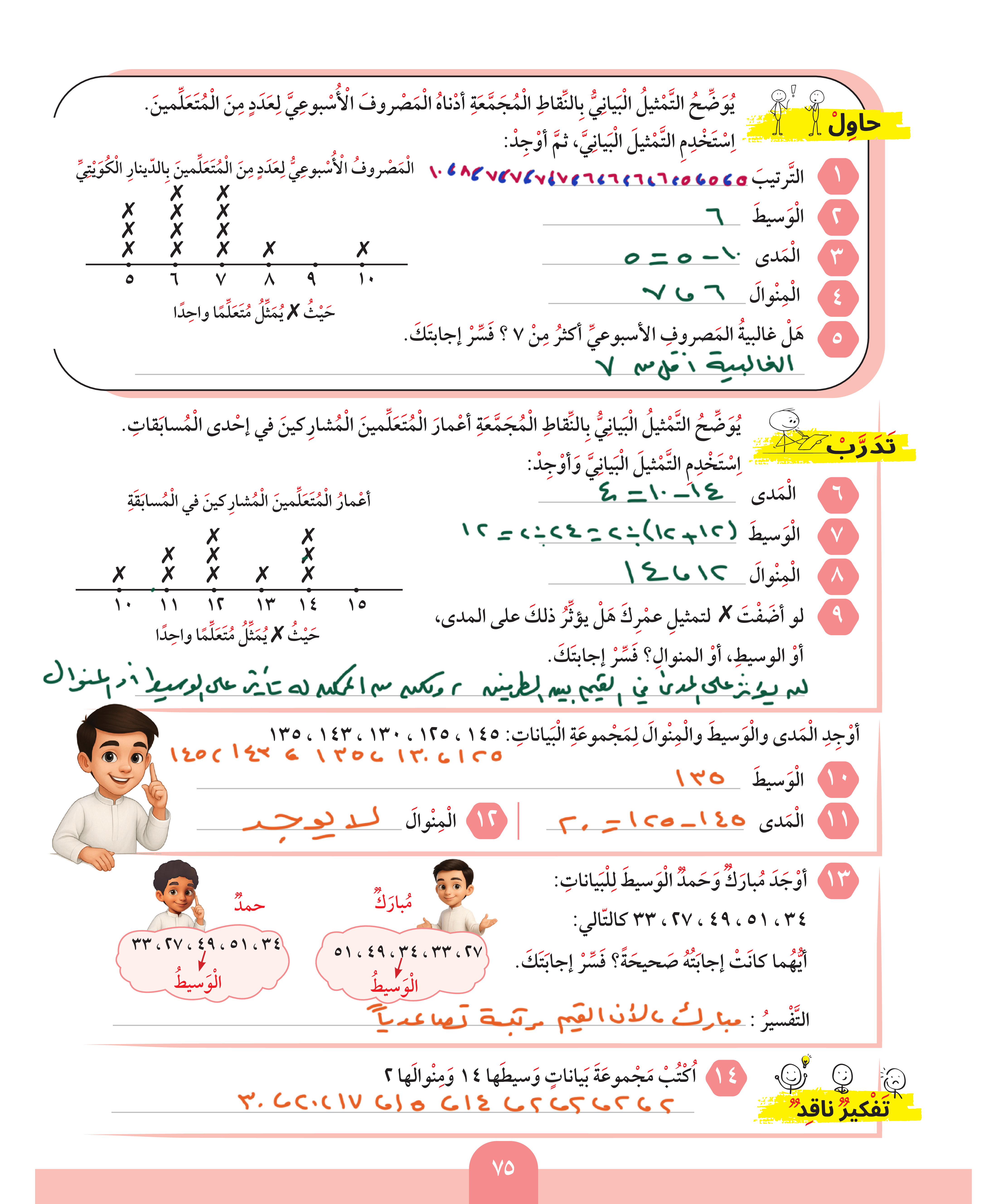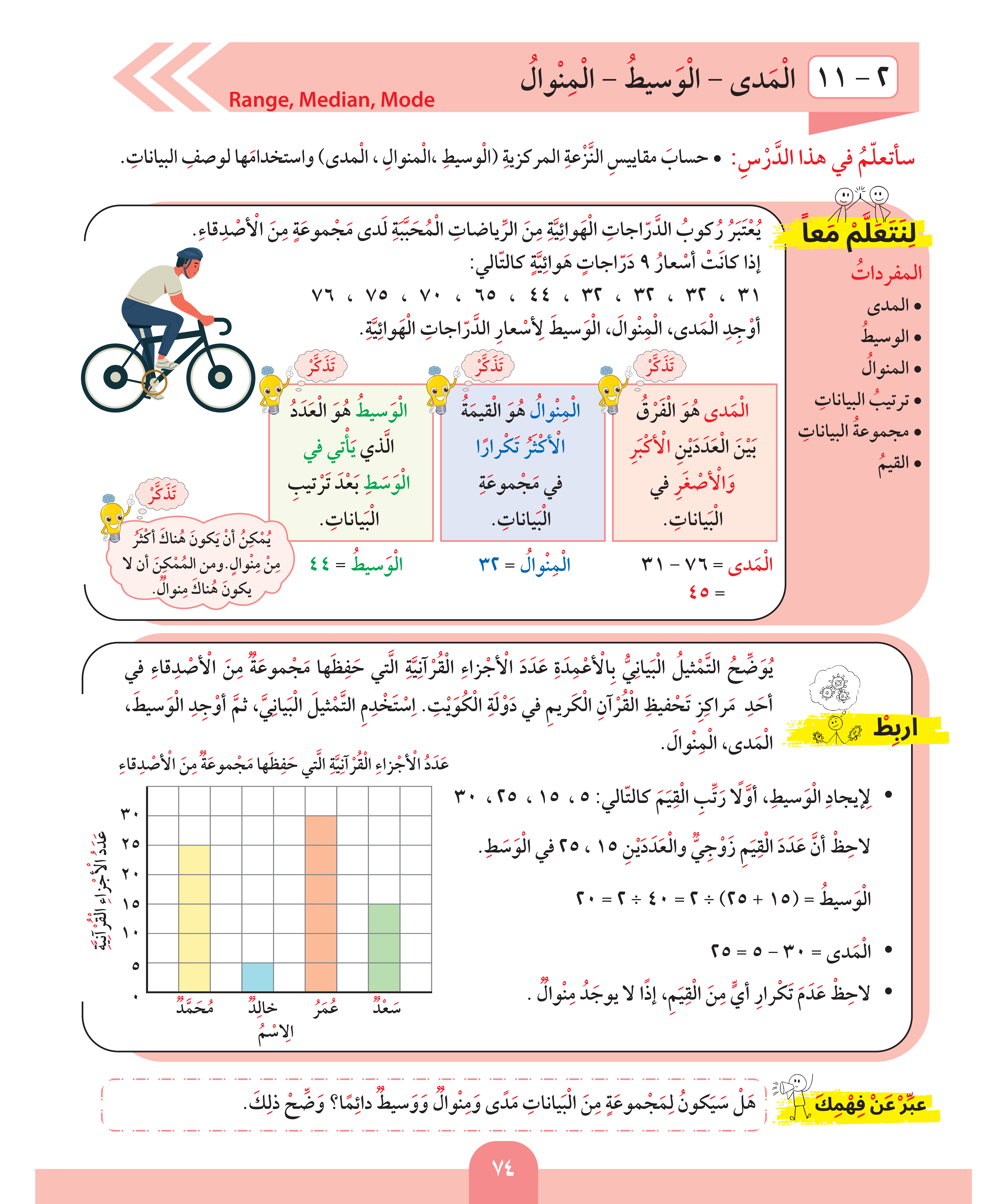 المدى - الوسيط - المنوال