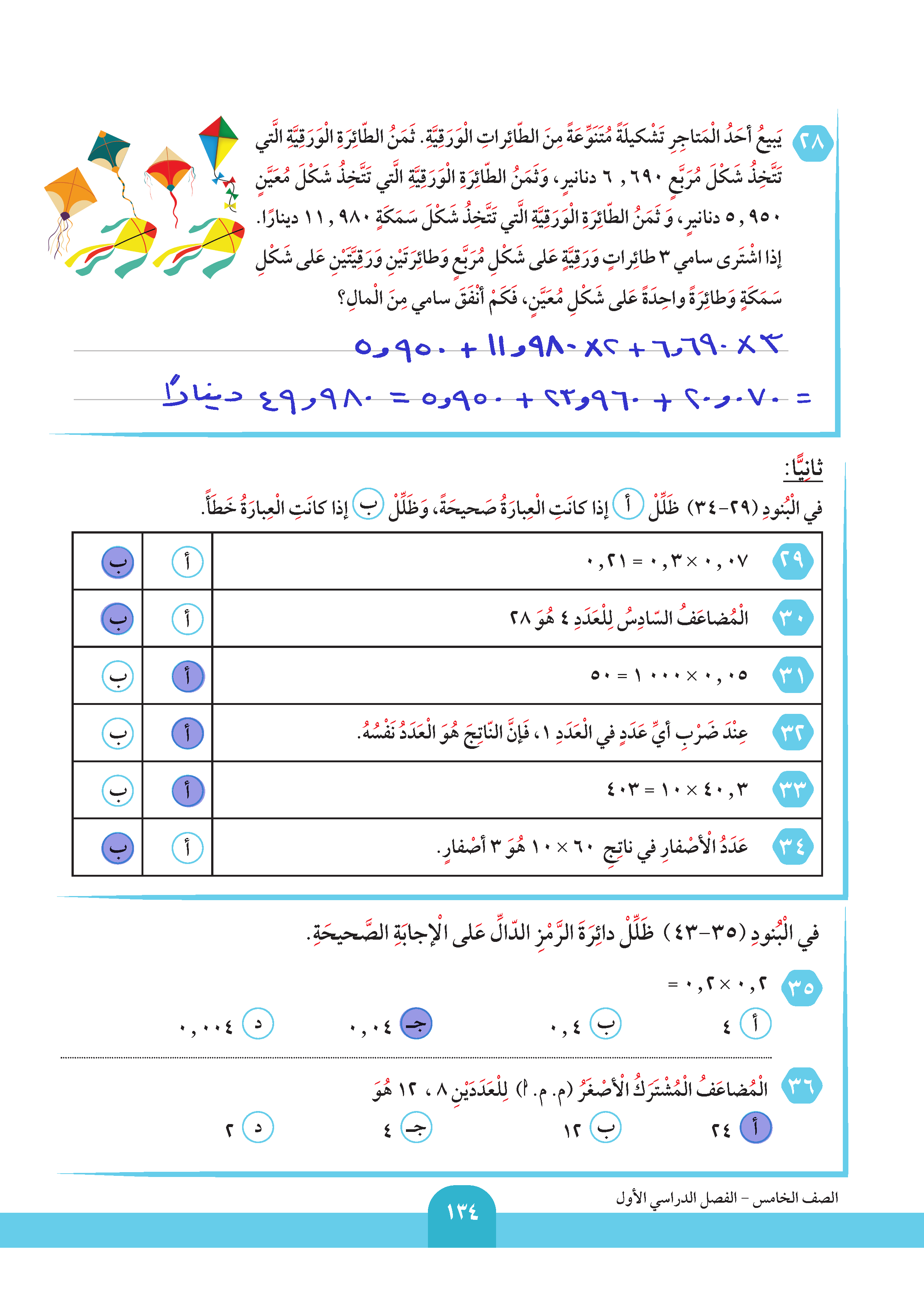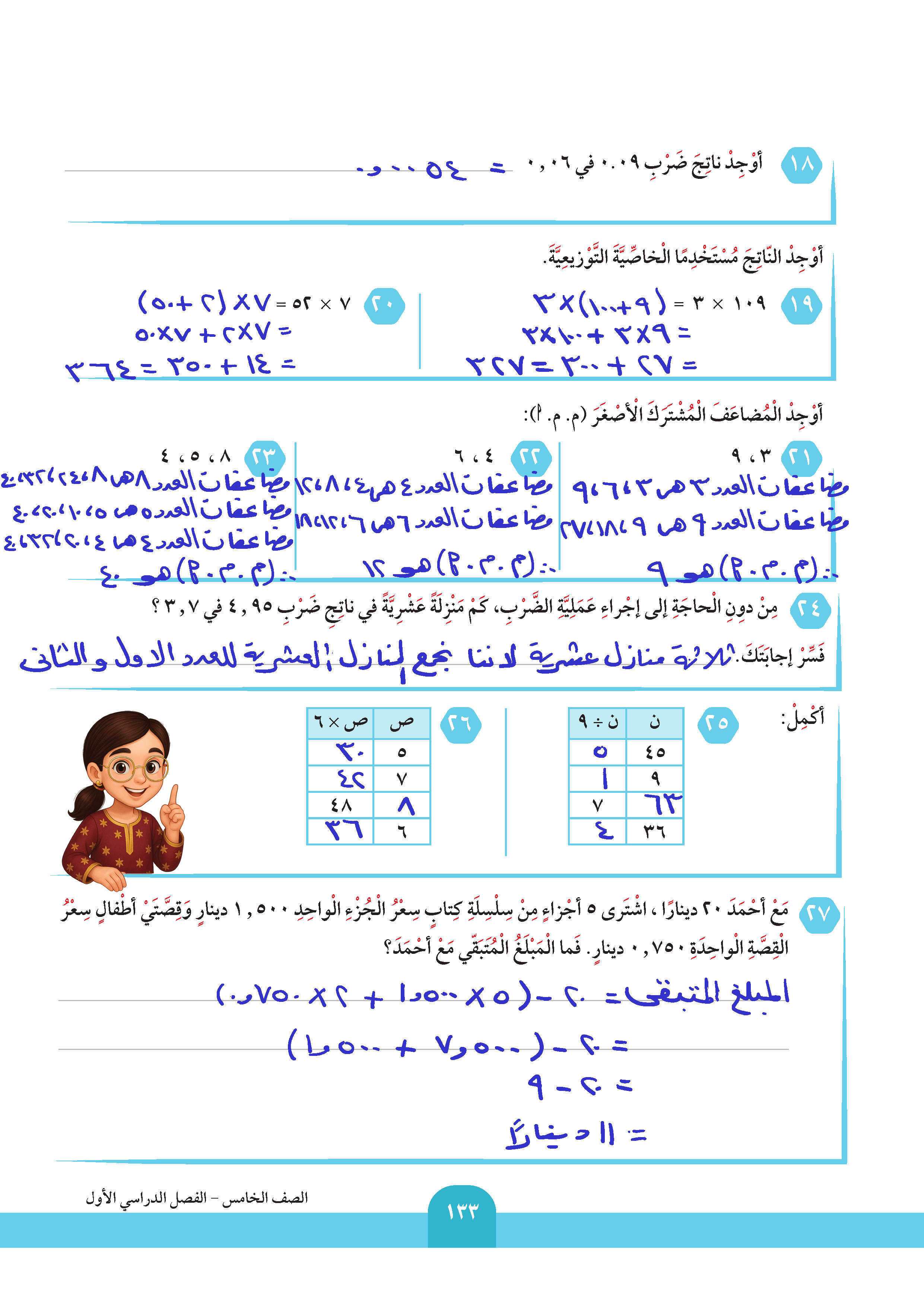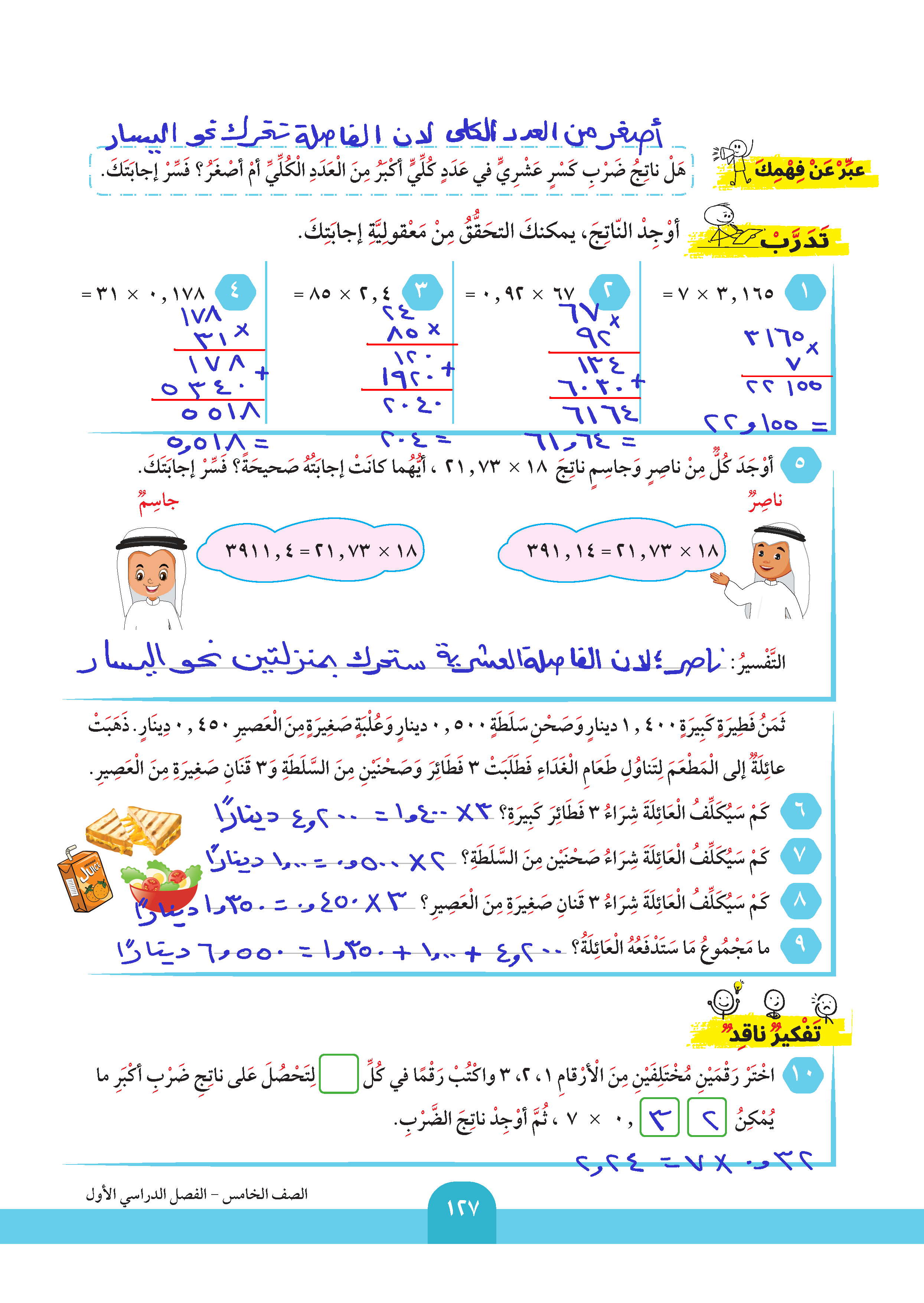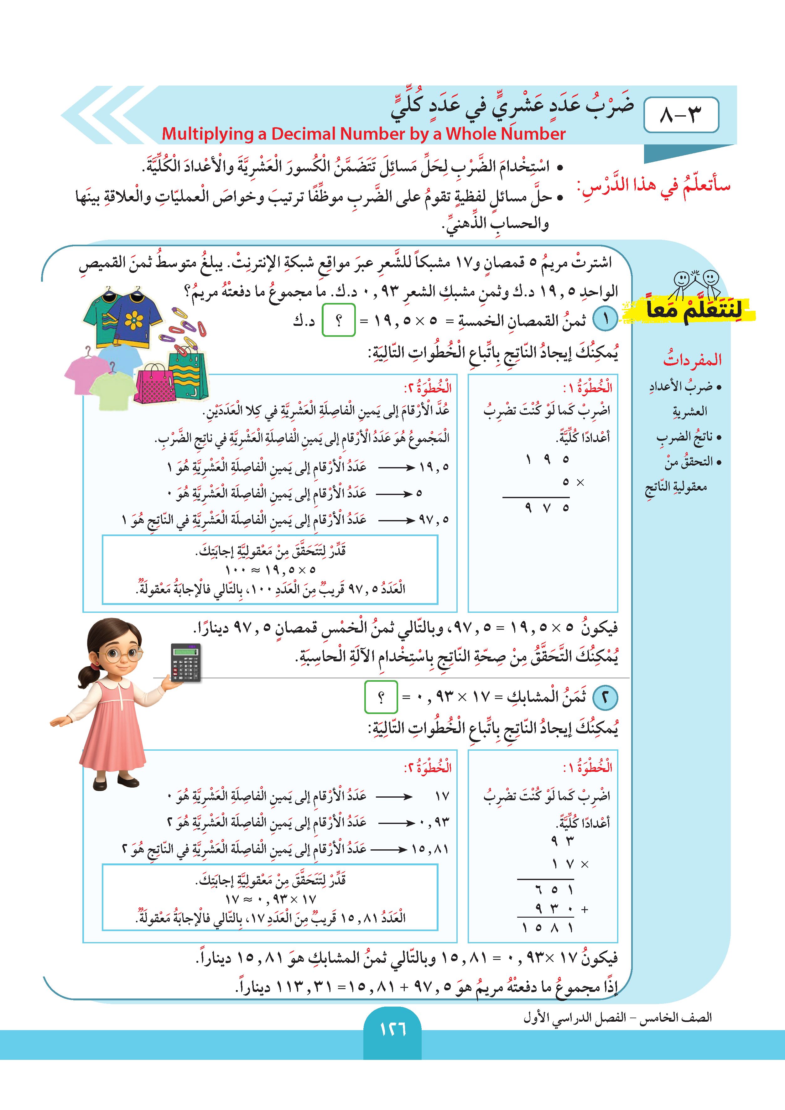 ضرب عدد عشري في عدد كلي