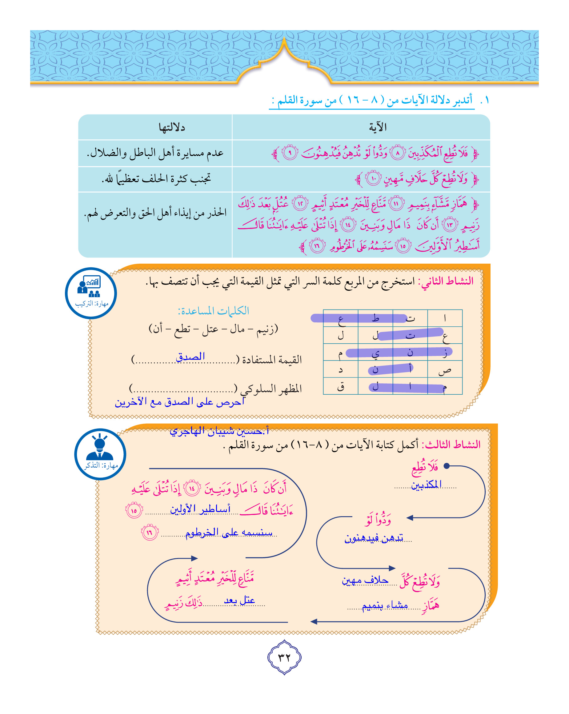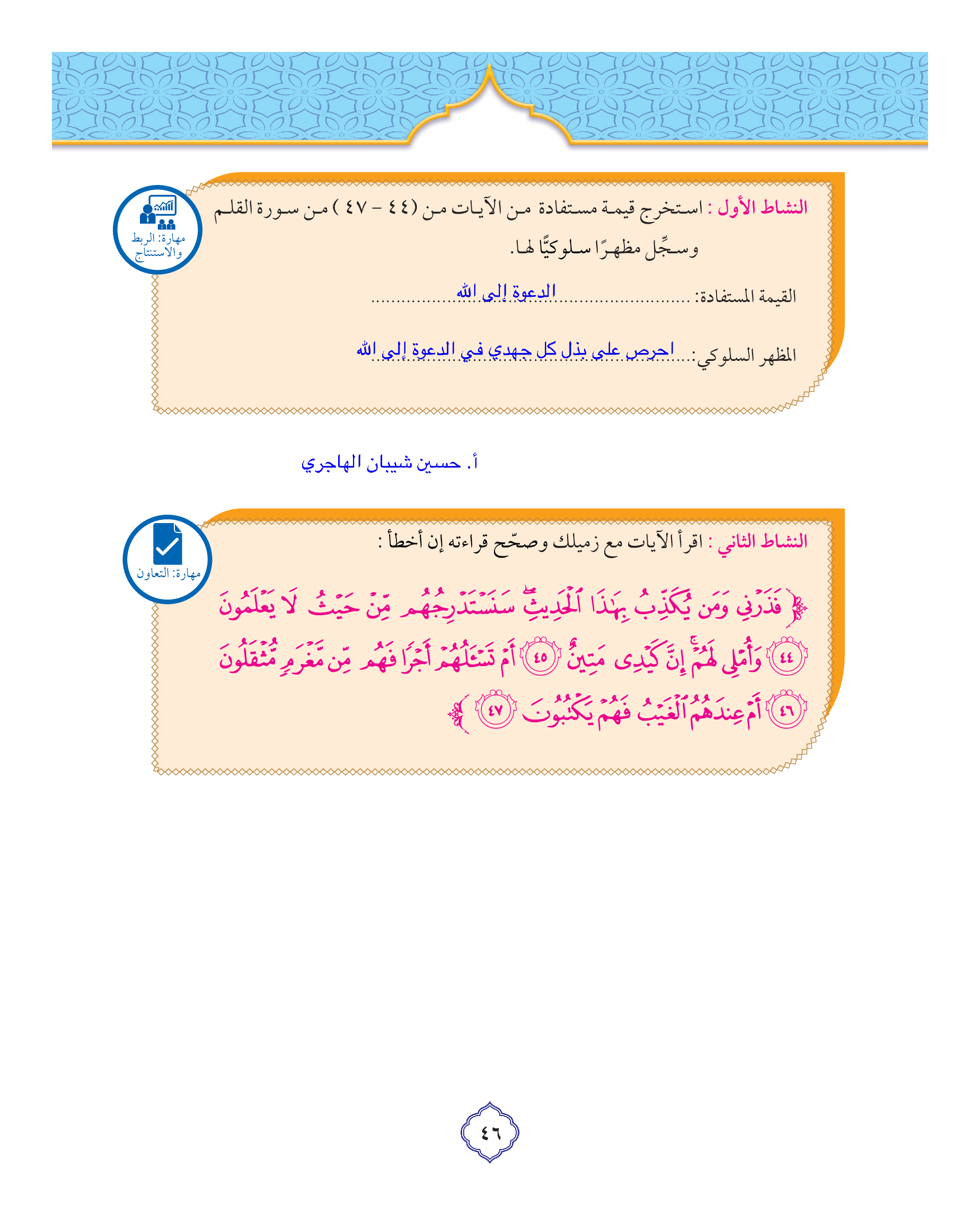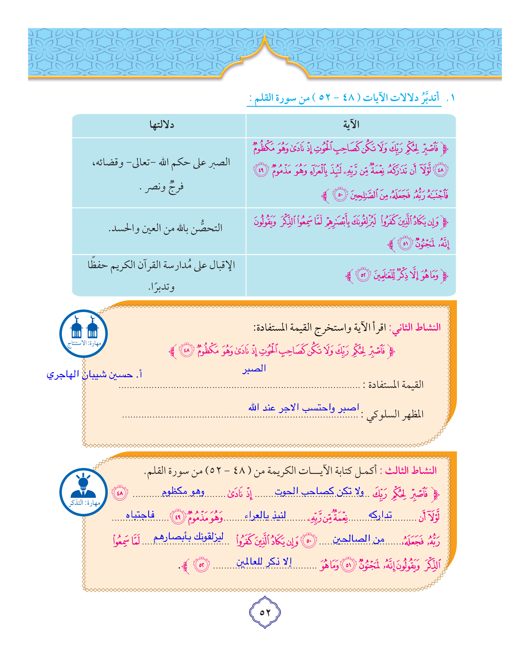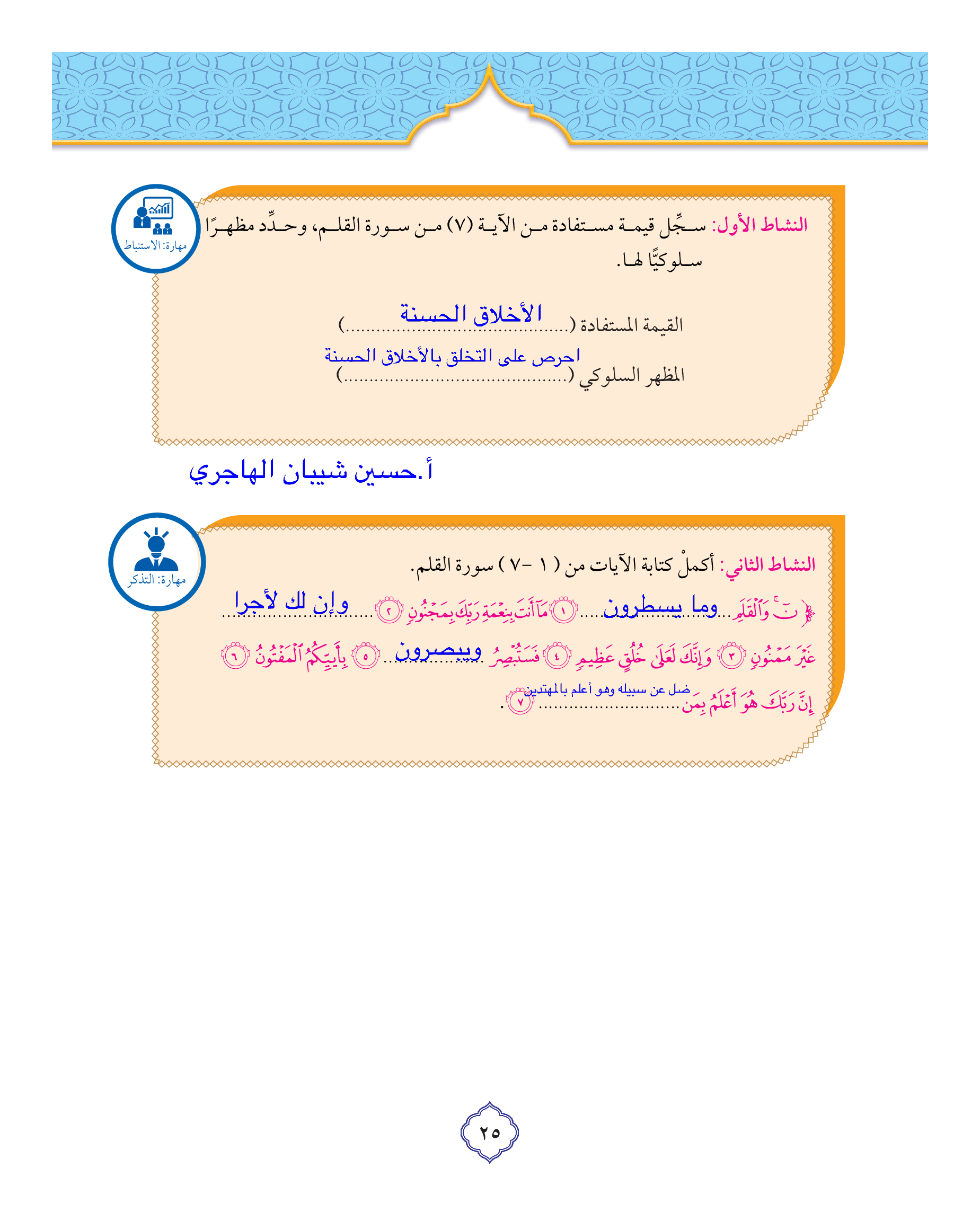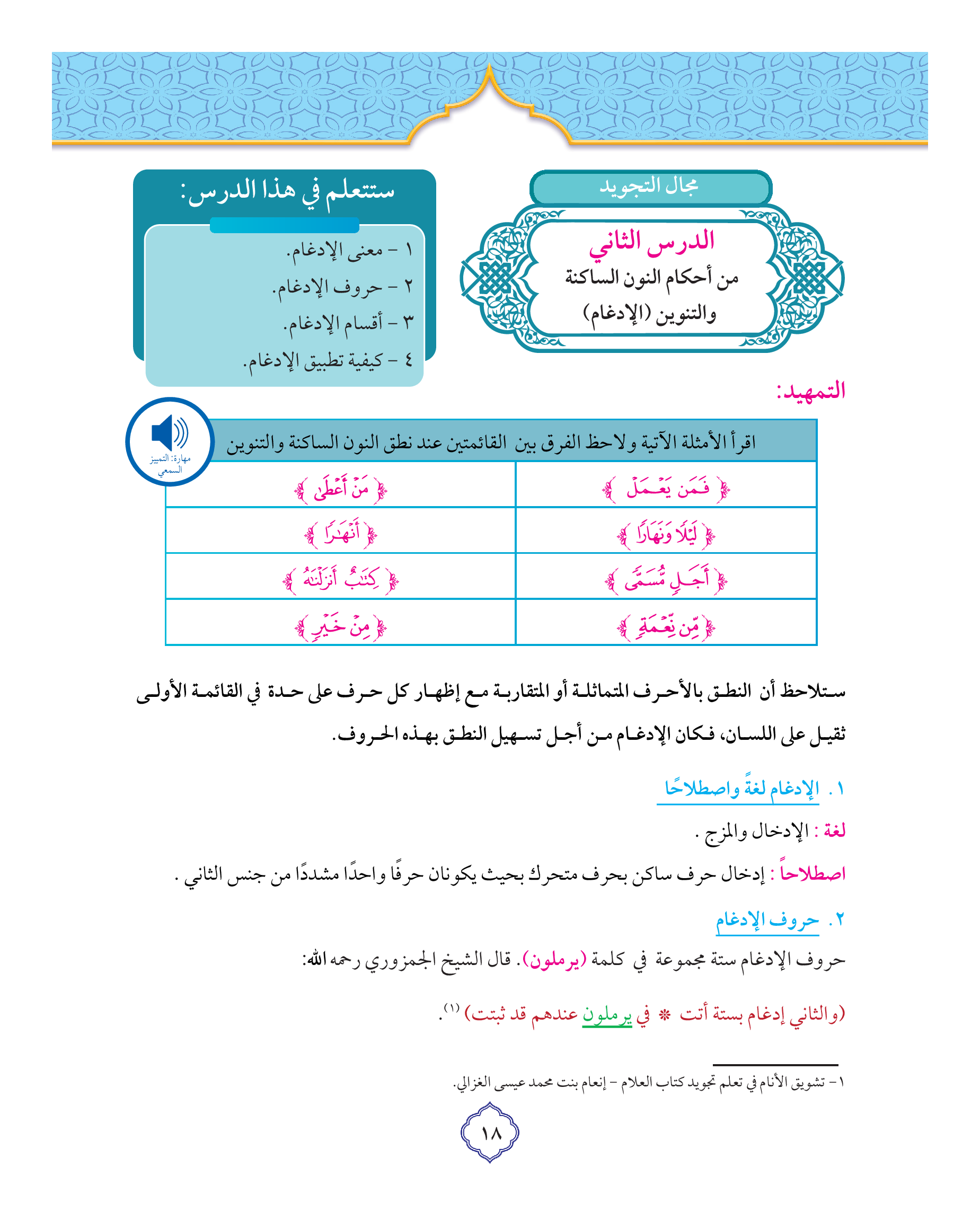 تطبيقات على أحكام النون الساكنة والتنوين (الاظهار الحلقي - الادغام)