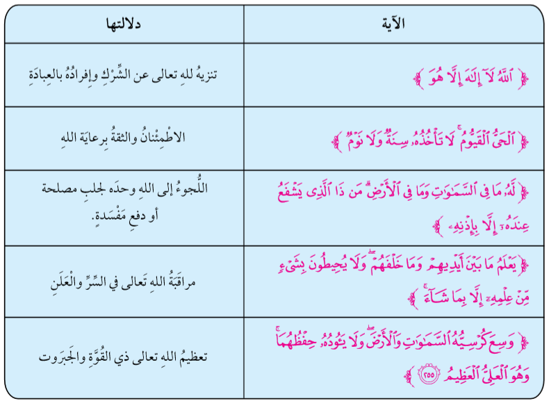 1- أستمع لتلاوة آية الكرسي وأفهم معانيها: