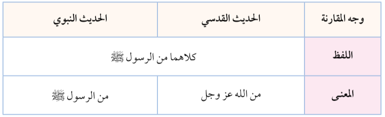 3- - أفرق بين الحديث القدسي والحديث النبوي من حيث اللفظ والمعنى :
