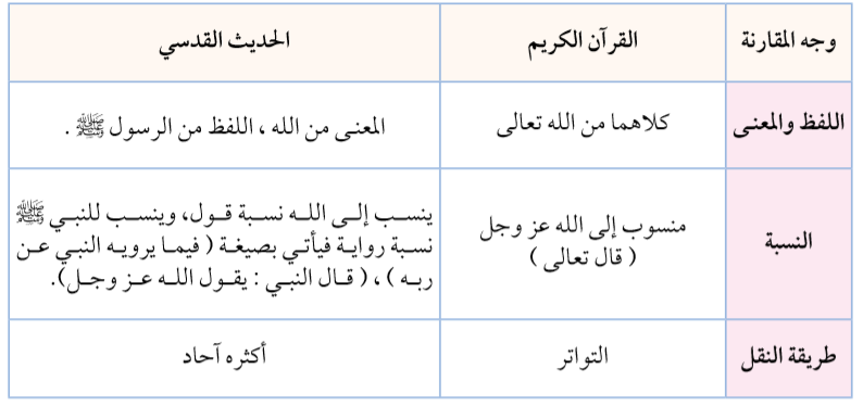2- أقارن بين القرآن الكريم والحديث القدسي: