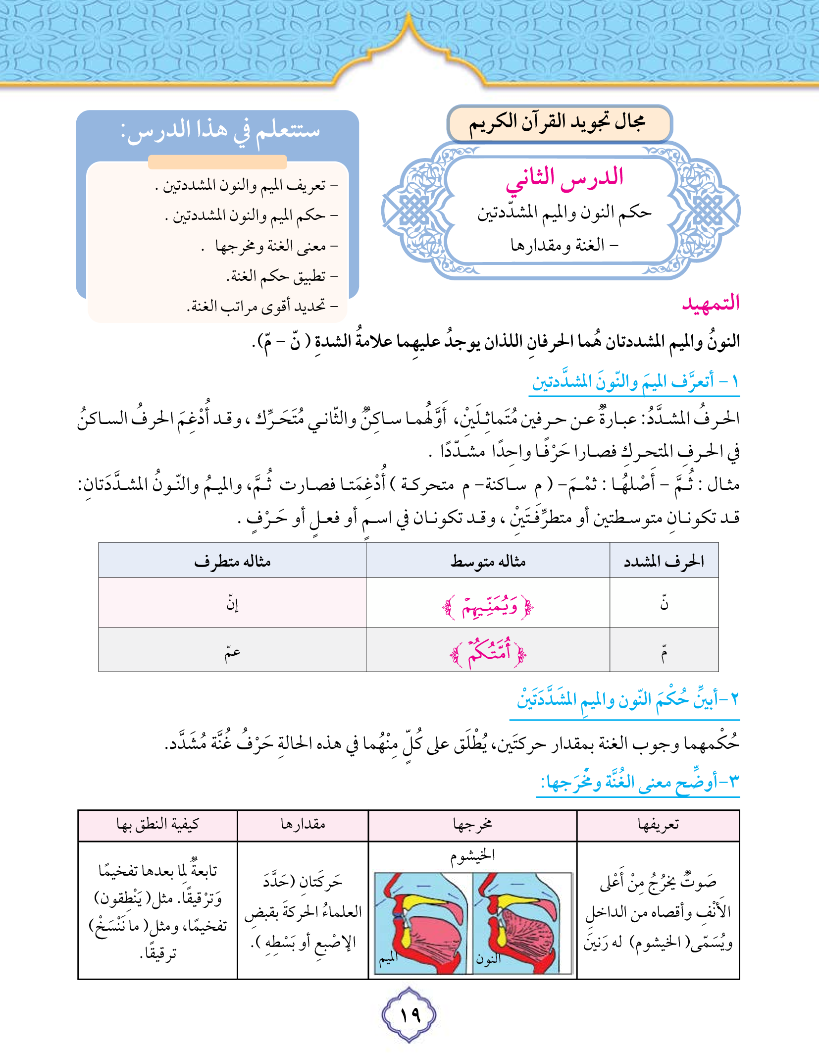 حكم النون والميم المشددتين - الغنة ومقدارها