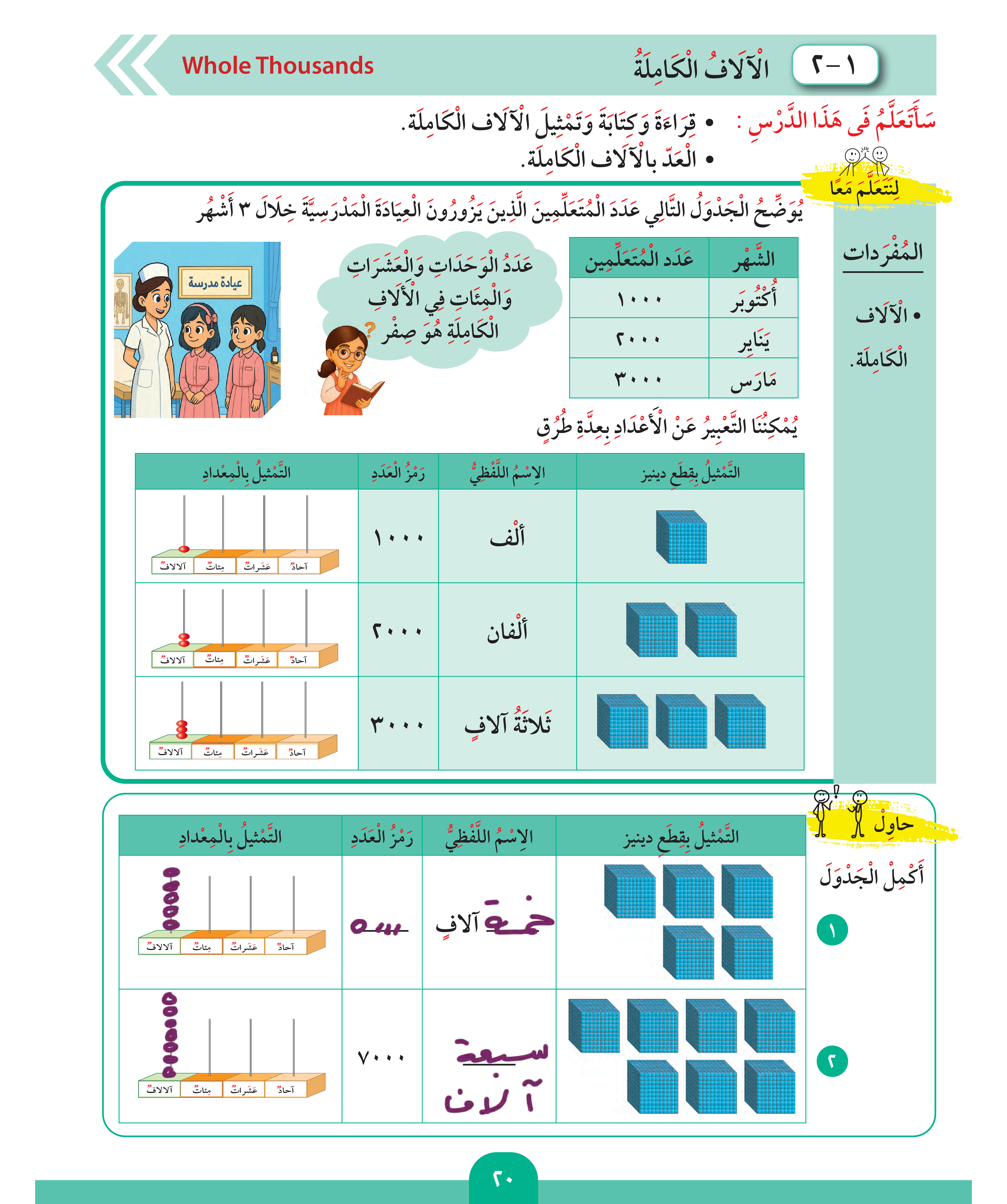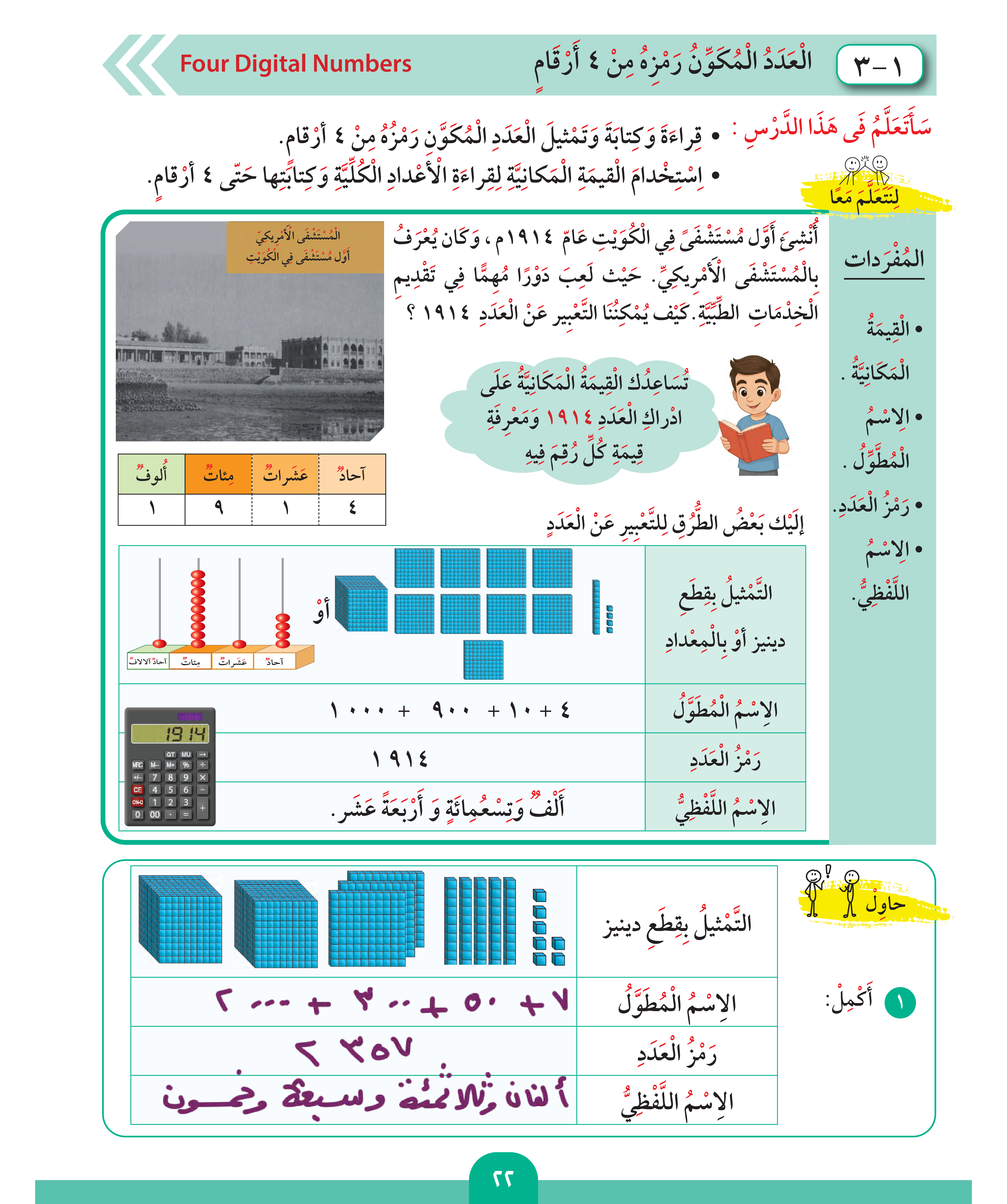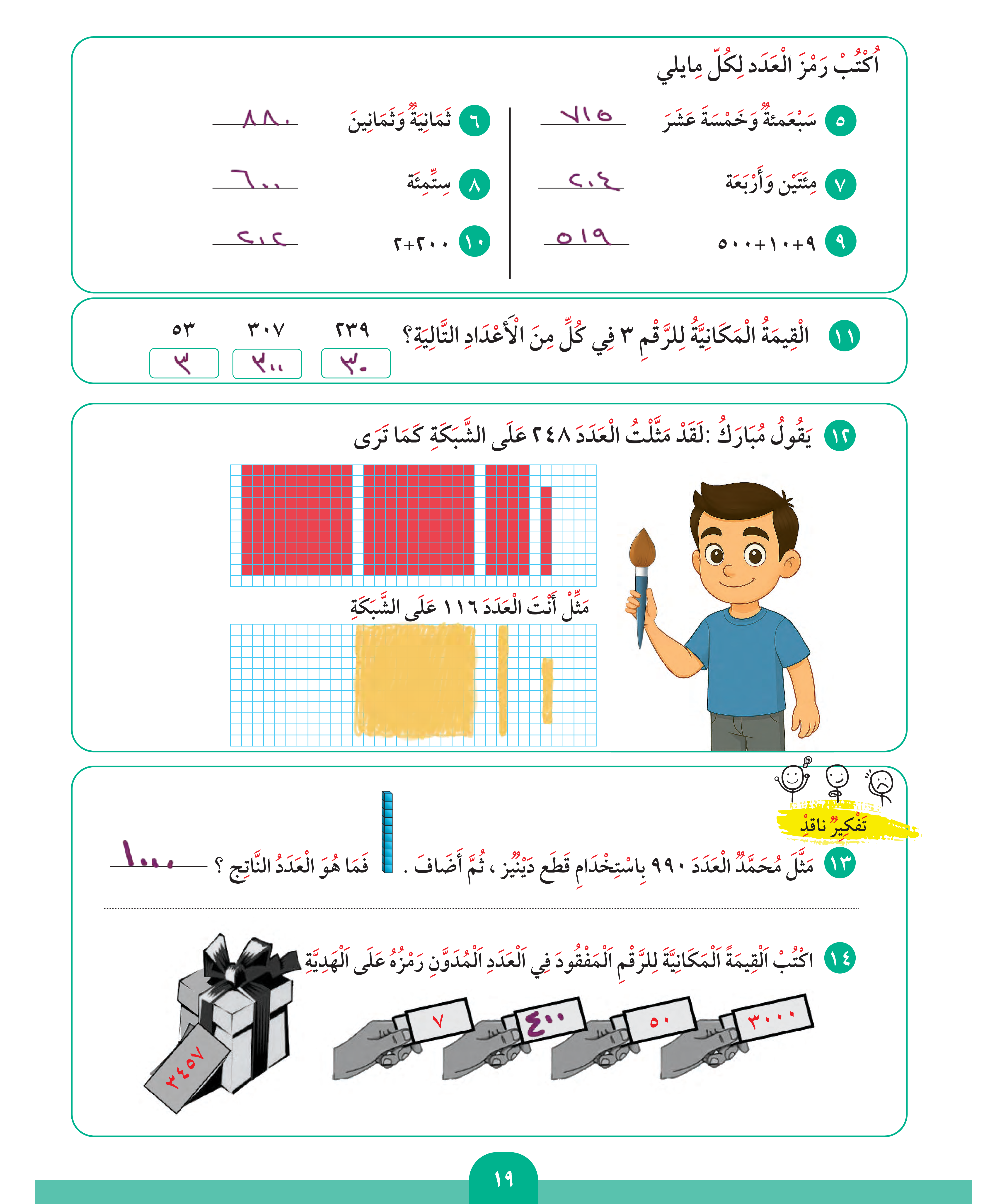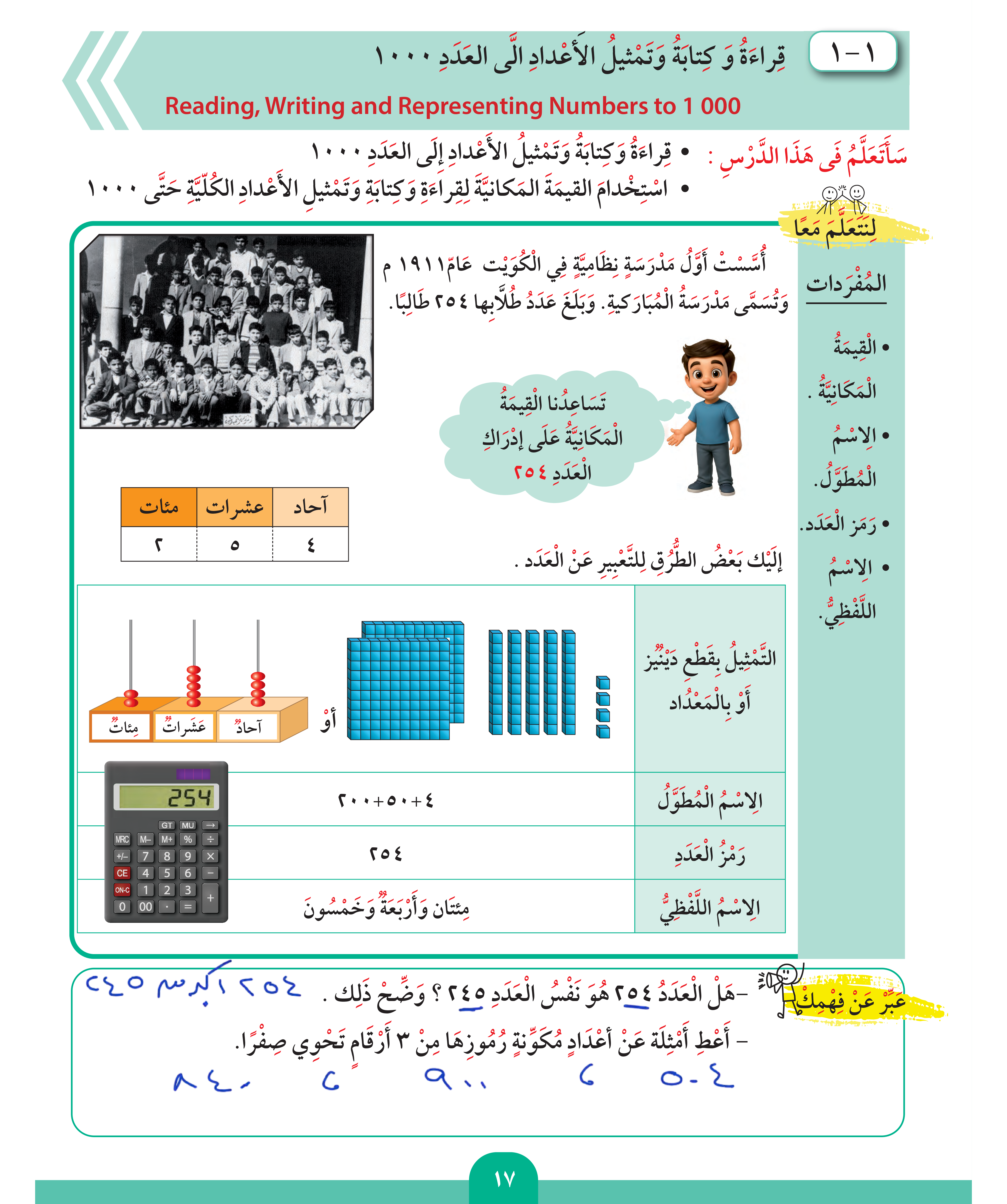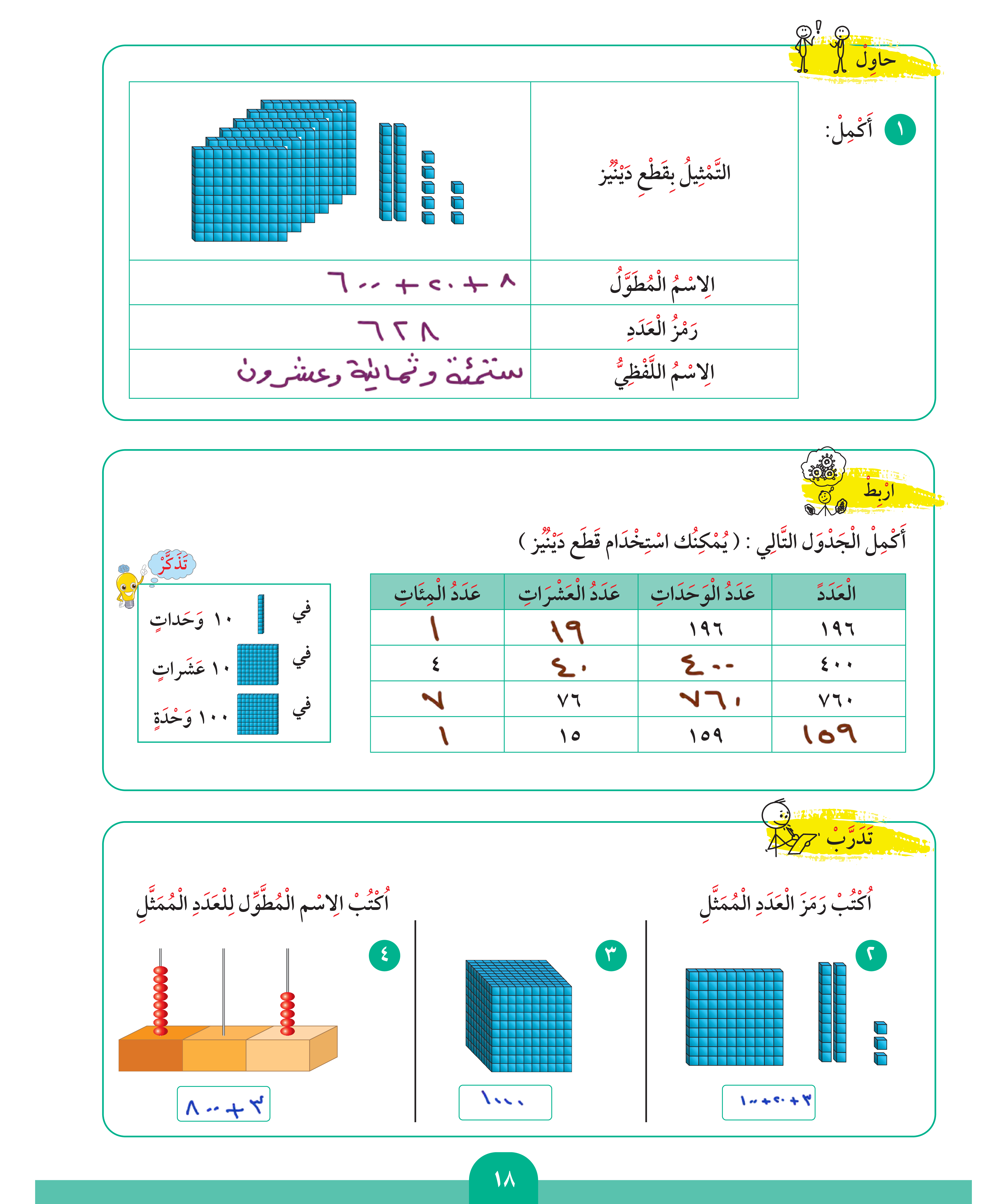 قراءة وكتابة وتمثيل الأعداد إلى العدد 1000