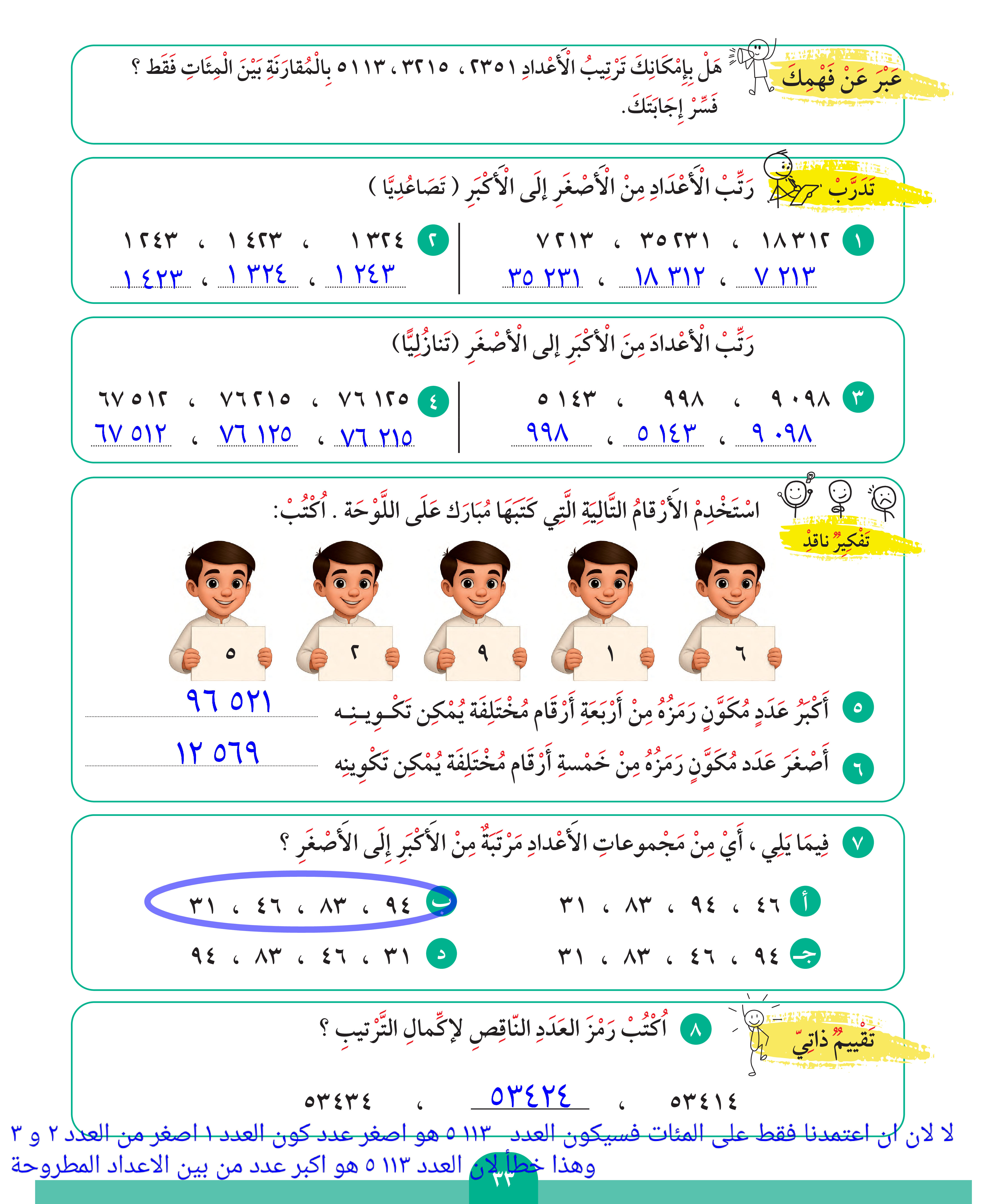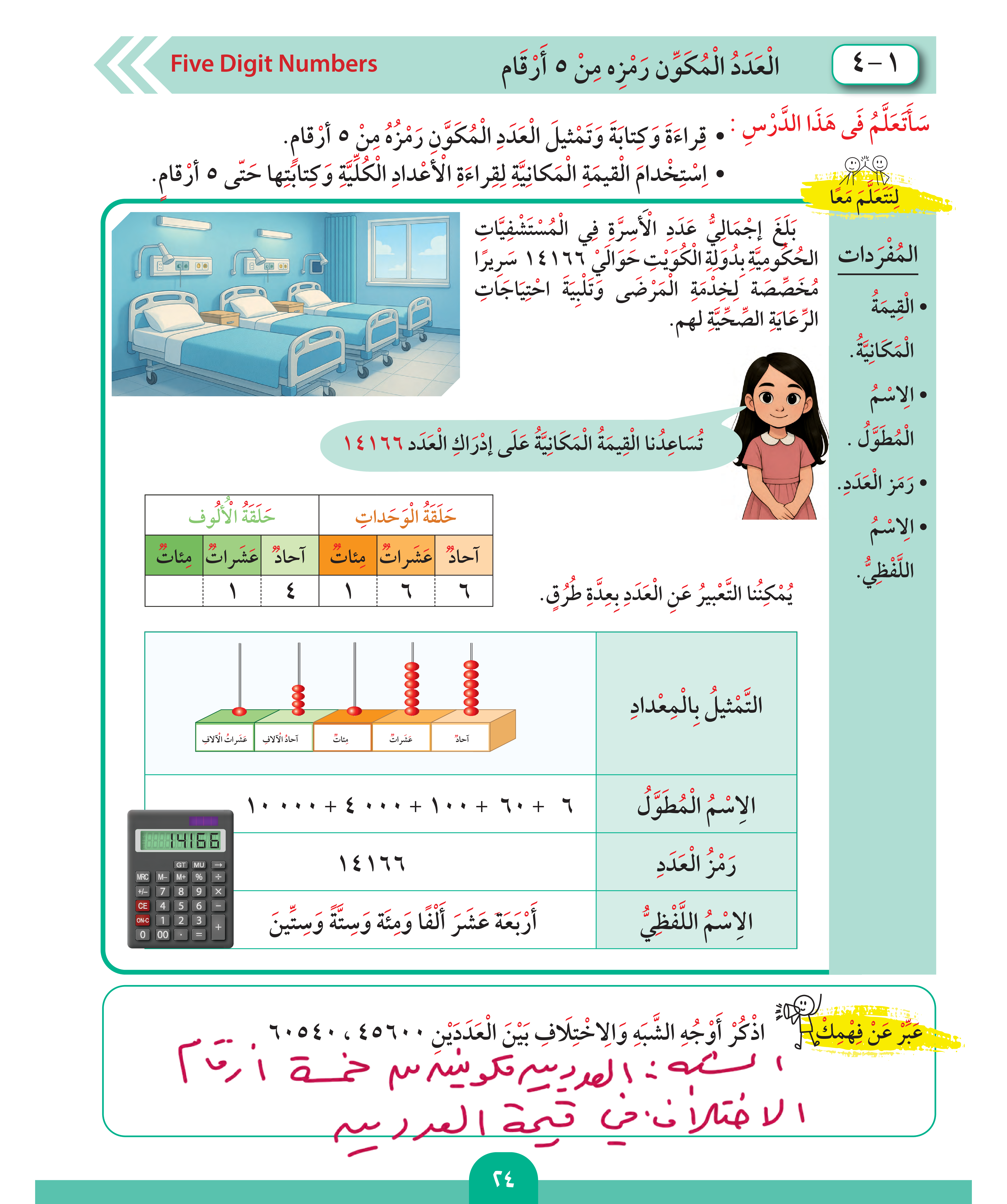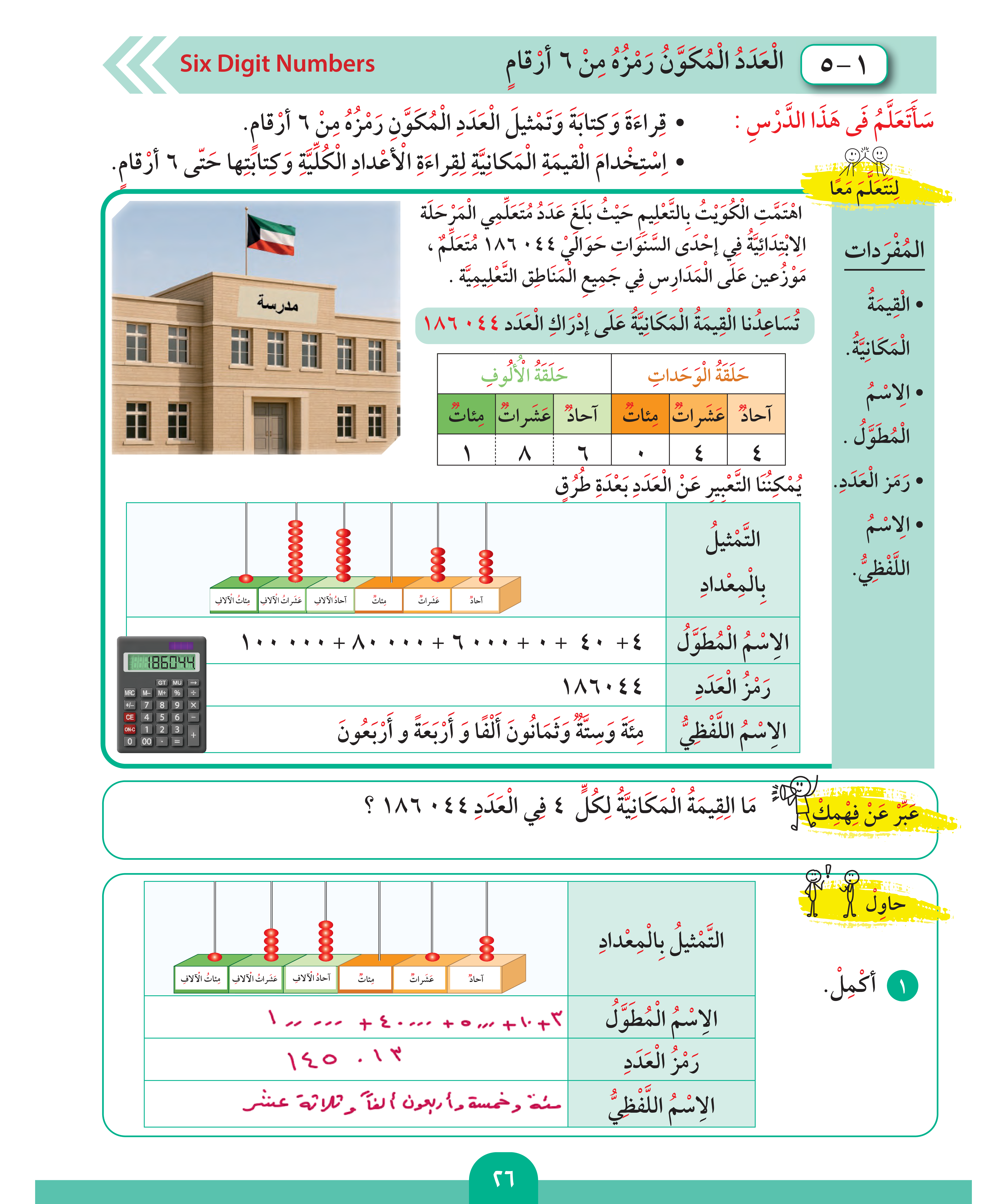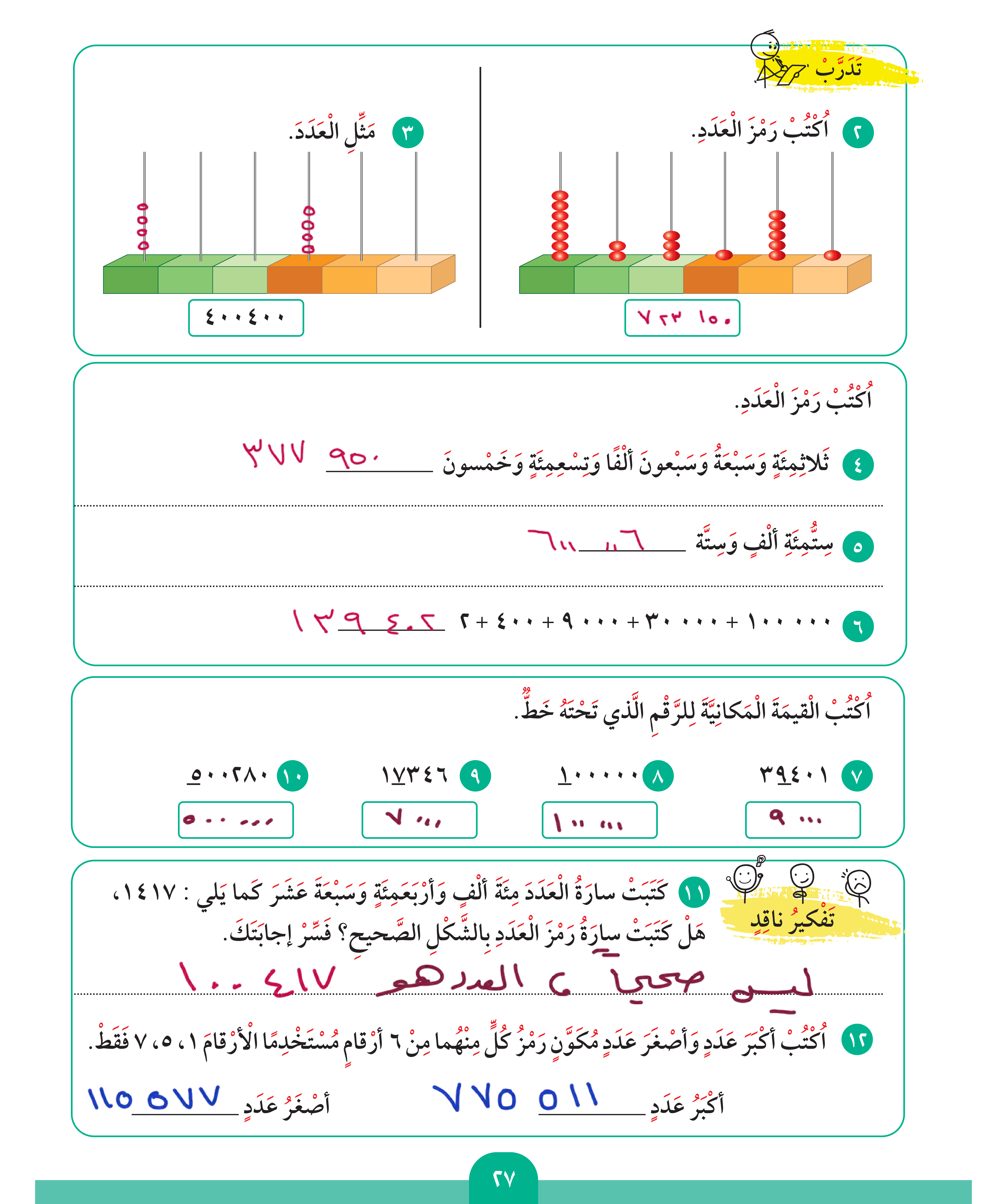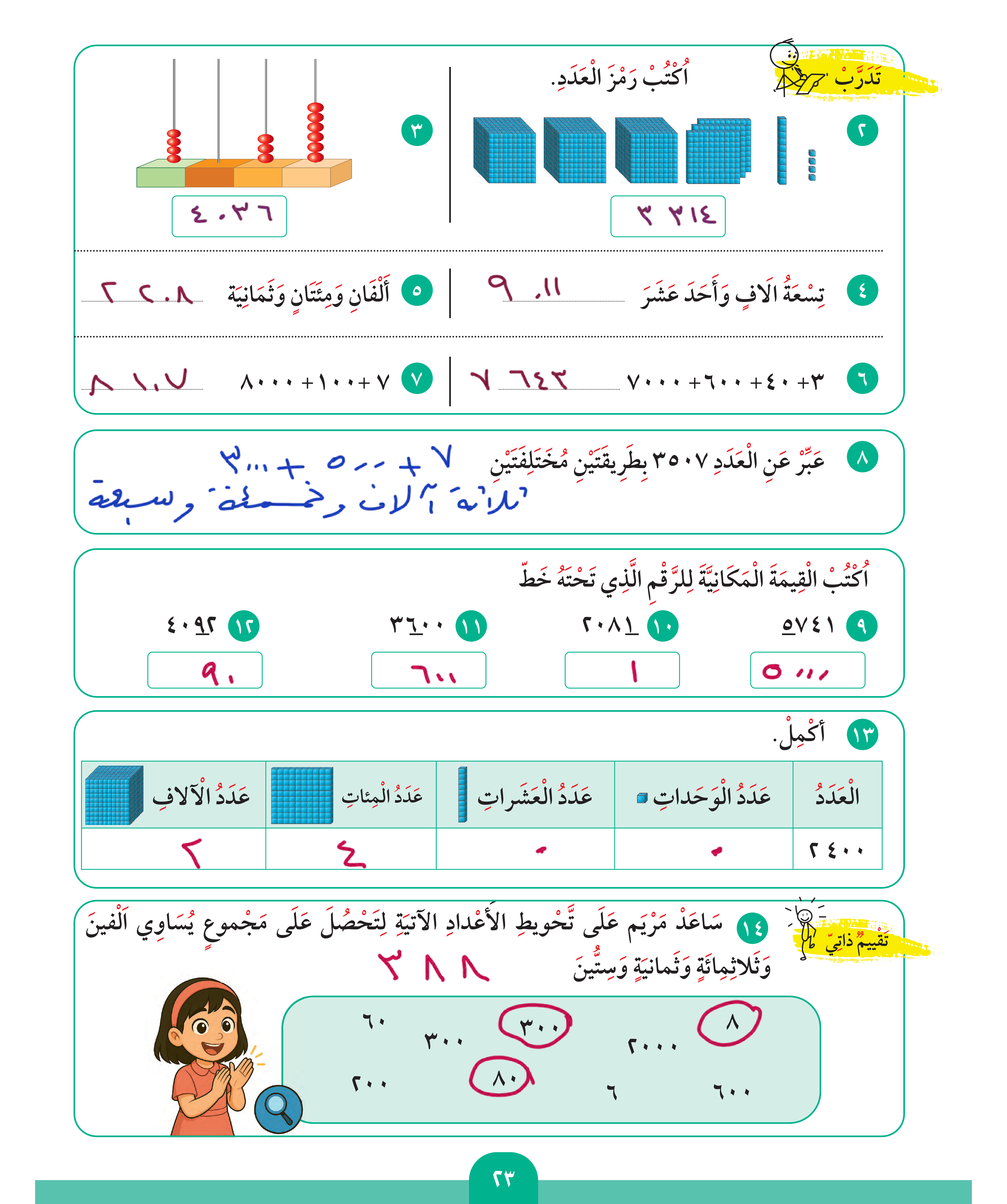 قراءة وكتابة وتمثيل الأعداد إلى العدد 1000