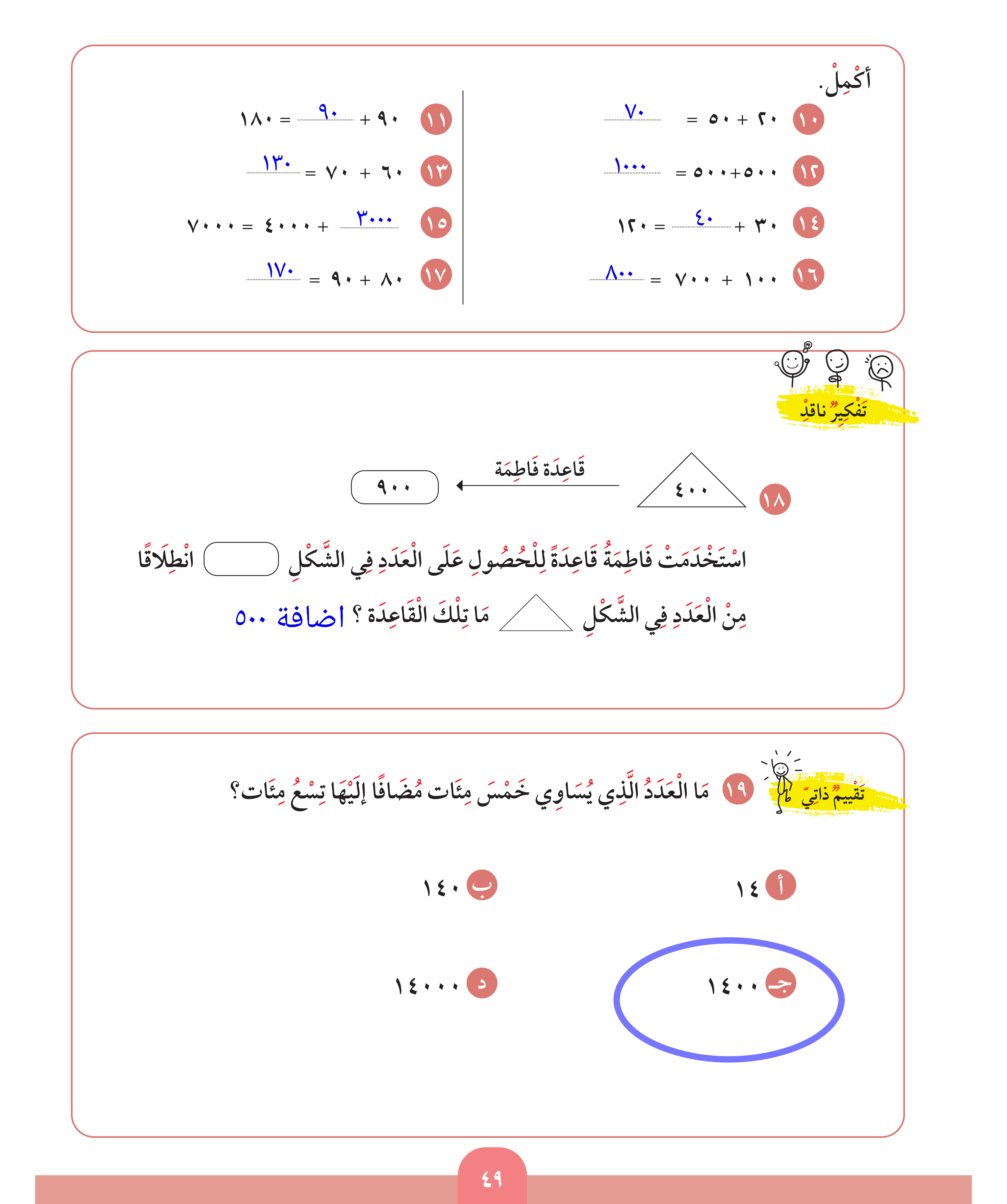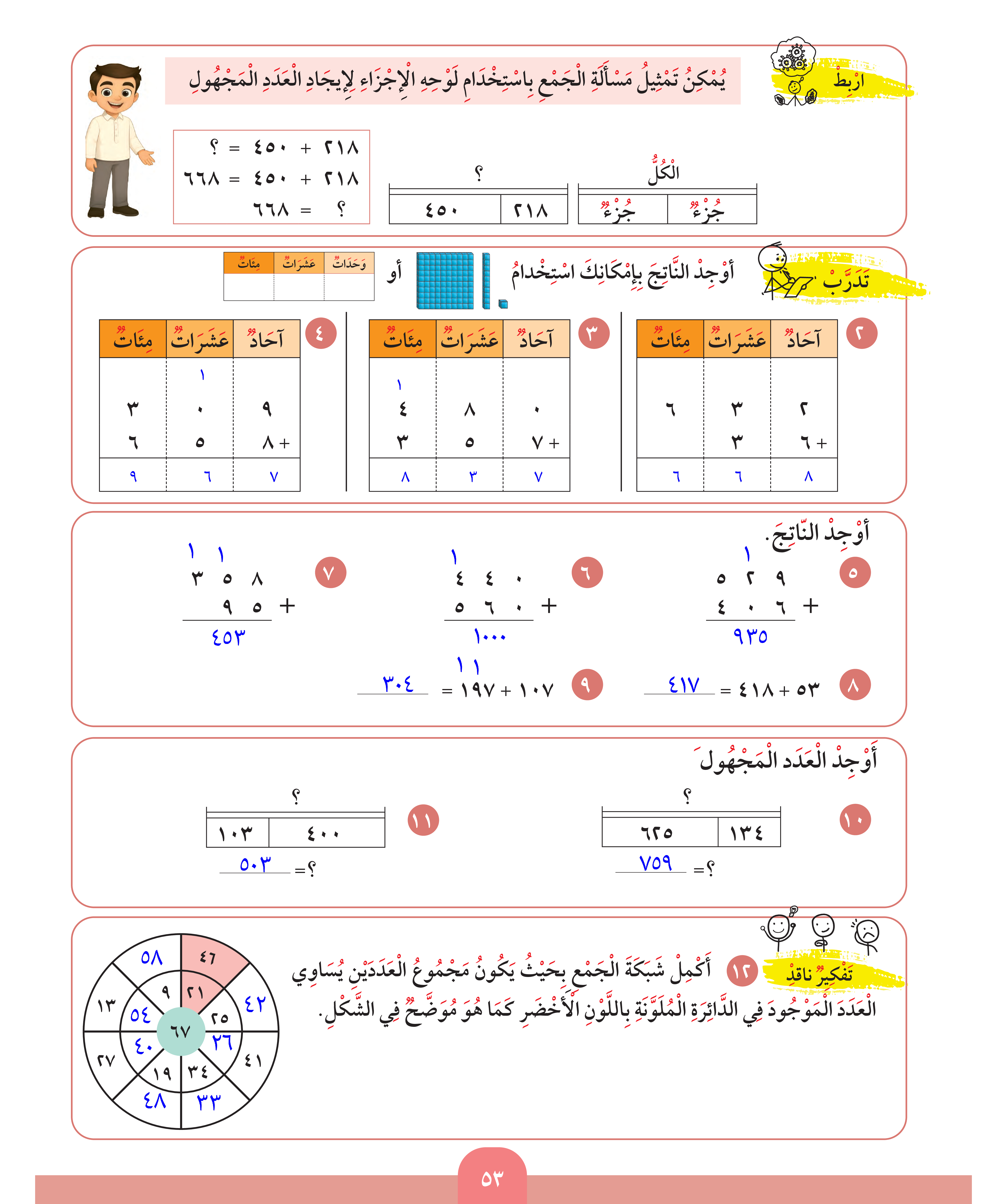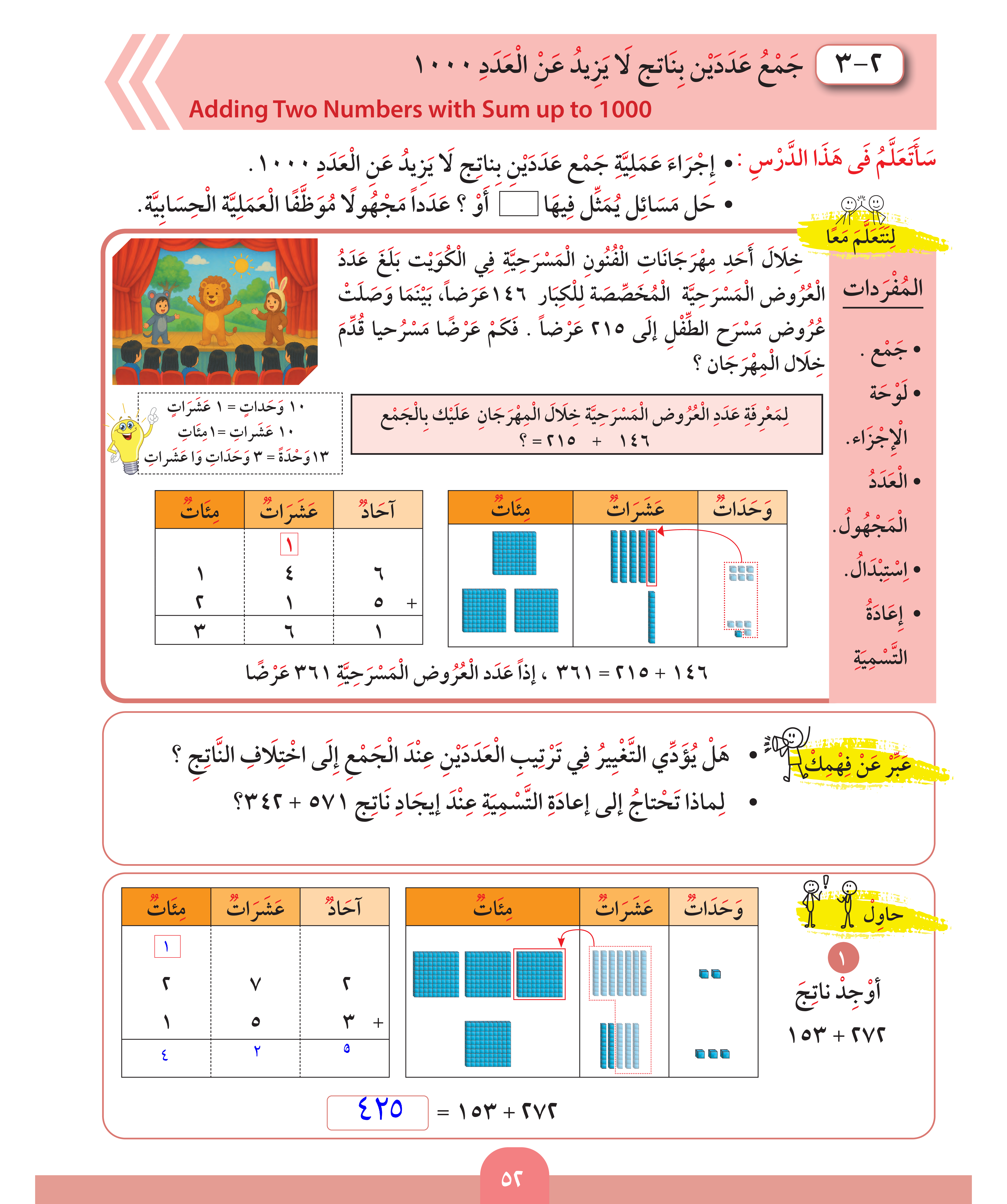 جمع عددين بناتج لا يزيد عن العدد 1000