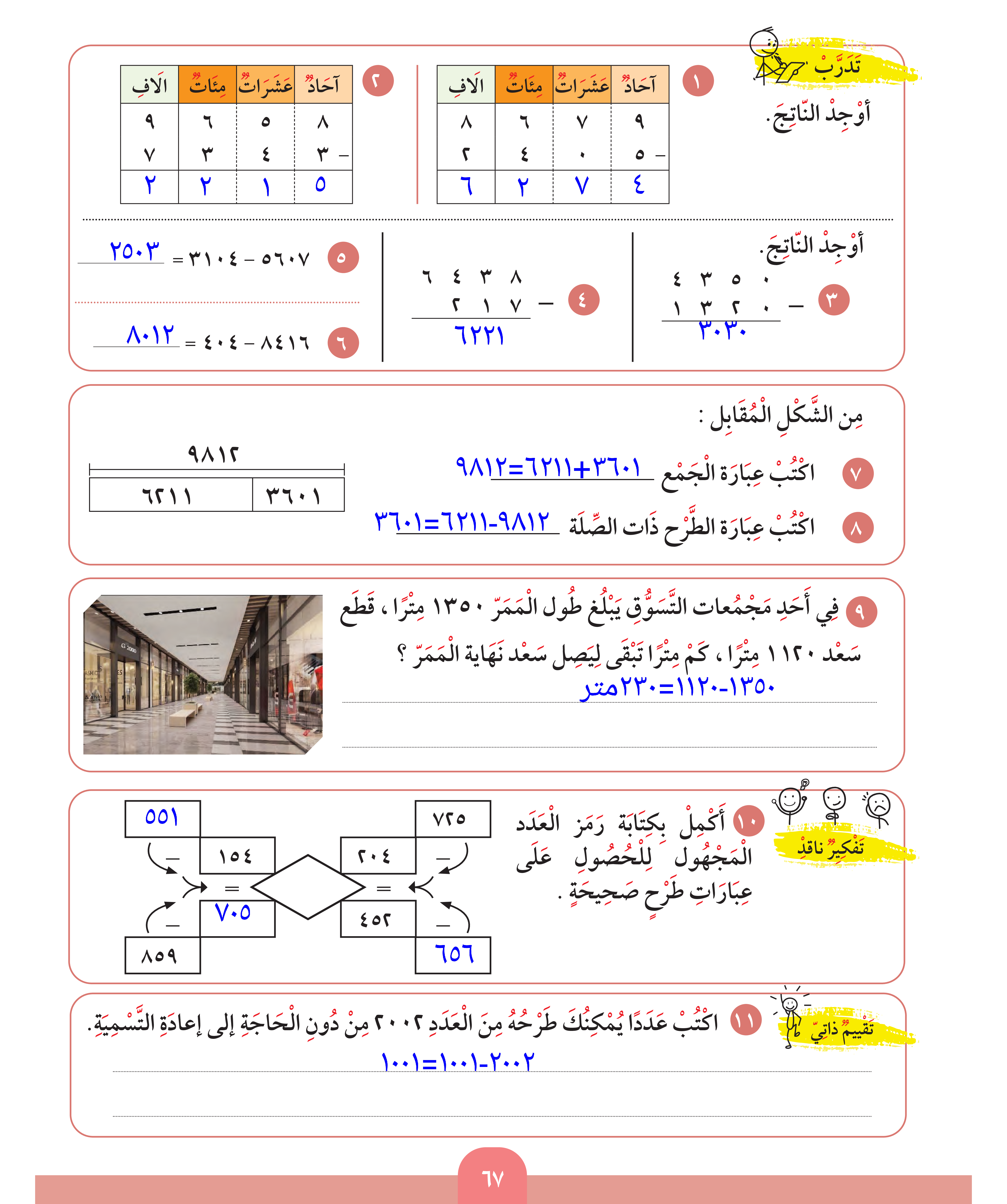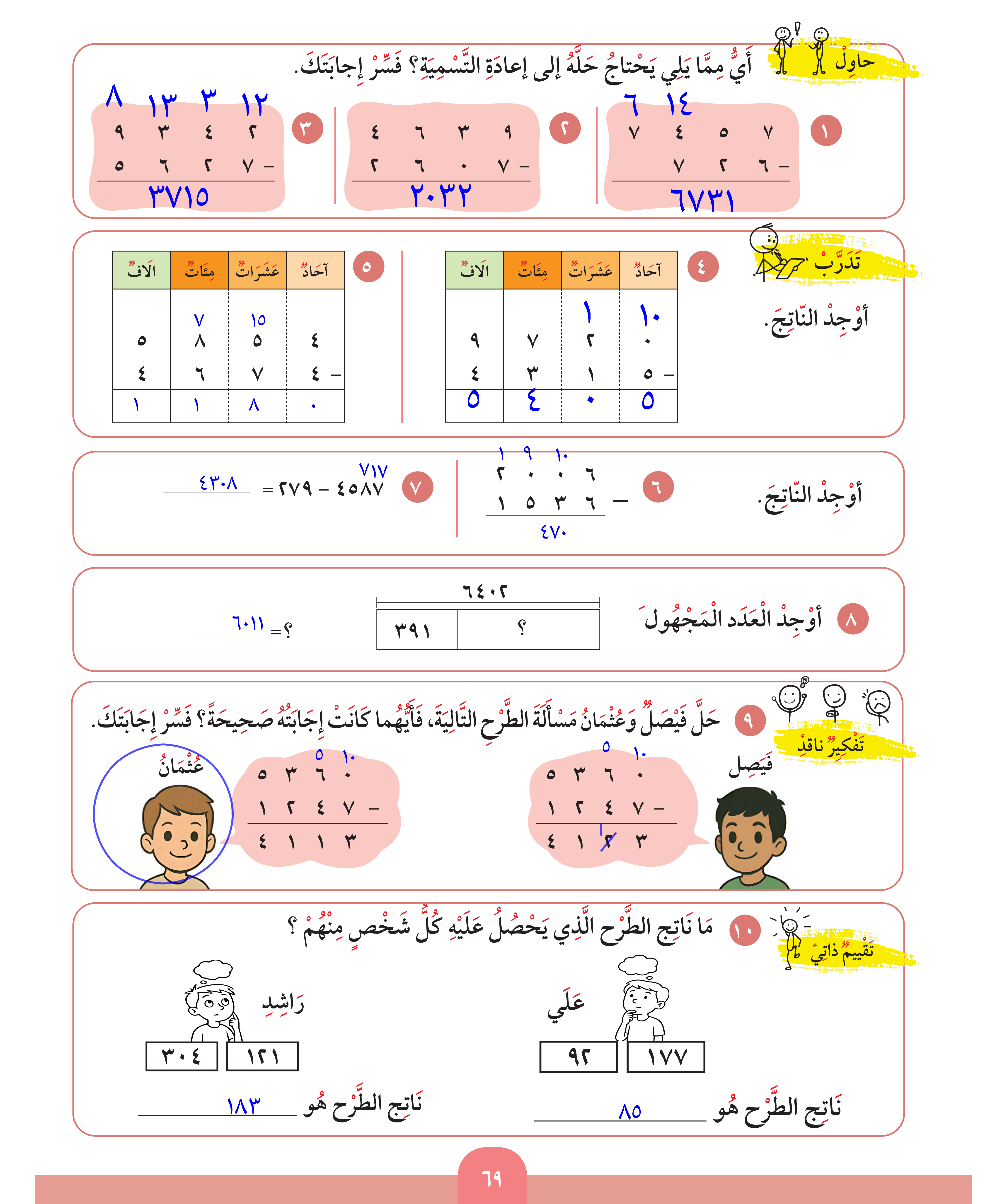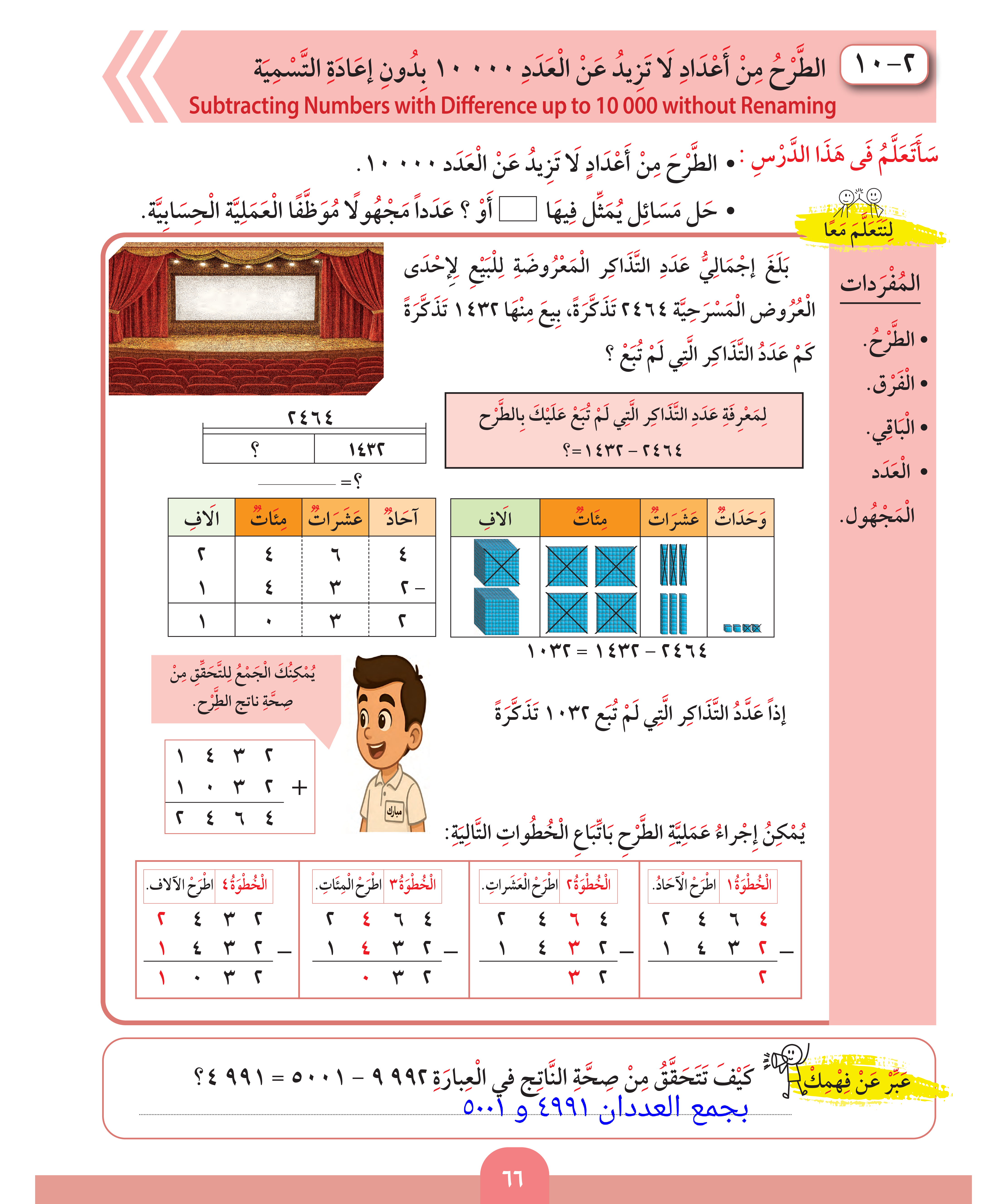 الطرح من أعداد لا تزيد عن العدد 10000 مع اعادة التسمية