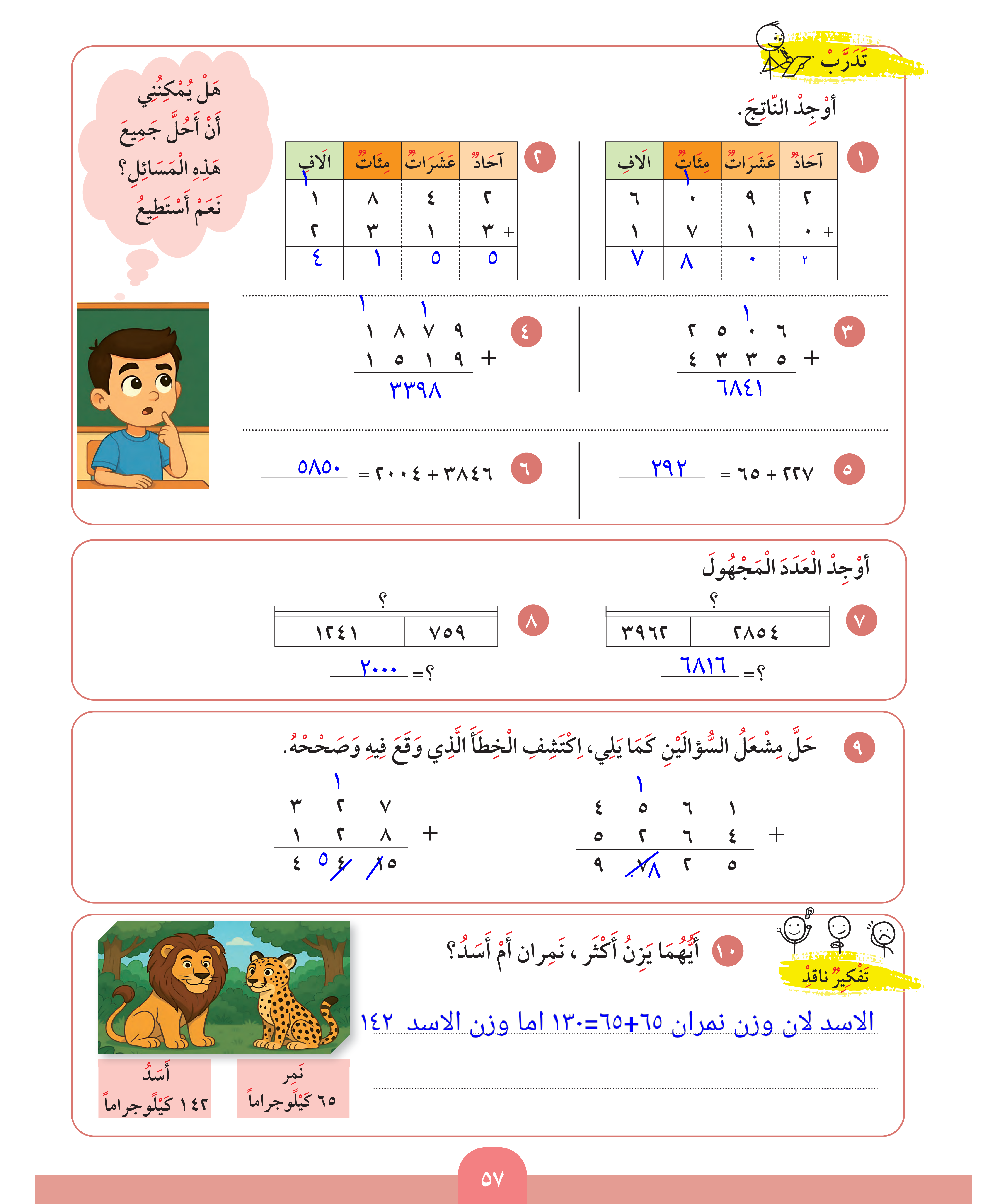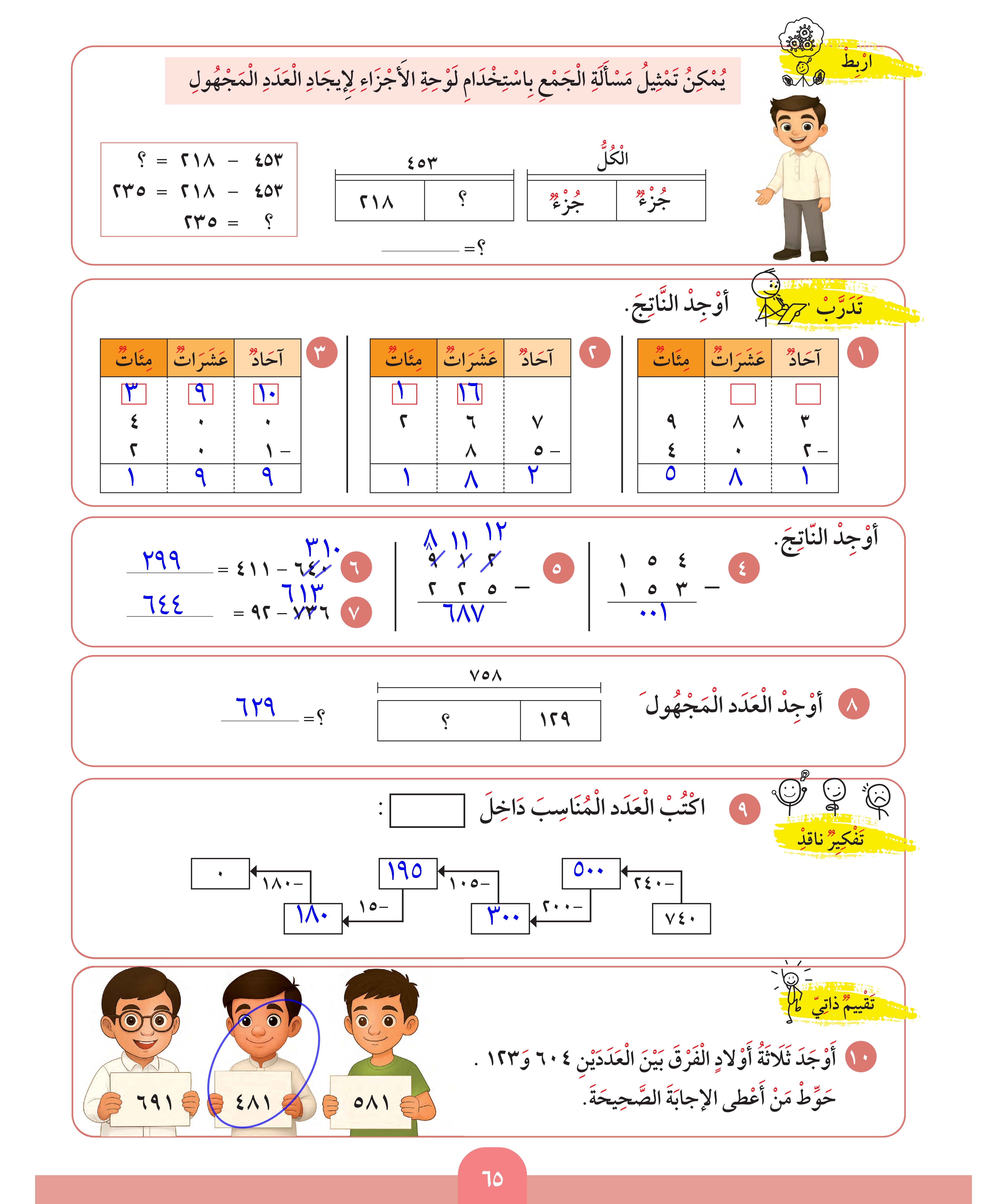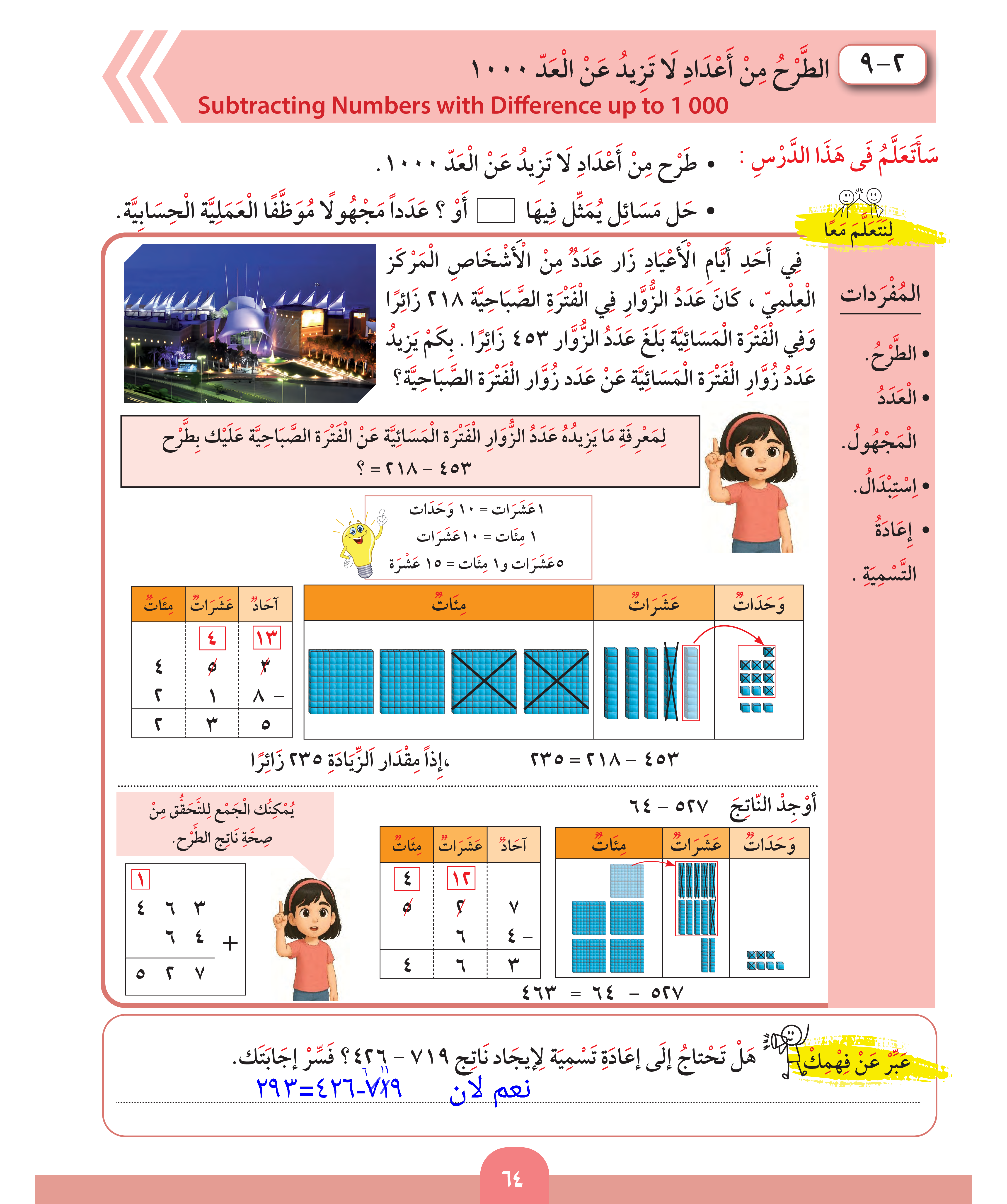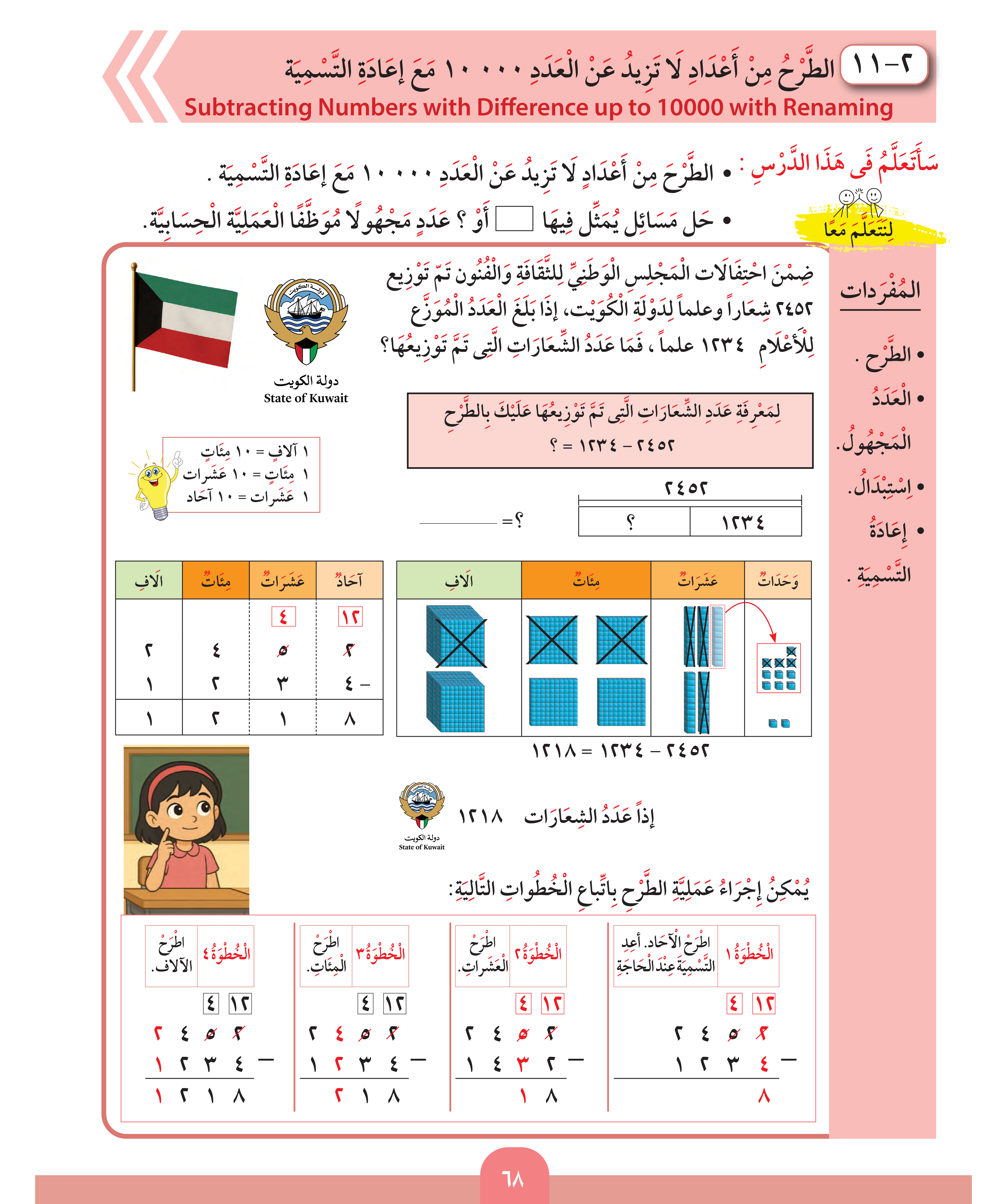 الطرح من أعداد لا تزيد عن العدد 10000 مع اعادة التسمية
