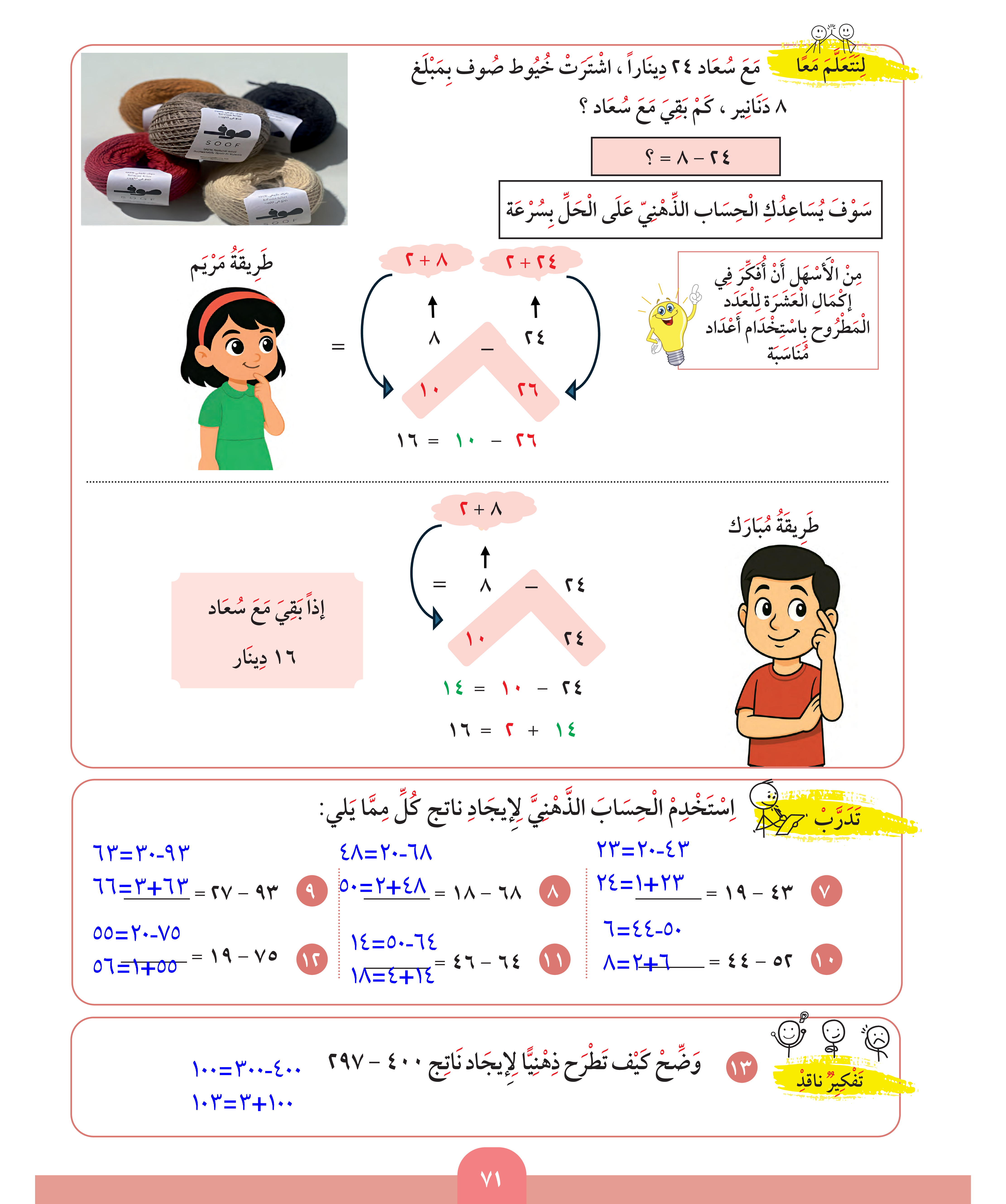 الطرح من أعداد لا تزيد عن العدد 10000 بدون اعادة التسمية