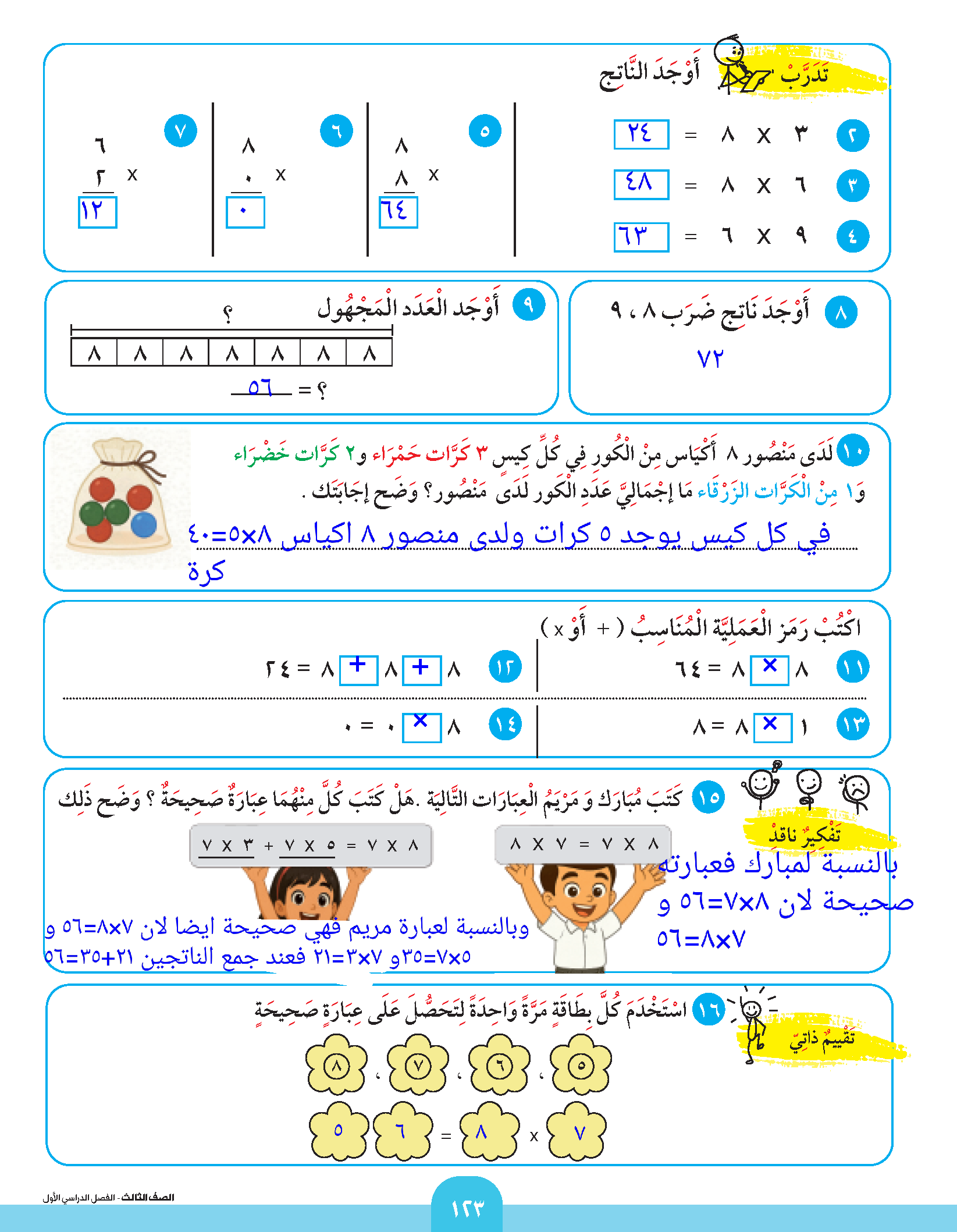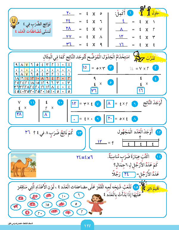 ضرب عدد مكون رمزه من رقم واحد في عدد مكون رمزه من رقمين مع اعادة التسمية