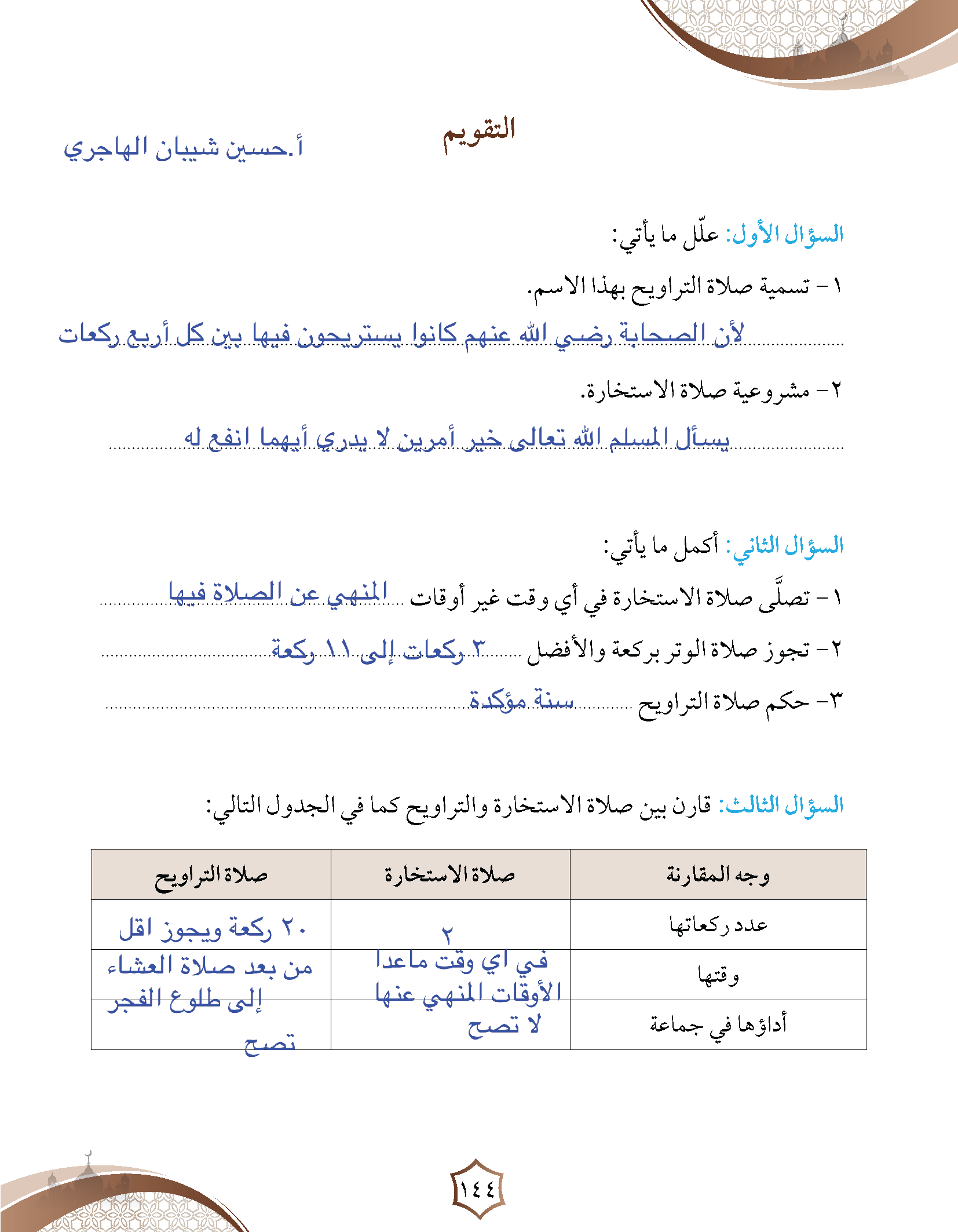 صلاة التطوع (2) (التراويح - الوتر - الاستخارة)