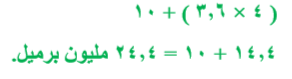 5. إذا أنتجت كل من الكويت والإمارات العربية المتحدة والصين الكمية نفسها من النفط في أحد الأيام ولتكن ٣,٦ مليون برميل ، وأنتجت المملكة العربية السعودية في اليوم نفسه ۱۰ ملايين برميل ، فاحسب إجمالي إنتاج الدول الأربع في هذا اليوم .