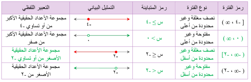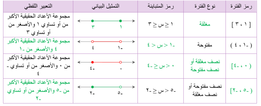 3. اكتب الفترة التي تعبّر عن مجموعة الأعداد الحقيقية الأكبر من -3