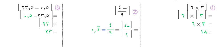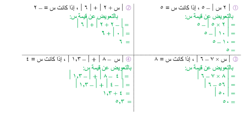 أوجد ناتج كل مما يلي مستخدماً خواص القيمة المطلقة: