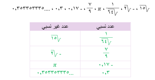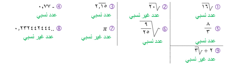 حدد ما إذا كان كل عدد مما يلي عدداً نسبياً أو غير نسبي: