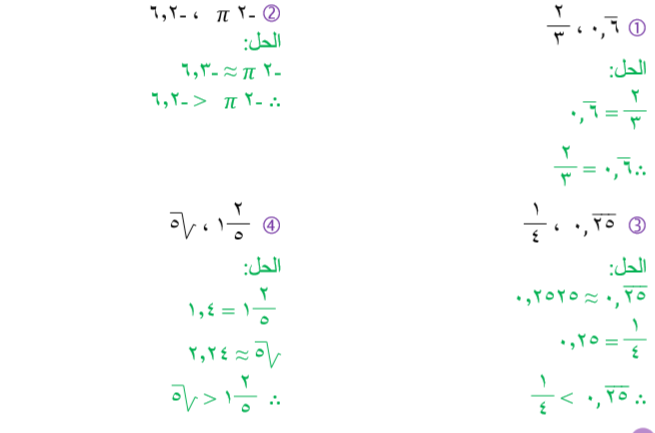 1- قارن بين العددين في كل مما يلي: