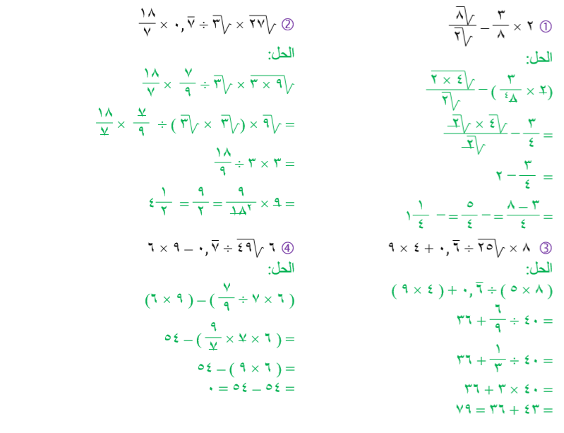 3. أوجد ناتج كل مما يل في أبسط صورة :