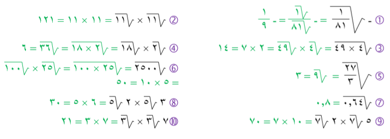 أوجد ناتج كلاً مما يلي موظفاً خواص الجذور التربيعية: