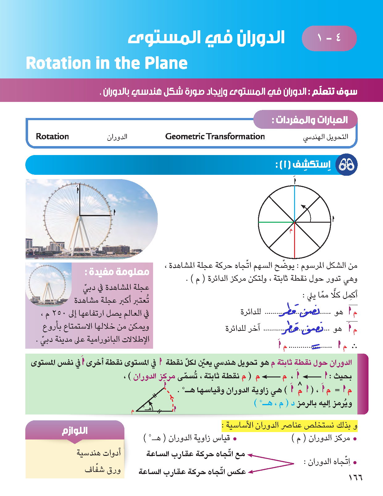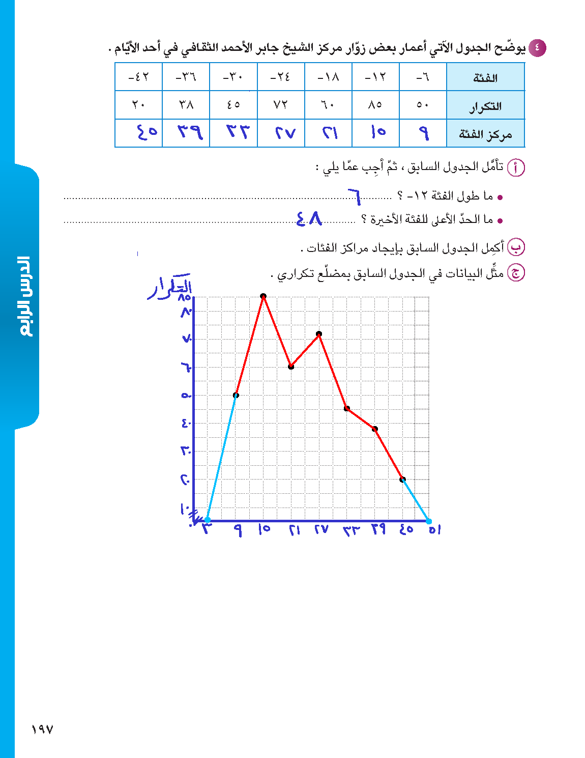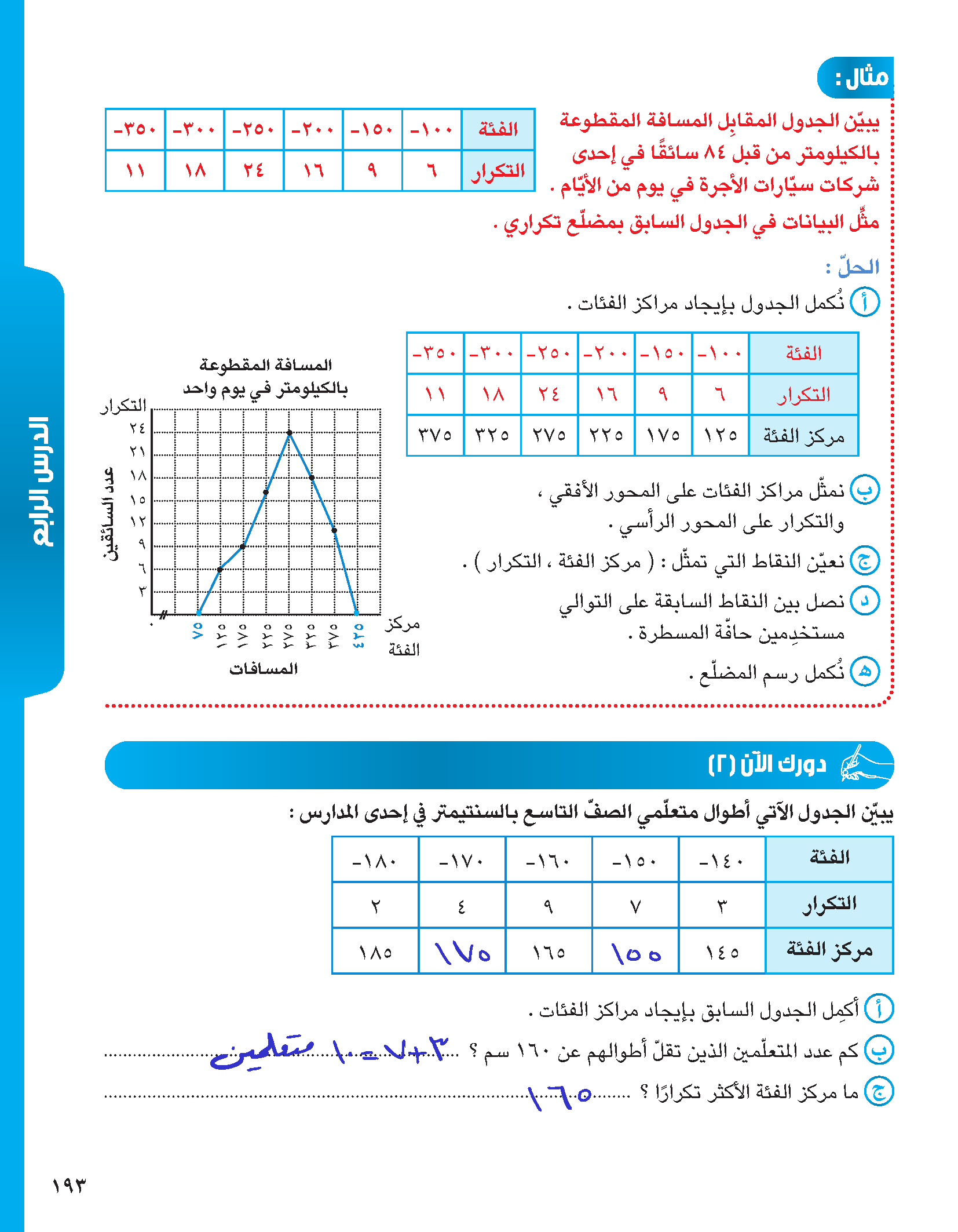 احداثيا نقطة منتصف قطعة مستقيمة في المستوى الاحداثي