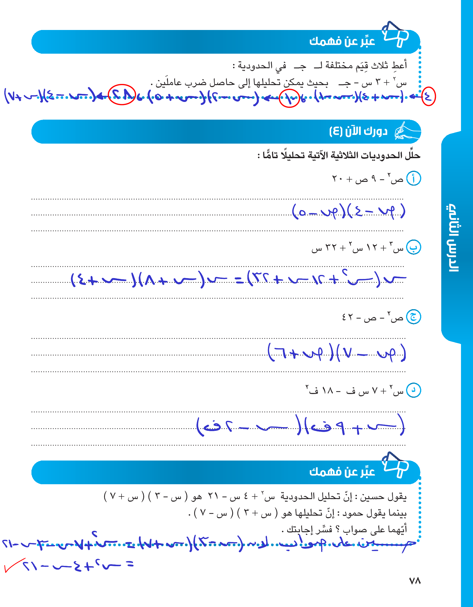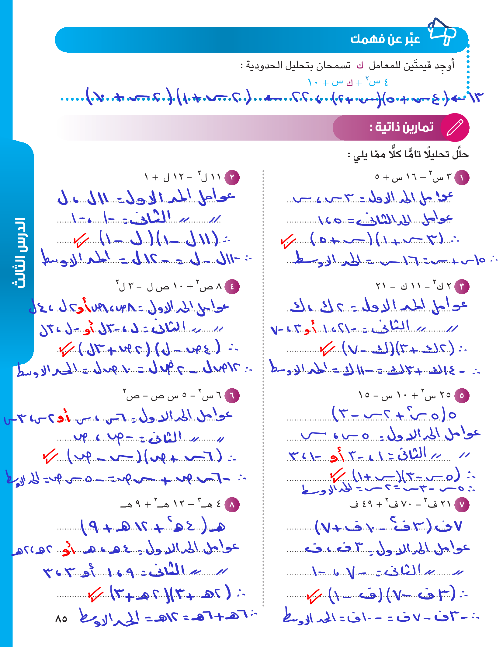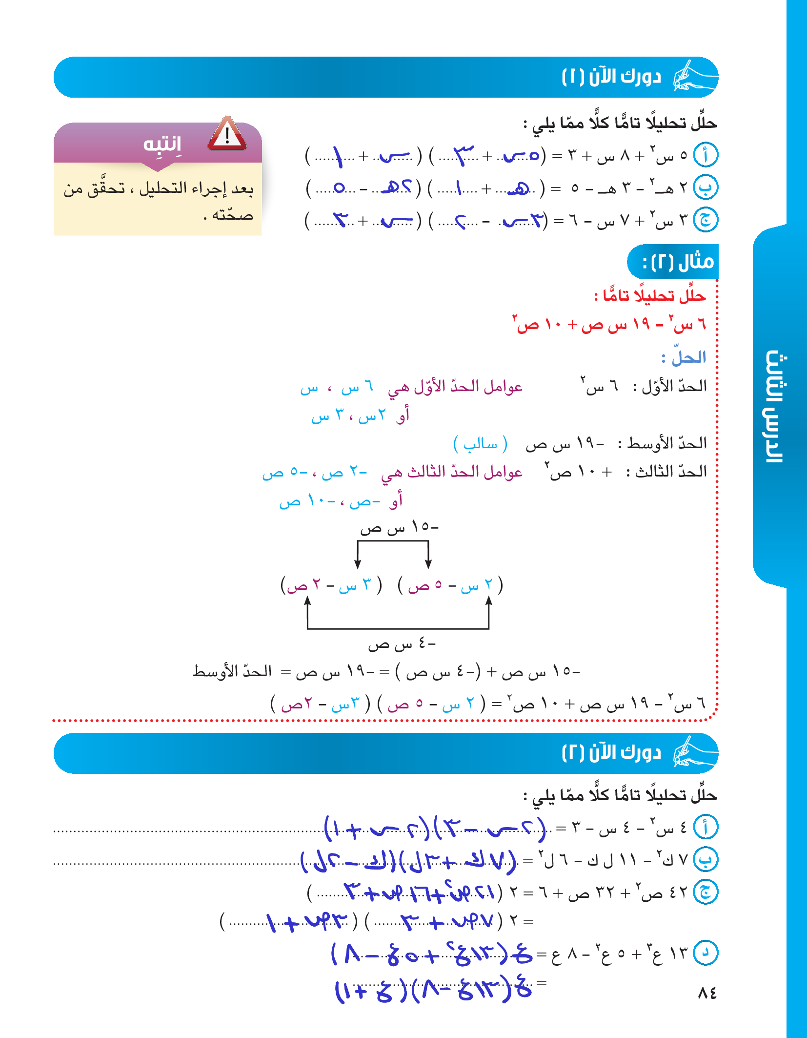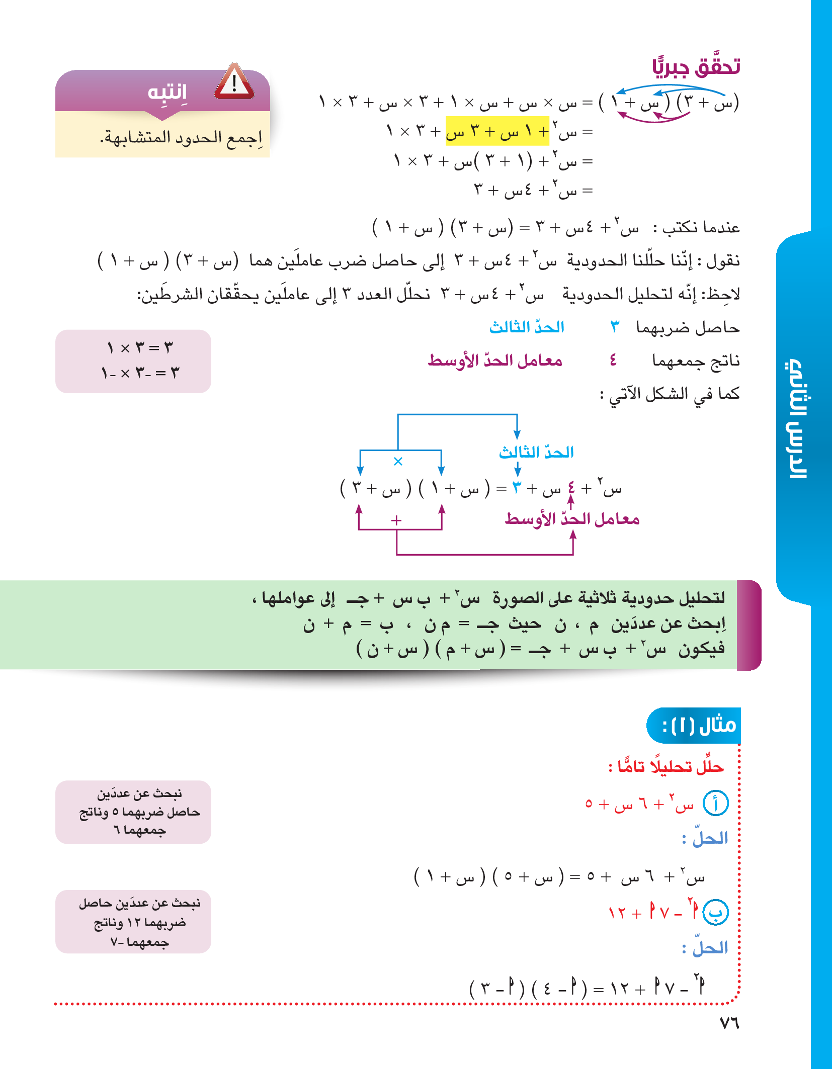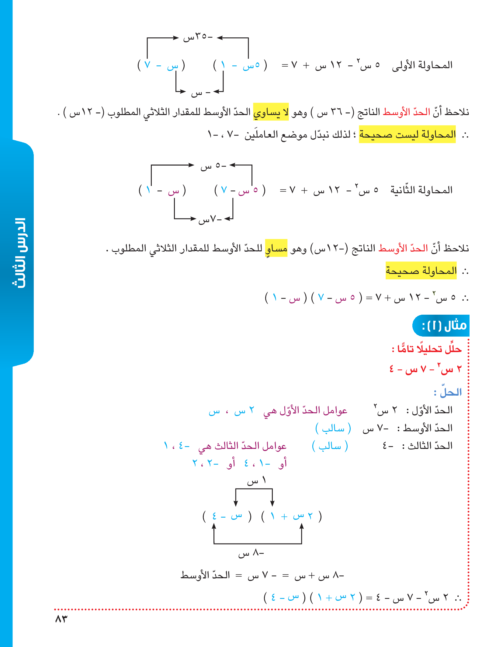 تحليل الحدودية الثلاثية: س2 + ب س + جـ