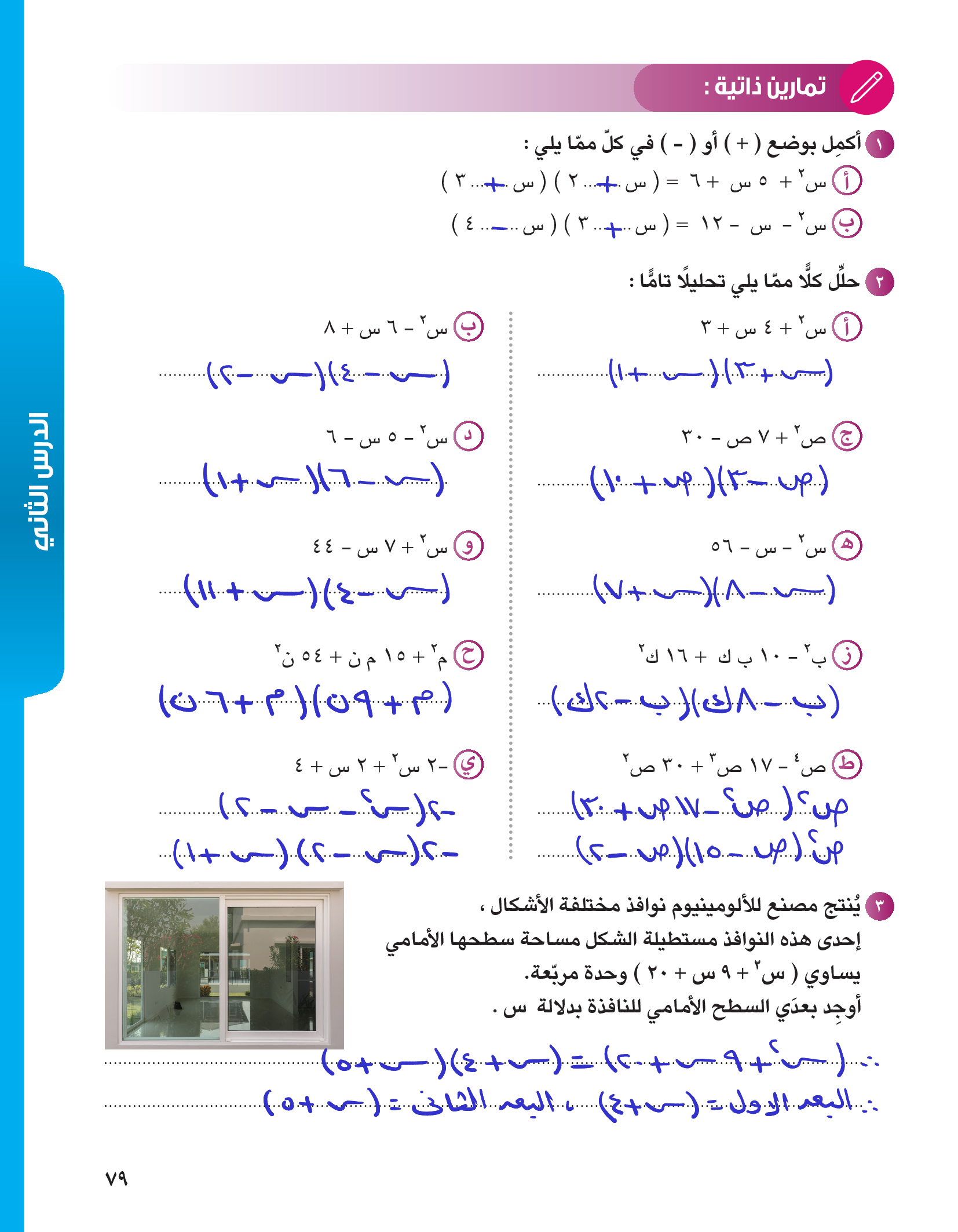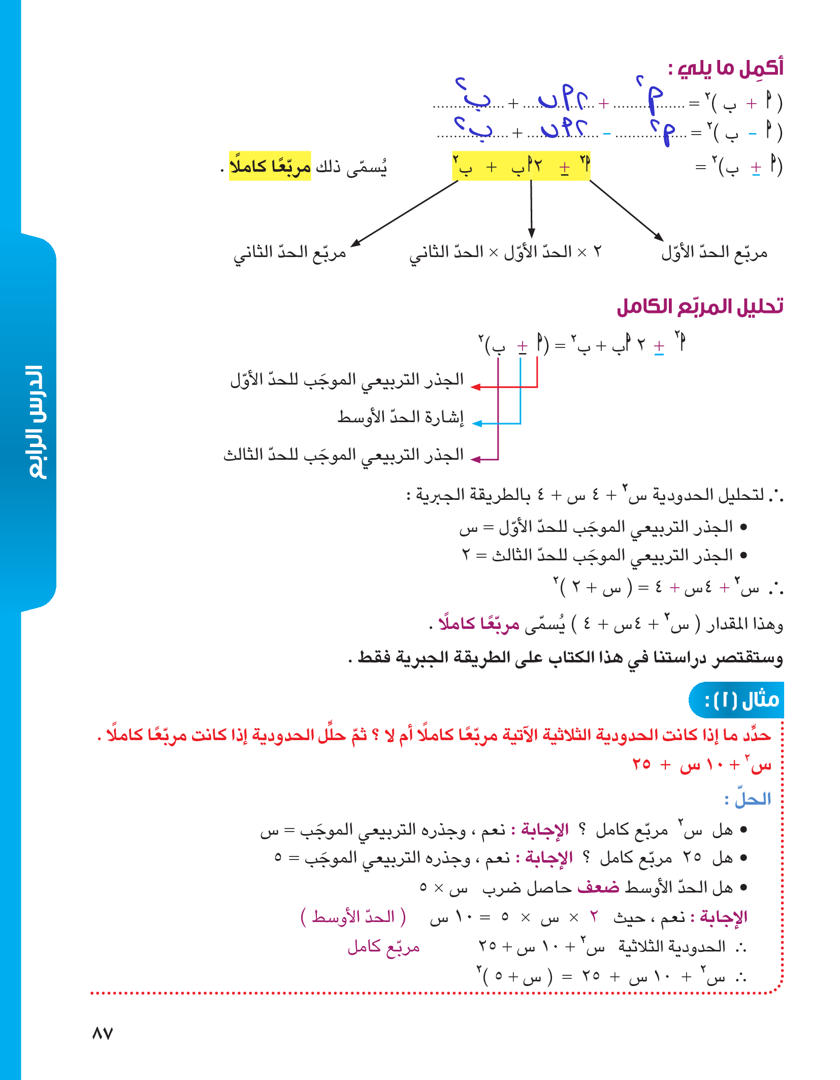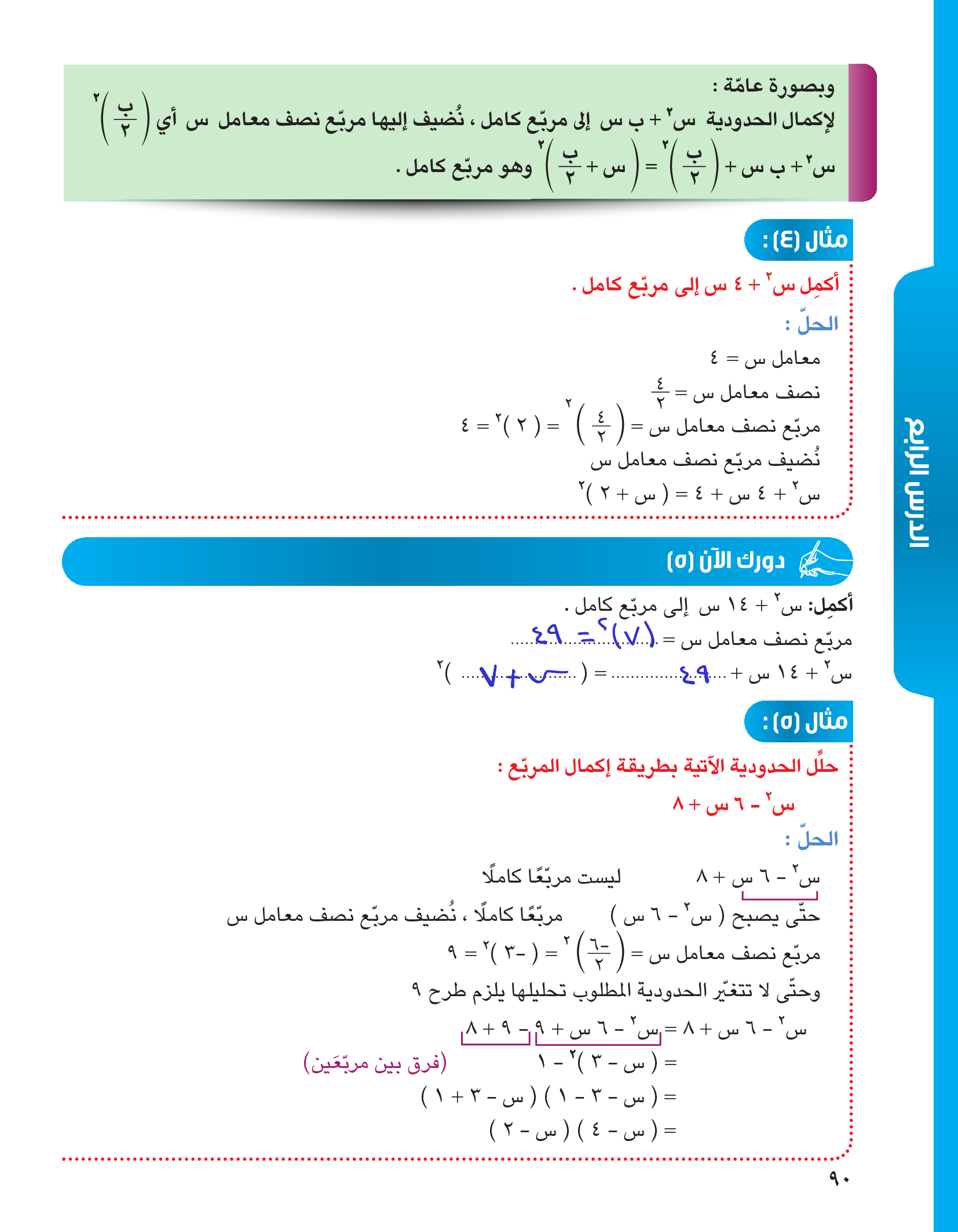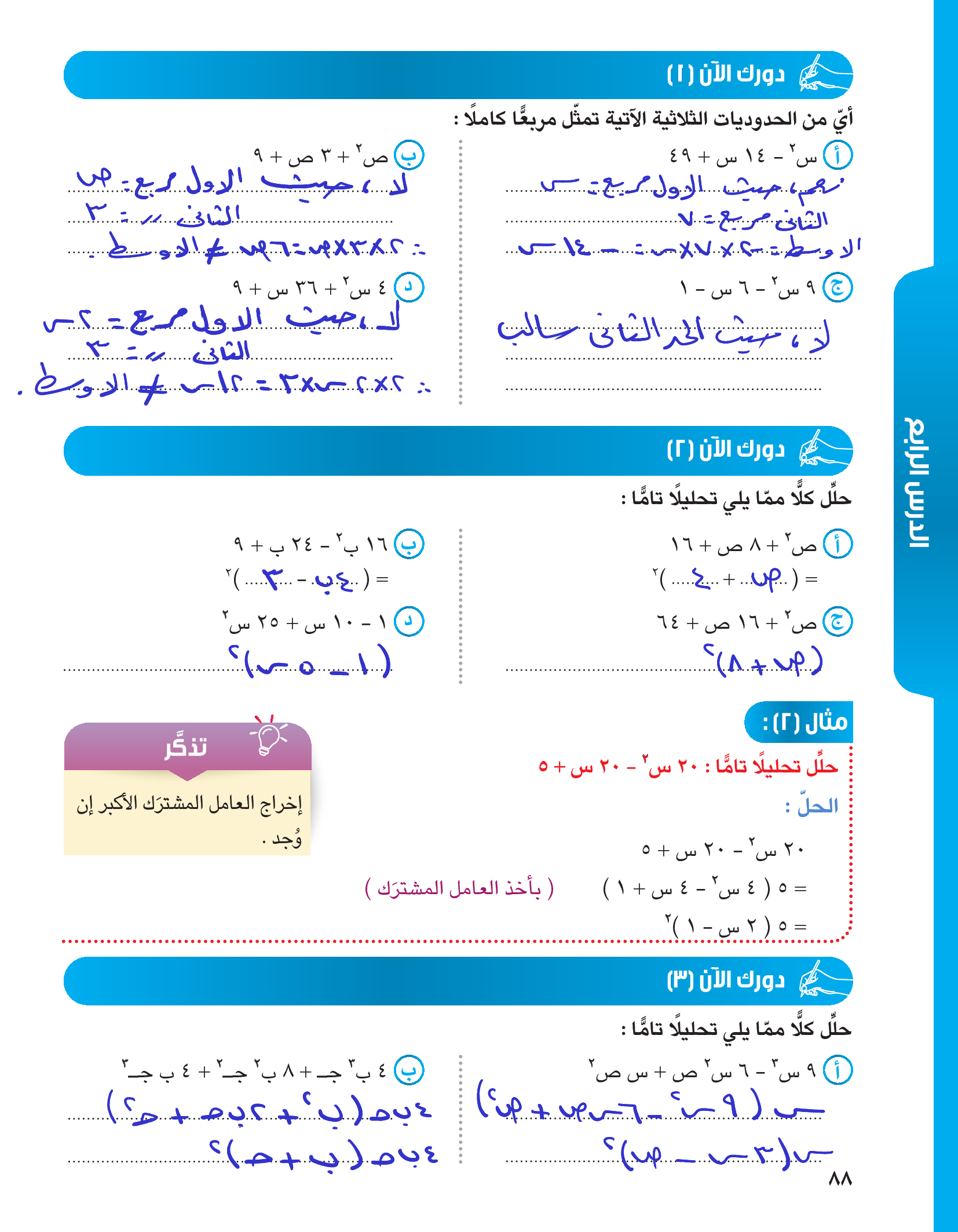تحليل الحدودية الثلاثية: س2 + ب س + جـ