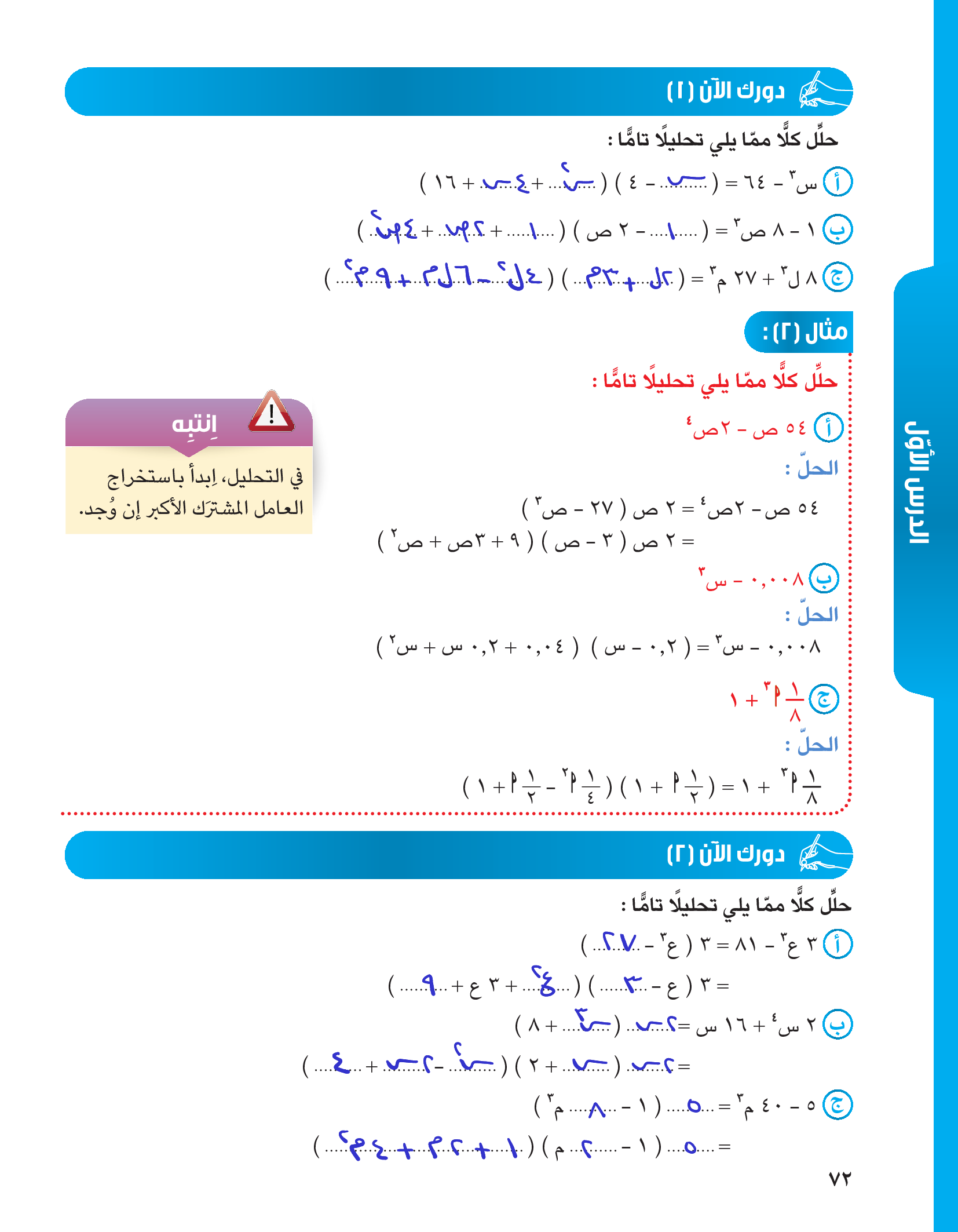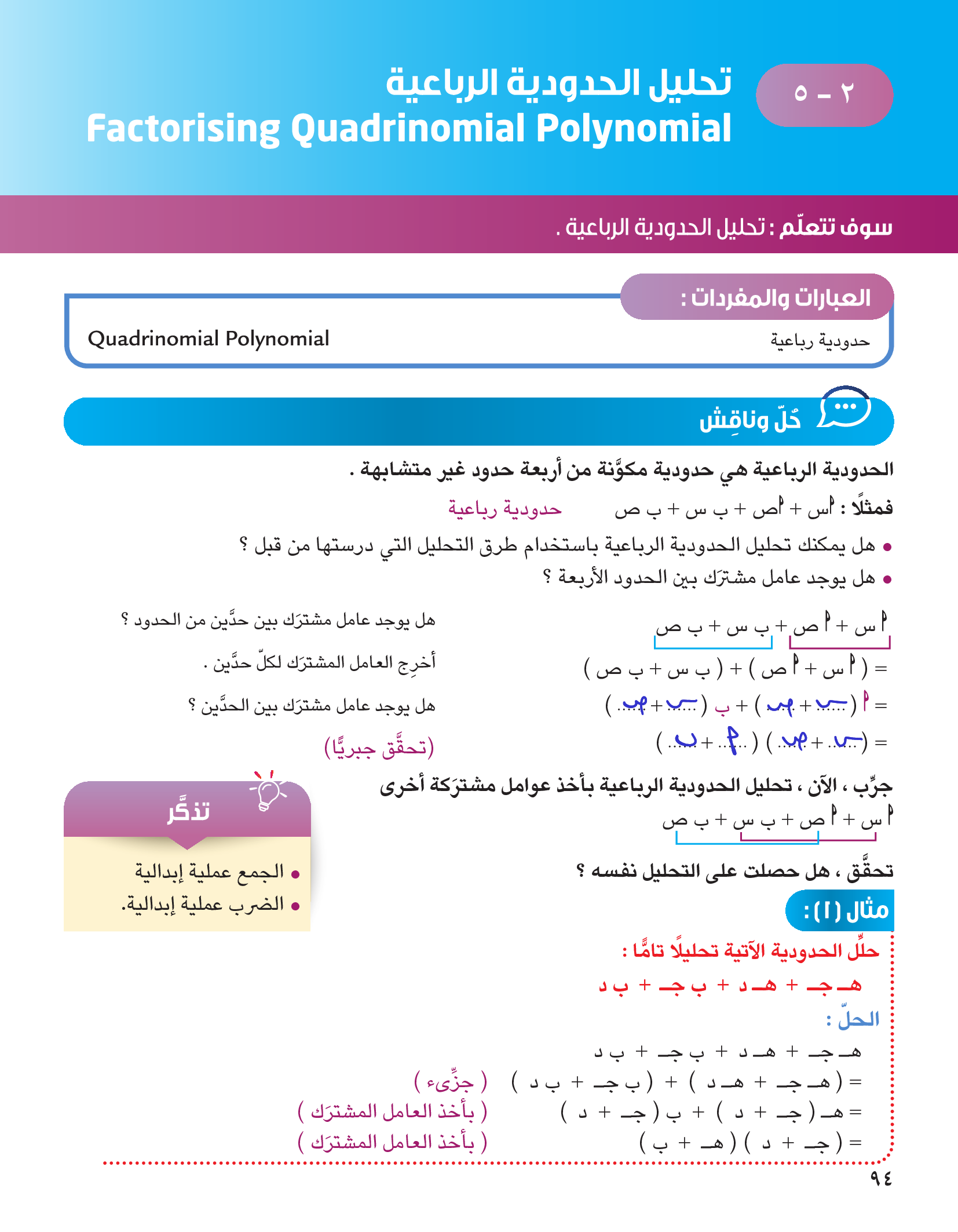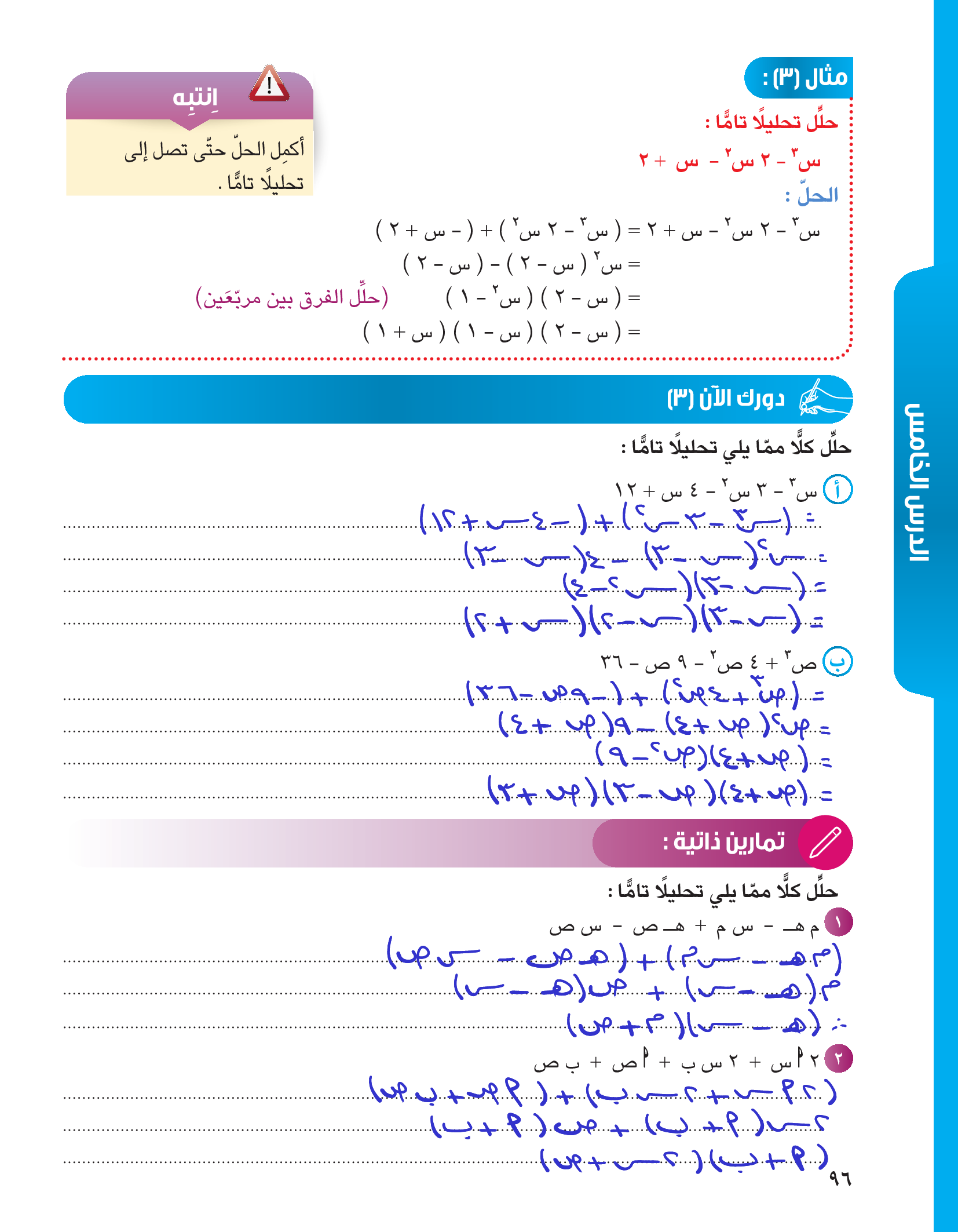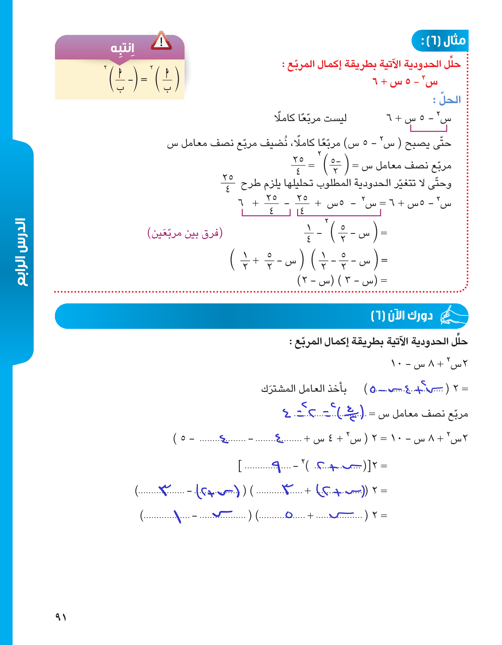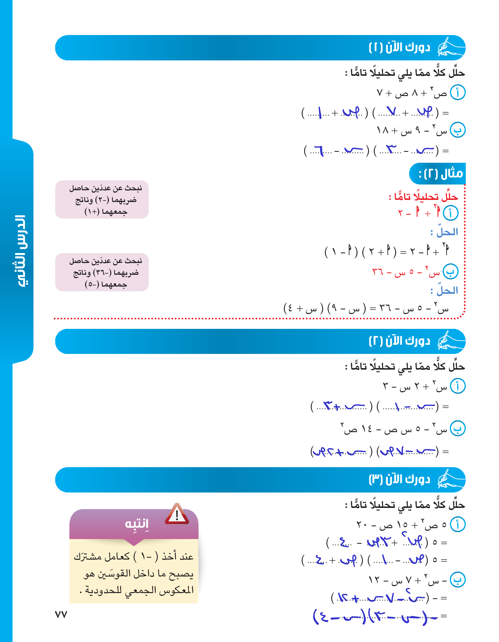 تحليل الحدودية الثلاثية: س2 + ب س + جـ